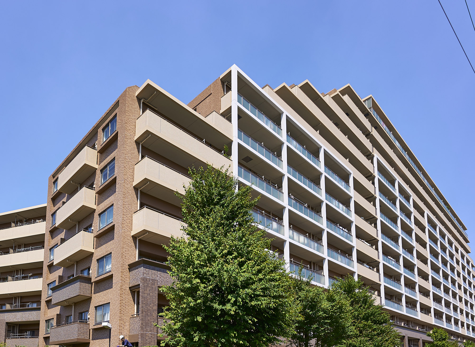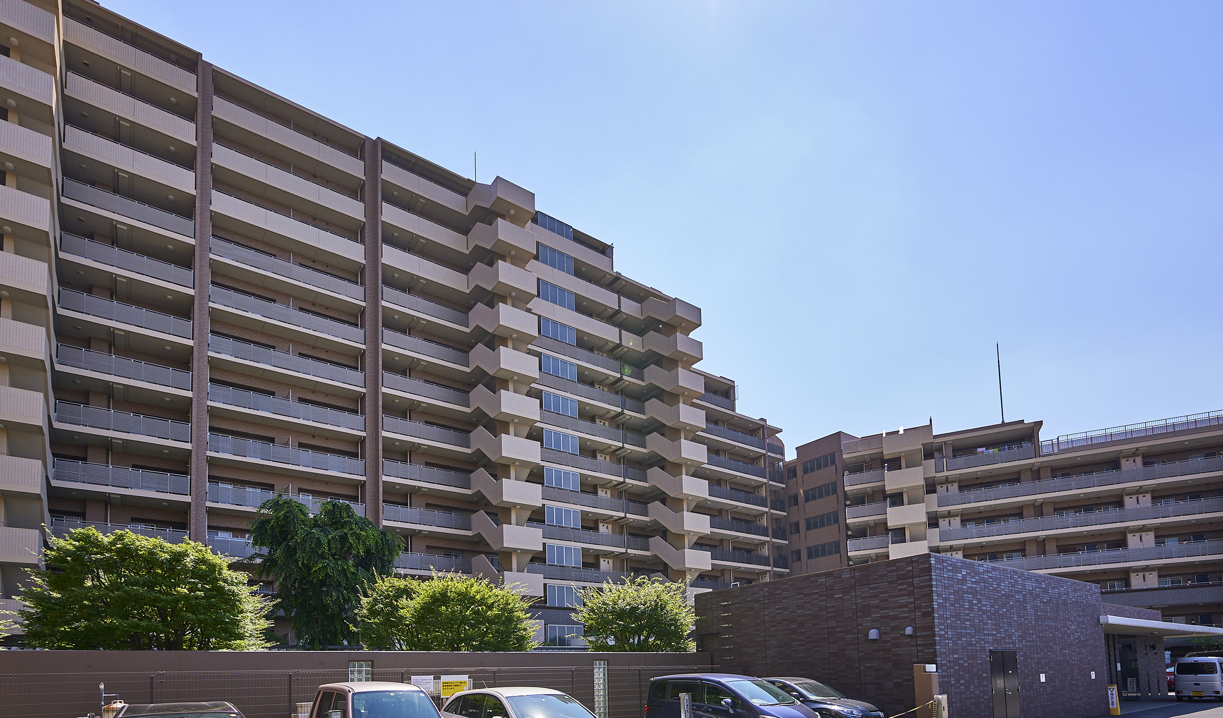 デザイン 凛とした存在感。 時を重ねた緑濃い街並みに調和するモダンなファサード。基壇部はレンガ調の重厚な意匠を施し、中層部から上層部はシックでクリスタルな雰囲気を漂わせるデザインを採用。さらに縦のストレートなラインが鮮やかなアクセントを添えています。