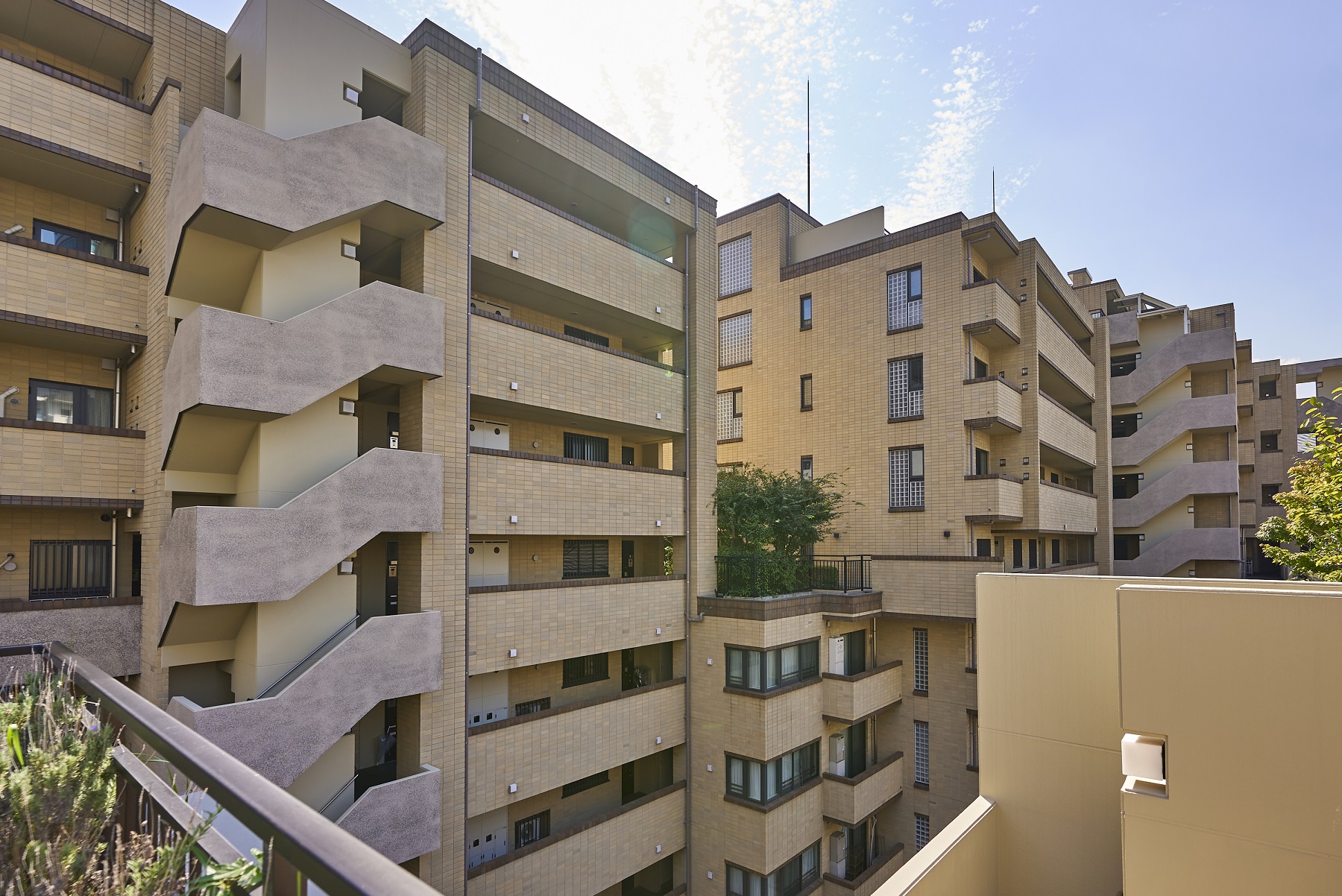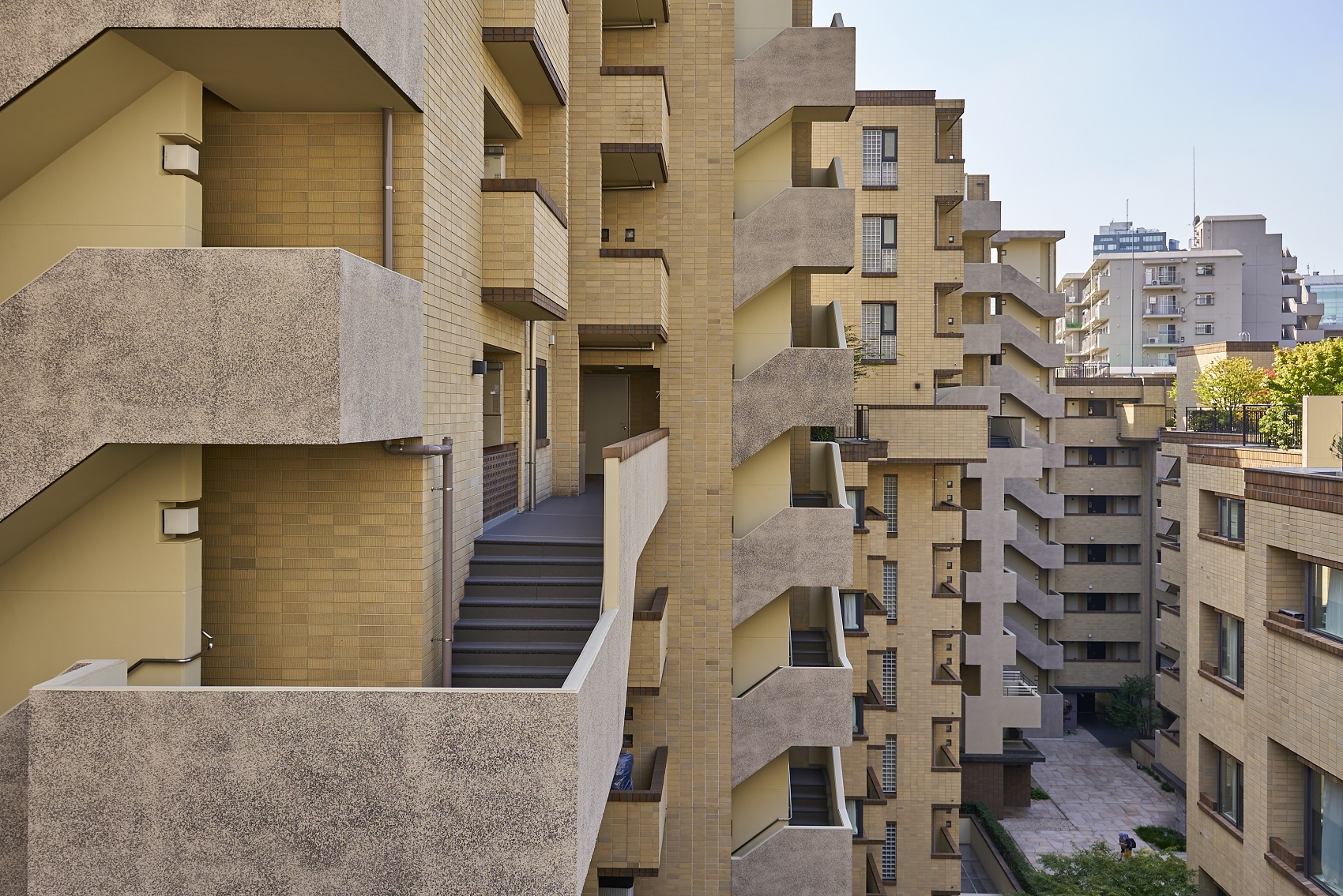 敷地を囲むように配置した6棟の建物は、全体を水平方向に雁行させ、縦方向にも変化をつけて、圧迫感を抑えるとともに奥行きのある表情を演出し、住戸の独立性も高めています。「同潤会」の歴史を受け継ぐにふさわしい重厚感と、採光・通風豊かな開放感とを両立した建物設計です。外観は、手づくり感のあるマテリアル、自然な風合いを大切にしたディテールを組み合わせ、同潤会の歴史と文化を継承するにふさわしいやすらぎあるデザインを追求。背景にある長い歴史、豊かな物語、人の文化を命として、「アトラス江戸川アパートメント」にしかできない形を実現しています。