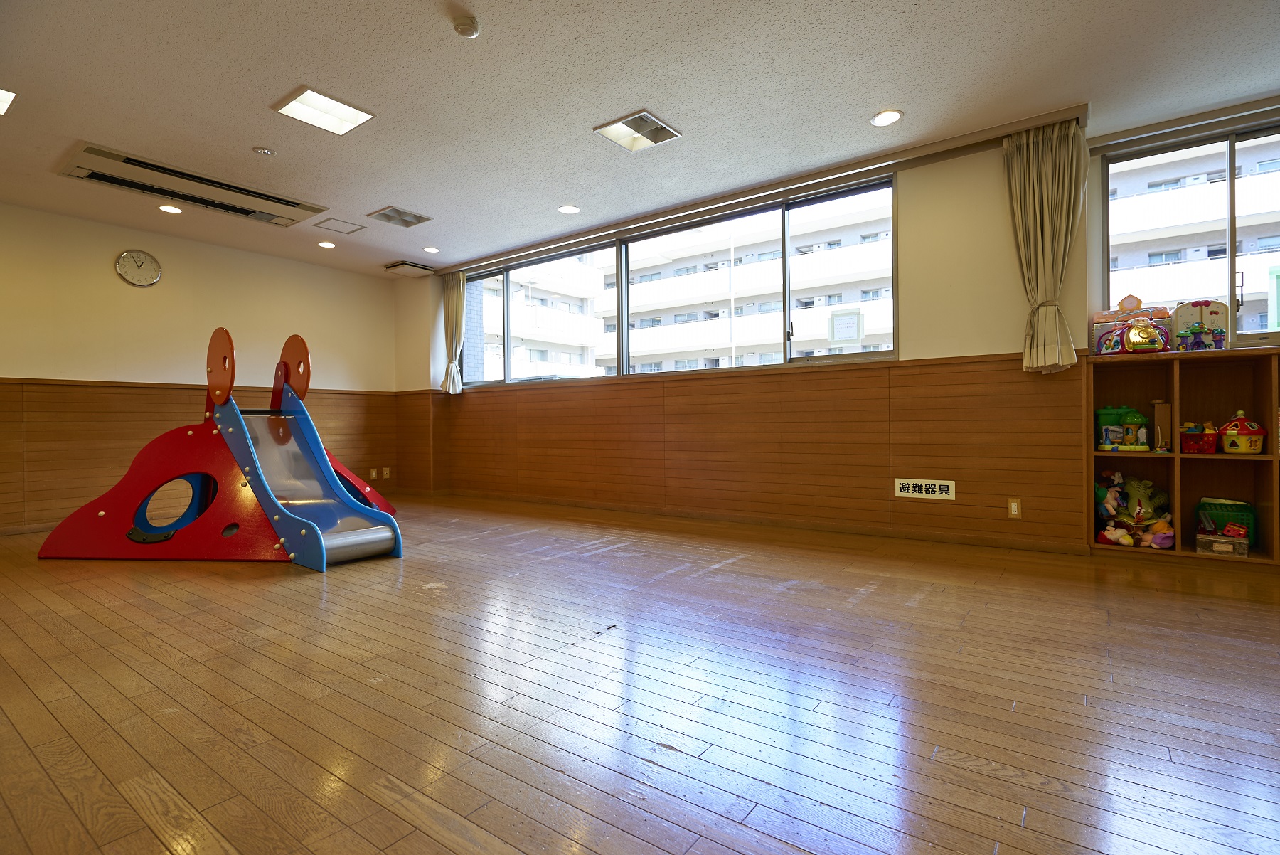 街の中央部にある「クレストハウス」は、壱番街と弐番街兼用のコミュニティスペースです。落ち着きのある3階建で、2階には子供が自由に遊べるキッズルーム「わいわいクレスト」(約49㎡)、3階にはサークル活動やパーティーに利用できる3室の集会室(洋室36㎡、和室10畳1室)が設けられています。また、各街区のエントランスホール横にはロビースペースも用意されており、大切なお客様との歓談や居住者同士の交流など、目的に合わせて活用できます。