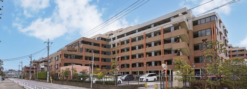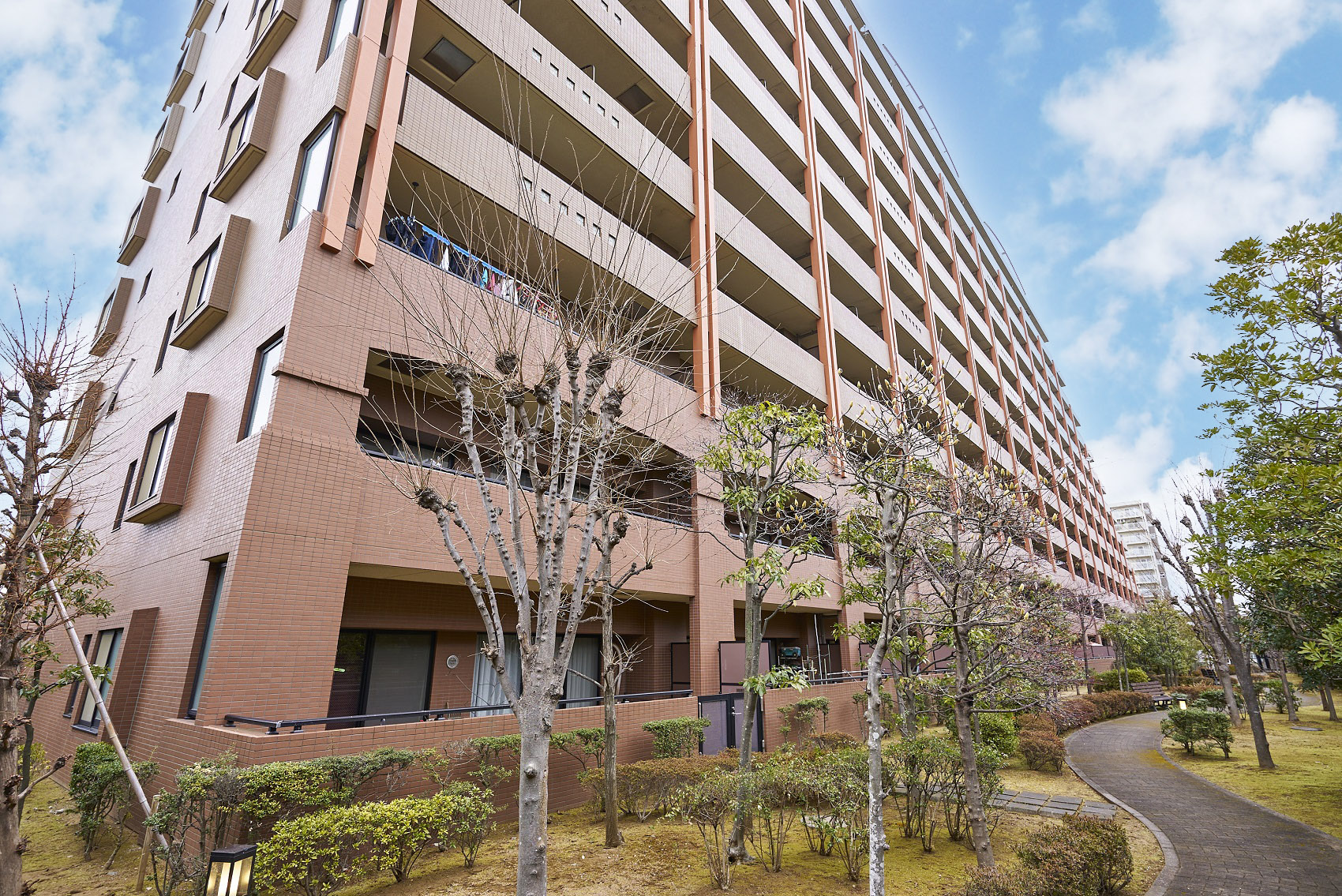 デザイン 存在感のある佇まい。 3棟で構成された堂々としたフォルム。外壁はアースカラーのタイルを、低層から高層へ向かって濃色から淡色へと変化させ、どっしりとした安定感と空へ伸びる軽やかさを演出しています。オレンジ色のマリオンをアクセントとした存在感のある佇まいです。
