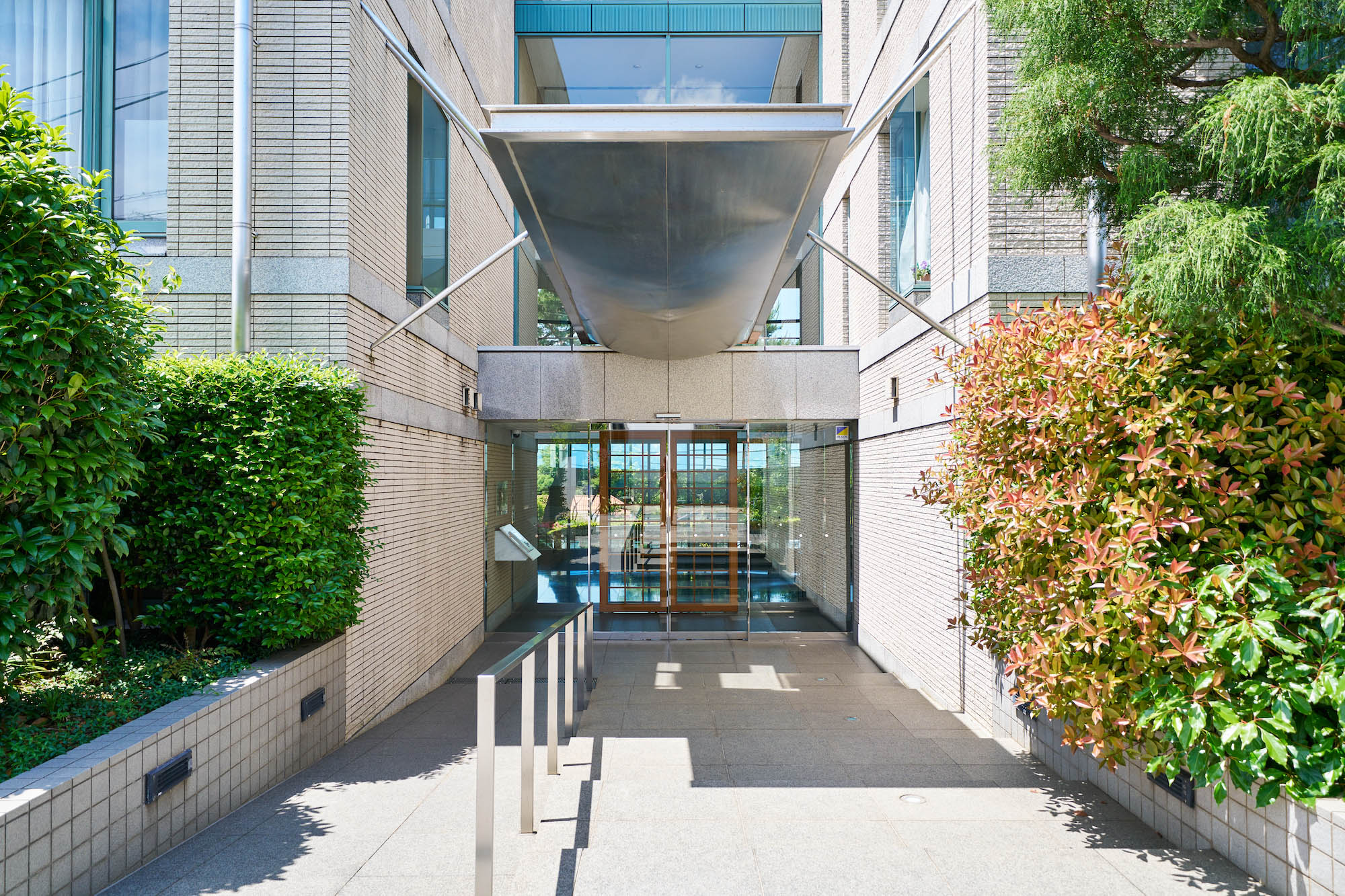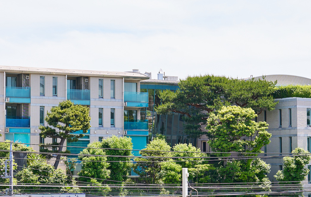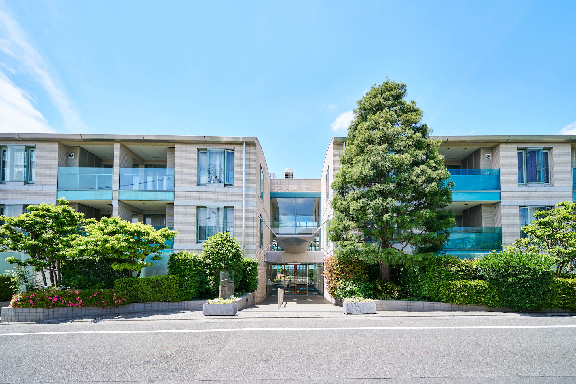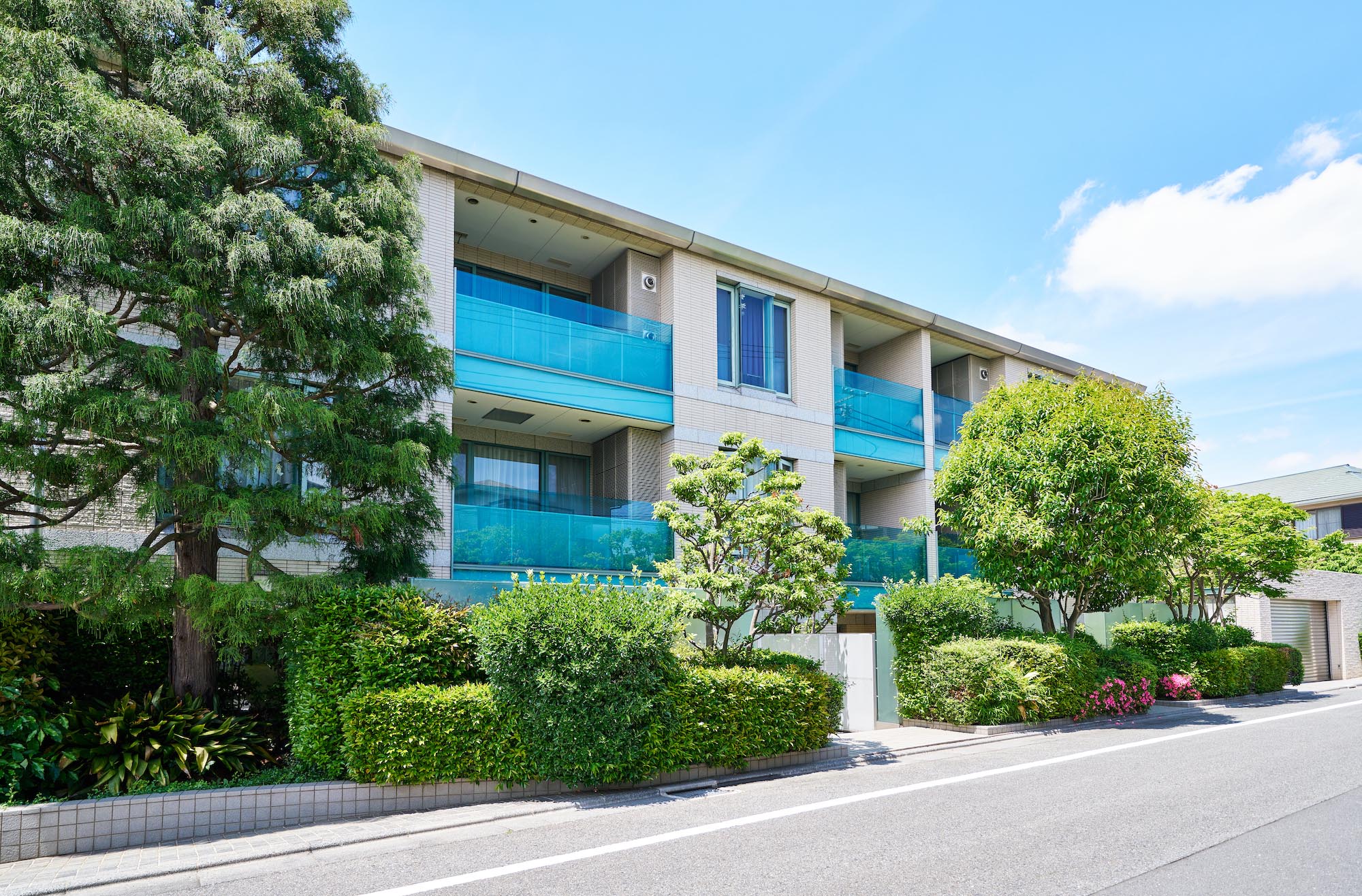 長い歴史に培われたわが国屈指の高級邸宅地、田園調布。風致地区ならではの馥郁と薫り立つ街並みにしっとりと調和するとともに、その街並みをよりいっそう気品あるものとする独自の風趣を醸し出すことを基本にしたファサードデザイン。高低差のある傾斜地という土地形状を活かして、メインエントランスのある東面道路からの容姿は3階建ての低層フォルムに。住環境に威圧感、違和感を決して与えることなく、むしろ田園調布らしさを際立たせる工夫がきめ細かく凝らされています。ホワイトベージュの磁器質タイルを貼りつめた外壁には、ひときわ重厚な輝きを見せる大理石のラインアクセントを、屋根には未来的な印象を与える柔らかい曲線を意匠。極長方形の窓はそのまま瀟洒なデザインアクセントになっています。