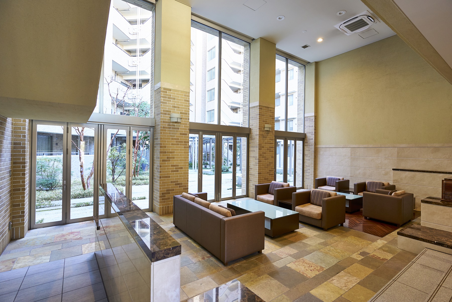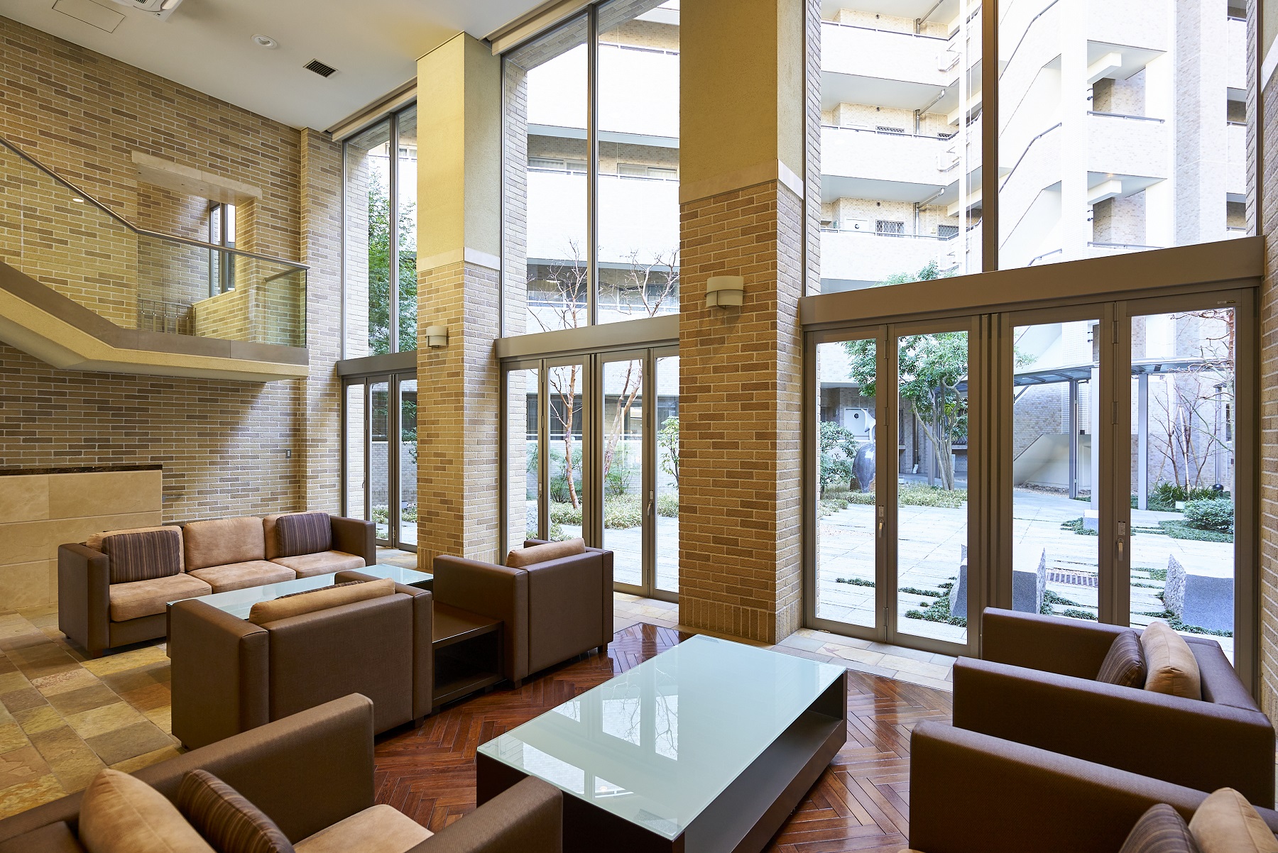 車寄せのあるエントランスから一歩足を踏み入れると、ひときわ伸びやかに広がるのが「エントランスラウンジ」。2層吹き抜けの壁面いっぱいをガラス張りにした、開放感あふれる空間です。この「エントランスラウンジ」のある共用棟「デクスターサロン」は、住棟から独立したクラブハウス的な役割を担っています。2階には、大切なお客様をお迎えする「ゲストルーム」、防音設備を備えた「アコースティックサロン」も併設。また、ガラス越しに、白御影が連なる「オーナーズコート」が美しい四季の移ろいを告げてくれます。芳醇な時を愉しむ、充実した共用スペースが用意されています。