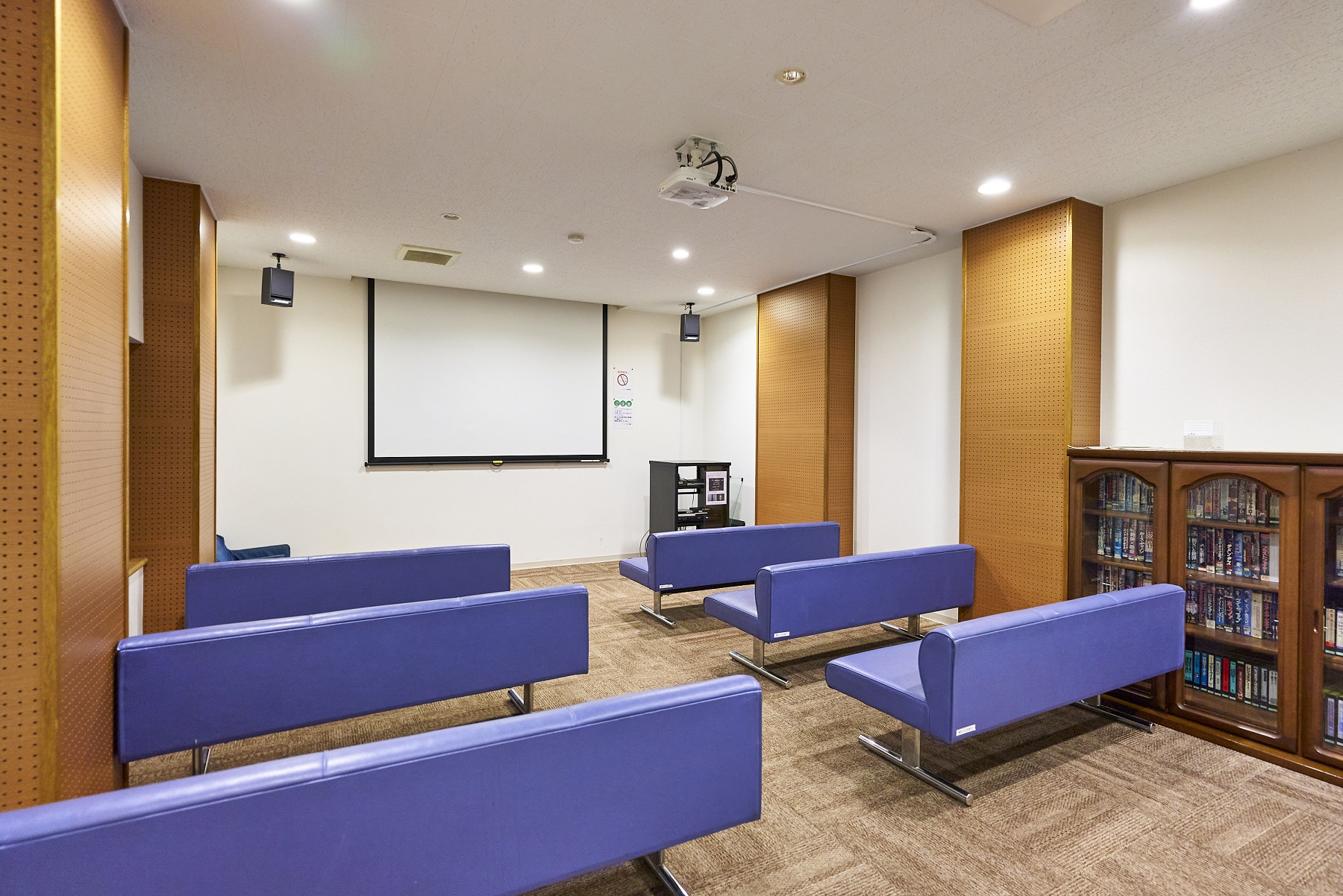 100インチのプロジェクターがあり、迫力ある大画面で映画などをゆっくり鑑賞できます。また小型楽器の演奏にも利用可能。映像に、音楽に、趣味を大きく拡げる、愉しみあふれる一室です。