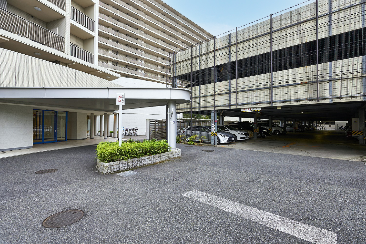 屋根付の車寄せが配されています。