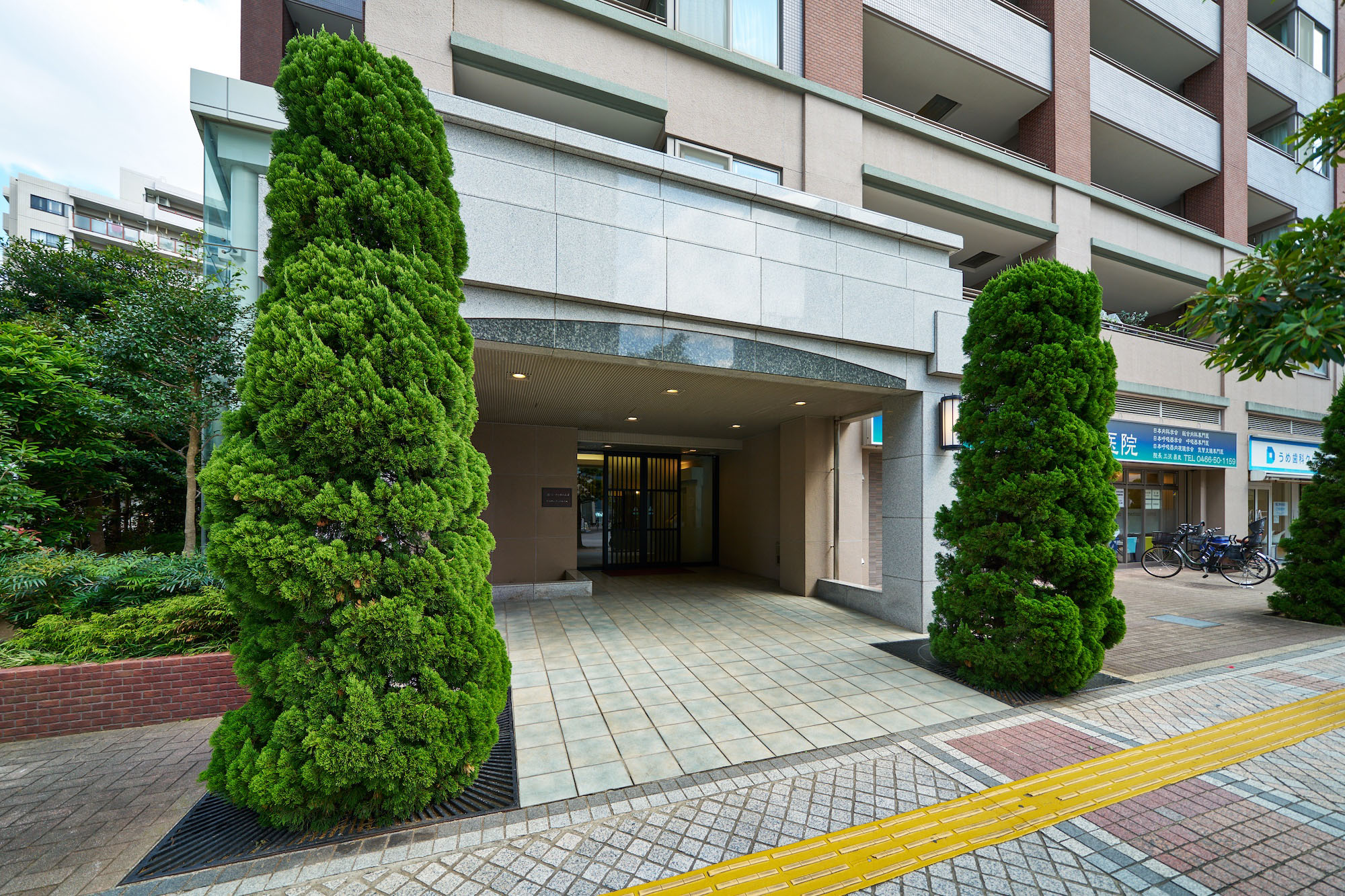 邸宅と呼ぶにふさわしい大型マンションであるために追求したのは、この街の歴史を映す、どこか懐かしささえ感じる建築美。石、タイル、ガラス、アイアンなど、多彩なテクスチャーを巧みに活かし、遠くから見たスタイルにも、間近に見たディテールにもこだわりが感じられます。意匠は上質感を醸し出す落ち着きに満ちたカラーで全体を統一し、空に向かってまっすぐに縦のラインが伸びる高層住棟ならではのデザインに。アクセントとして添えたグリーンは、洗練されたイメージをさりげなく伝えています。また、低層階には石の趣きを表現した素材を用いて重厚感を演出。空を見上げると、そこに広がるのは圧倒的にそびえ建つ誇らかな景観。古くから大切に残されてきたような、その凛としたフォルムは、近代的な建築物が並ぶこの街に引き立ち、街ゆく人々の目を惹きながら、おおらかに佇んでいます。