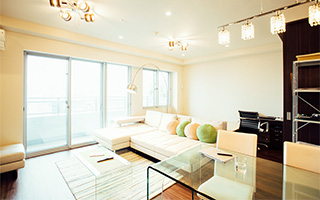 ご自宅にいる時間のほとんどを快適なリビングで過ごすというUさんご夫婦。リビングからの眺望が良いことも、住まい選びのポイントだった。現在の住まいは東京タワーを一望できる素敵なロケーション。当初の希望だった「レインボーブリッジが見える部屋」とは景色こそ異なるものの、バルコニー越しに見える美しい夜景に大満足されているご様子だ。