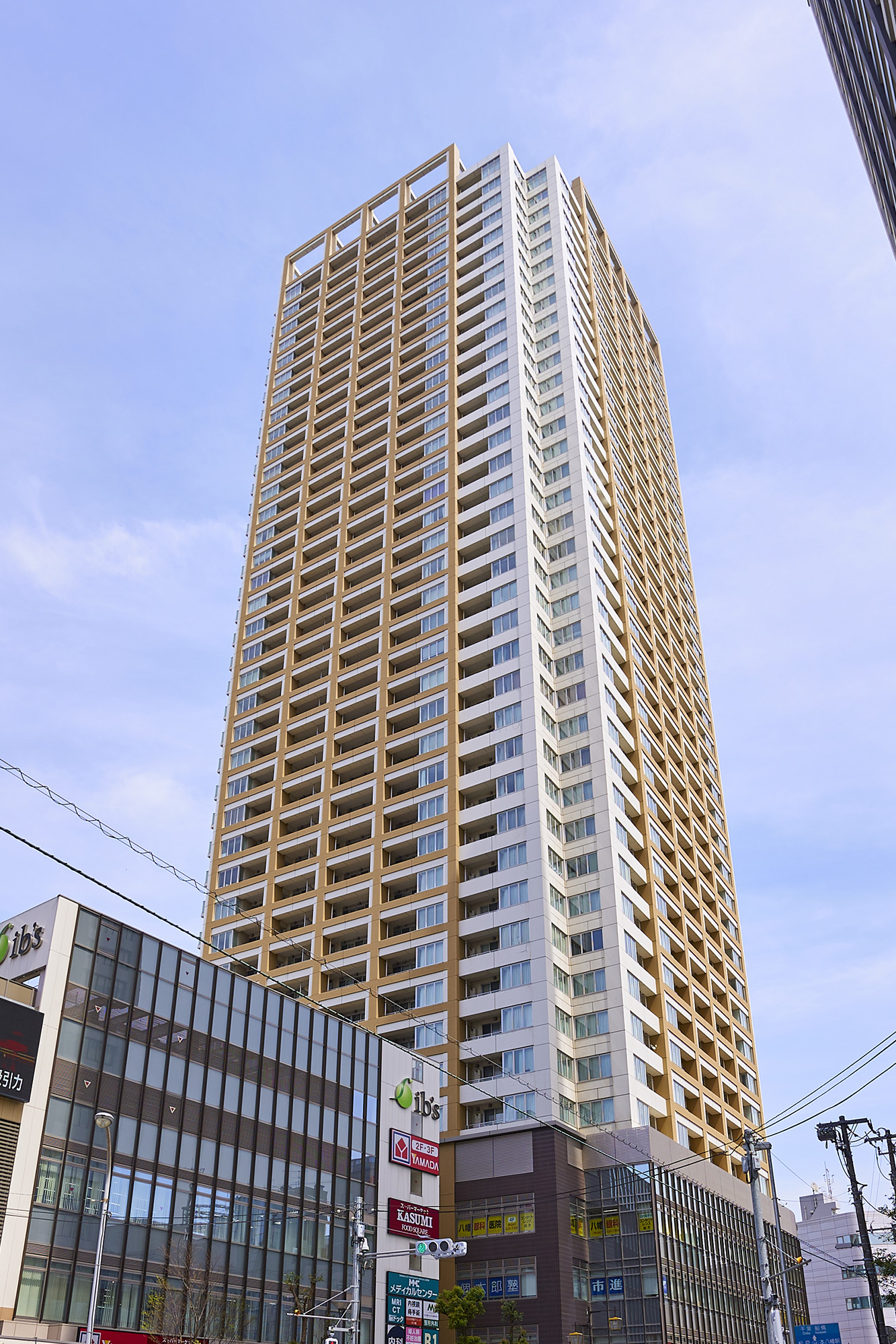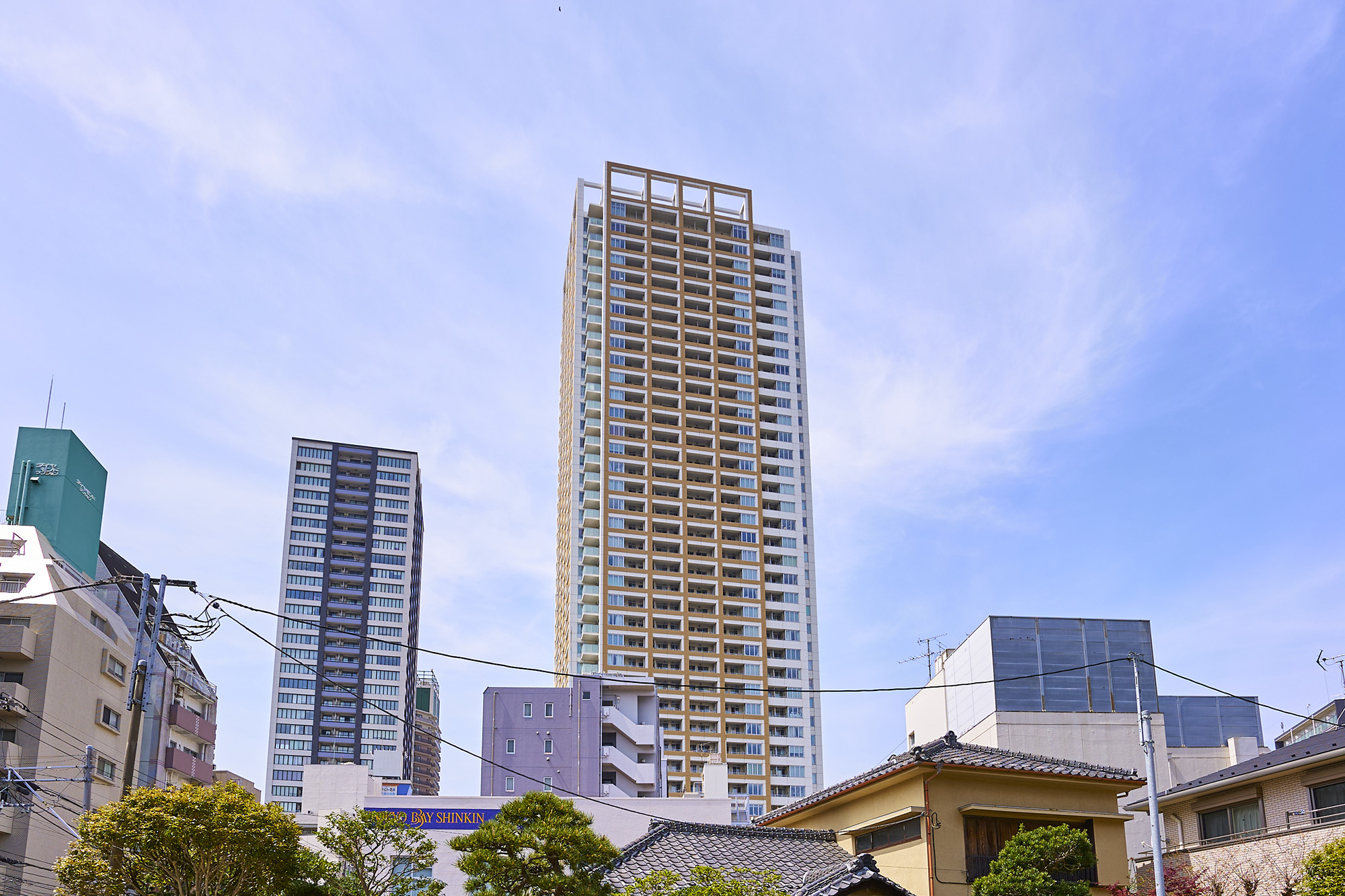 市川市のシンボルとなる、40階建て全465邸の超高層タワー「グランドターミナルタワー本八幡」。その外観は、超高層タワーでありながら軽やかでエレガント。アースカラーと白を重ねたフレームで、外観デザインに奥行と動きを加えています。コーナーに配置したガラスのバルコニーの軽やかさと共に、超高層でありながら圧迫感を軽減したスマートな佇まいは、他のタワーにはない個性と暮らしを感じさせます。