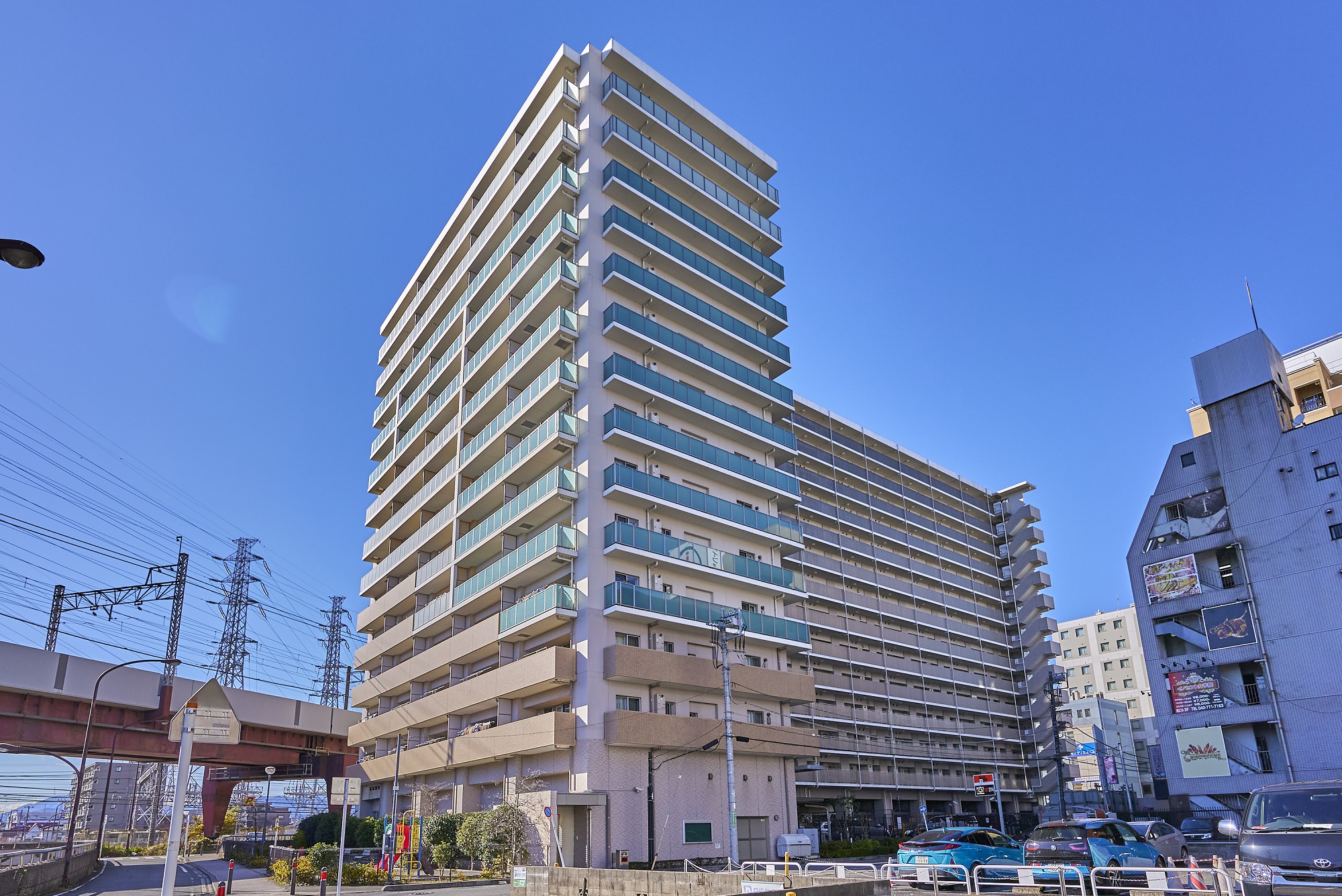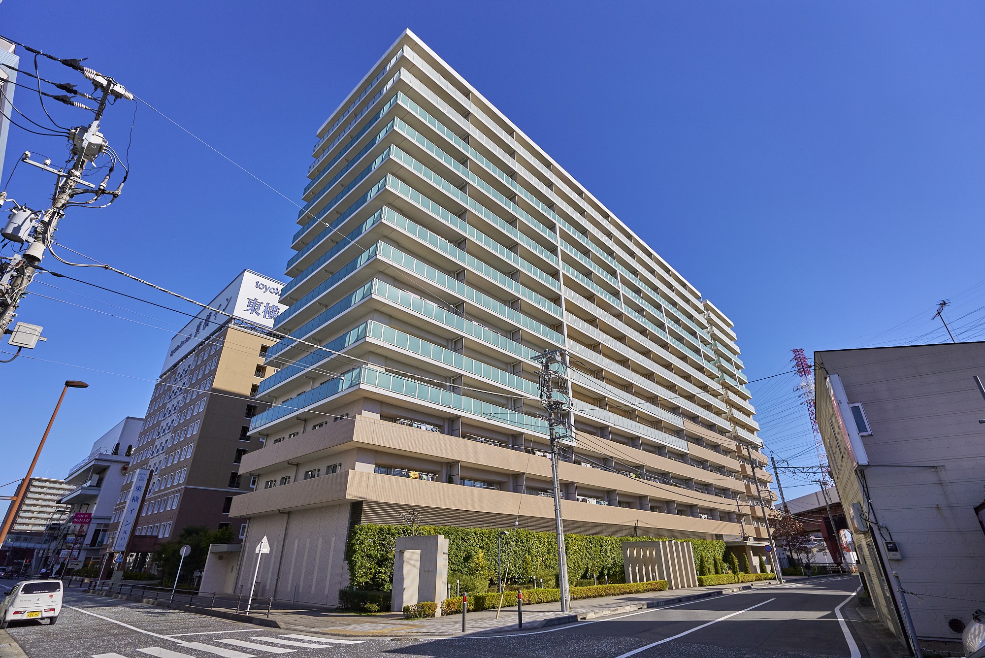 「橋本レジデンス」の外観は、地元に由来する「旭」から発想した「日の出」のイメージをコンセプトとし、外壁のタイルや吹付タイル、バルコニーのガラスパネル等で、山の背に昇る太陽と空、雲などをモチーフにデザインされています。植栽の緑にも美しく映え、街並みに調和しながら確かな存在感を主張する、街のランドマーク。美しい外観は、時の流れとともに住まう方のステイタスや愛着へとつながることでしょう。