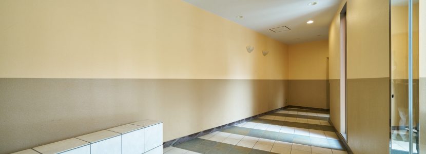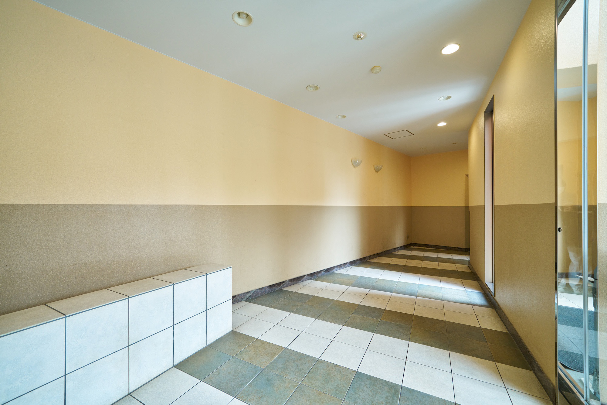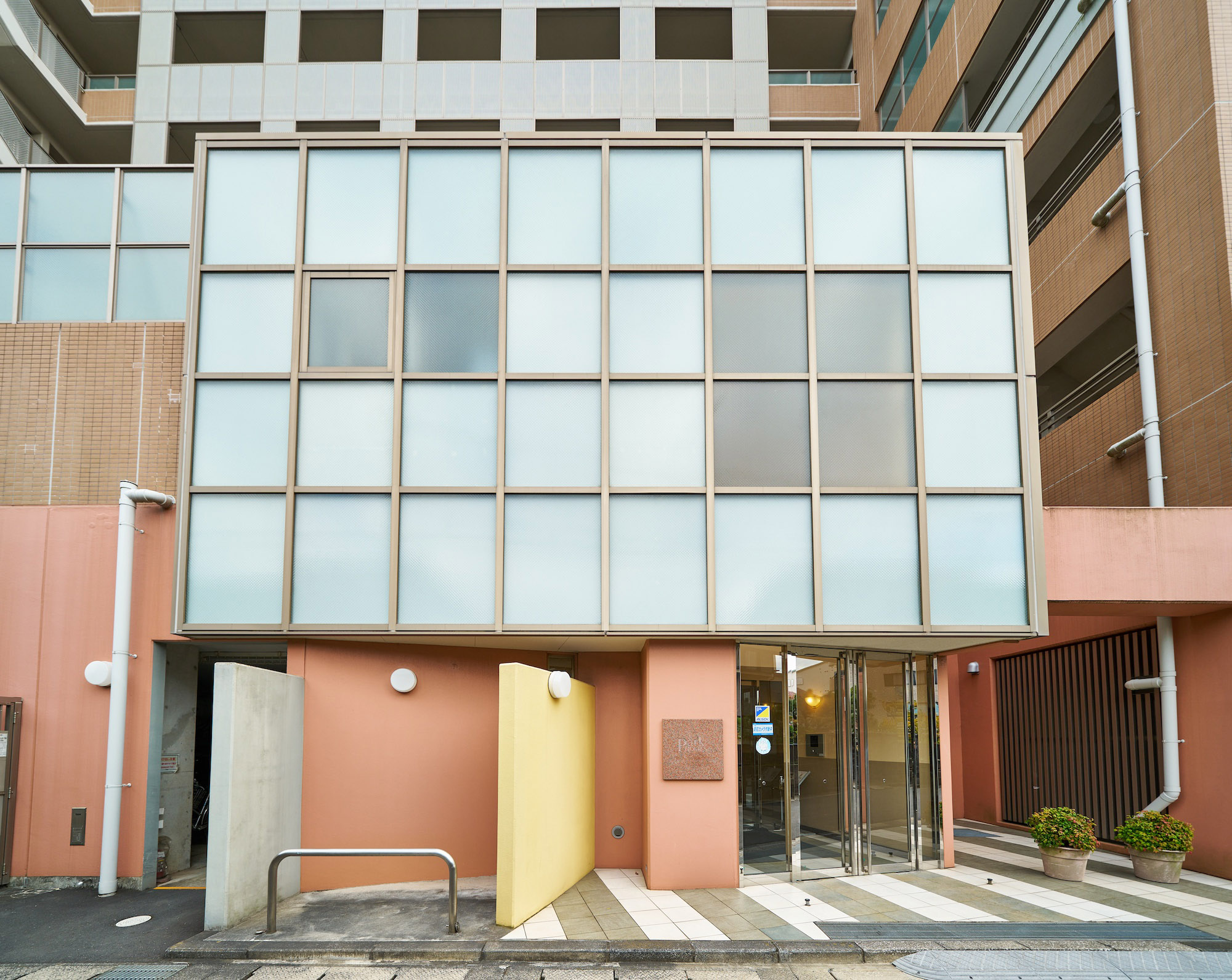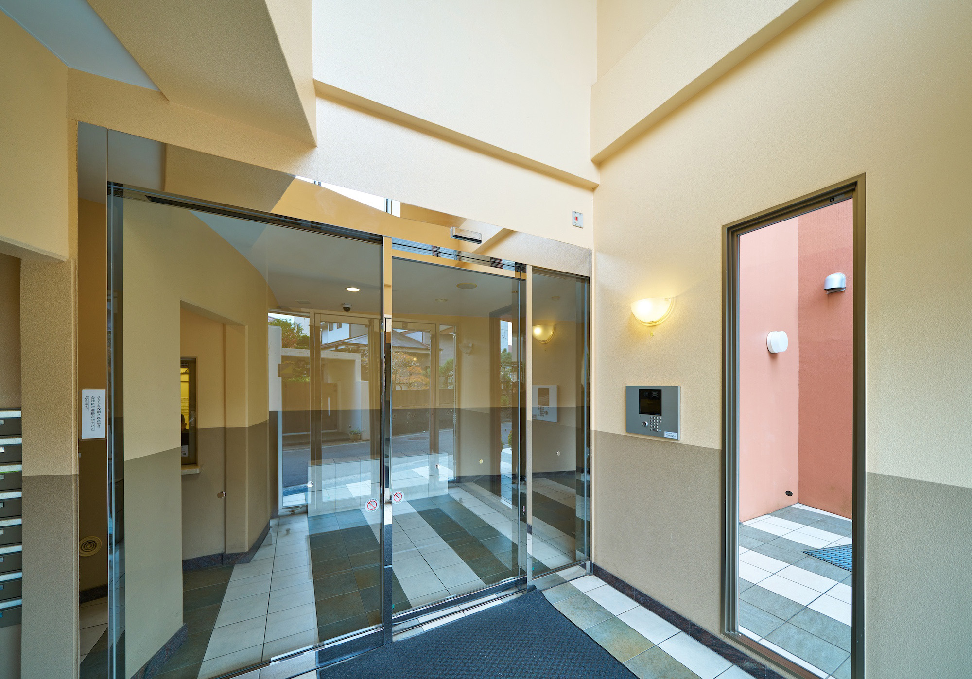 住む人をくつろぎのステージへと誘うエントランス。その導入部はRの壁が施され、視線を受け止めるアイストップの役割とエントランスとしてのサインの働きを担っています。床材や植栽を斜め方向に配することでパースペクティブ効果を強調し、視覚的な奥行き、ひろがり感を増幅。さまざまな仕上げ素材の採用やバリエーションに富んだ造形でバランスよく構成することにより、単調な印象を与えることがないように意識したデザインとなっています。