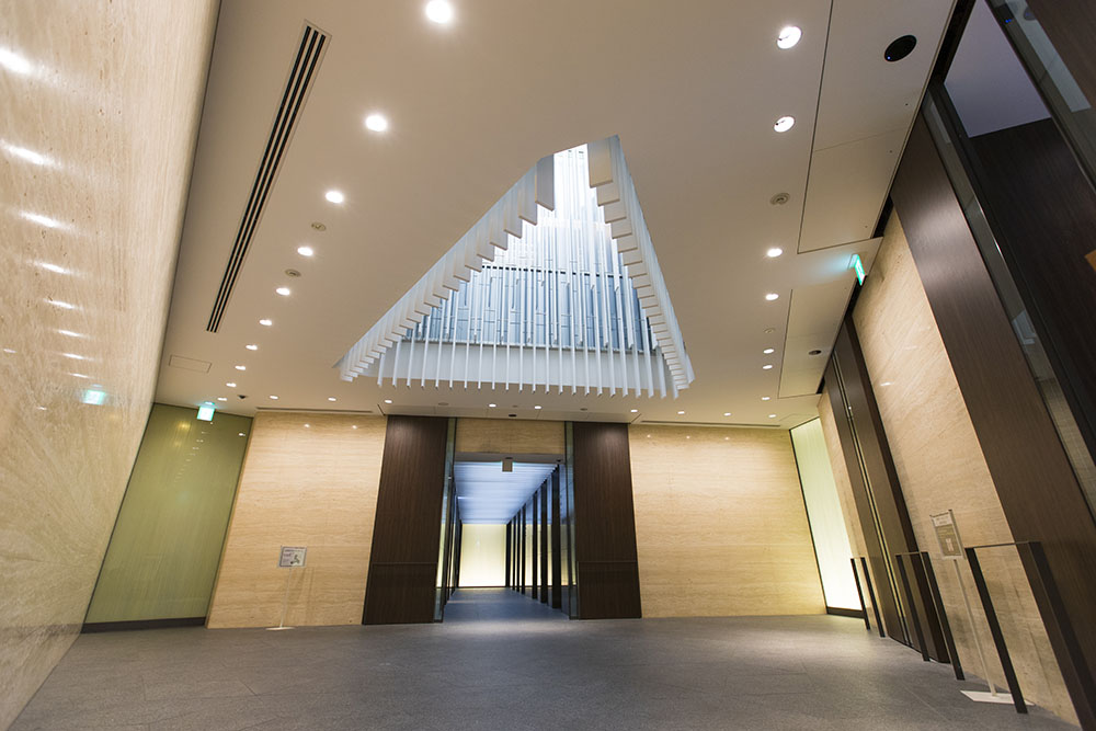 タワーの中心を貫くライトチューブの光あふれる、「ホワイエ」。
