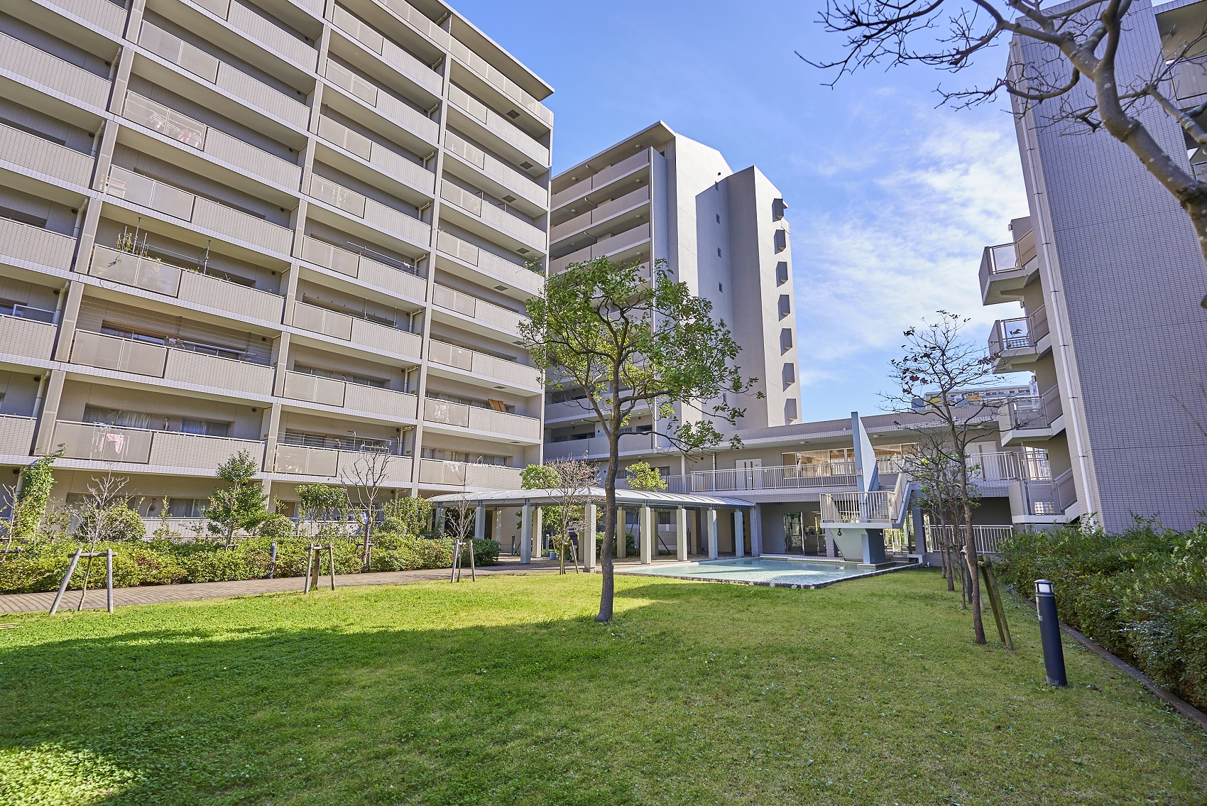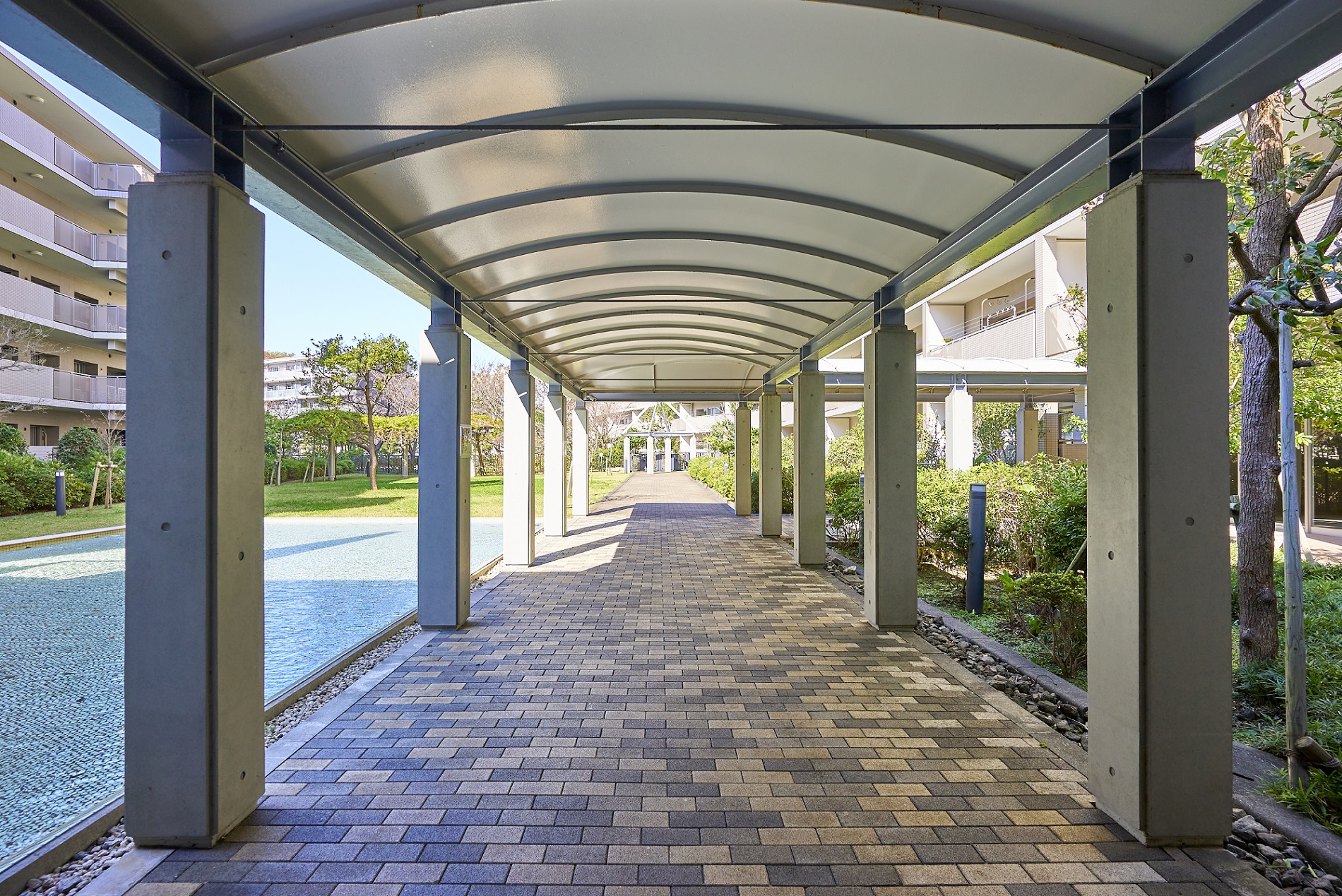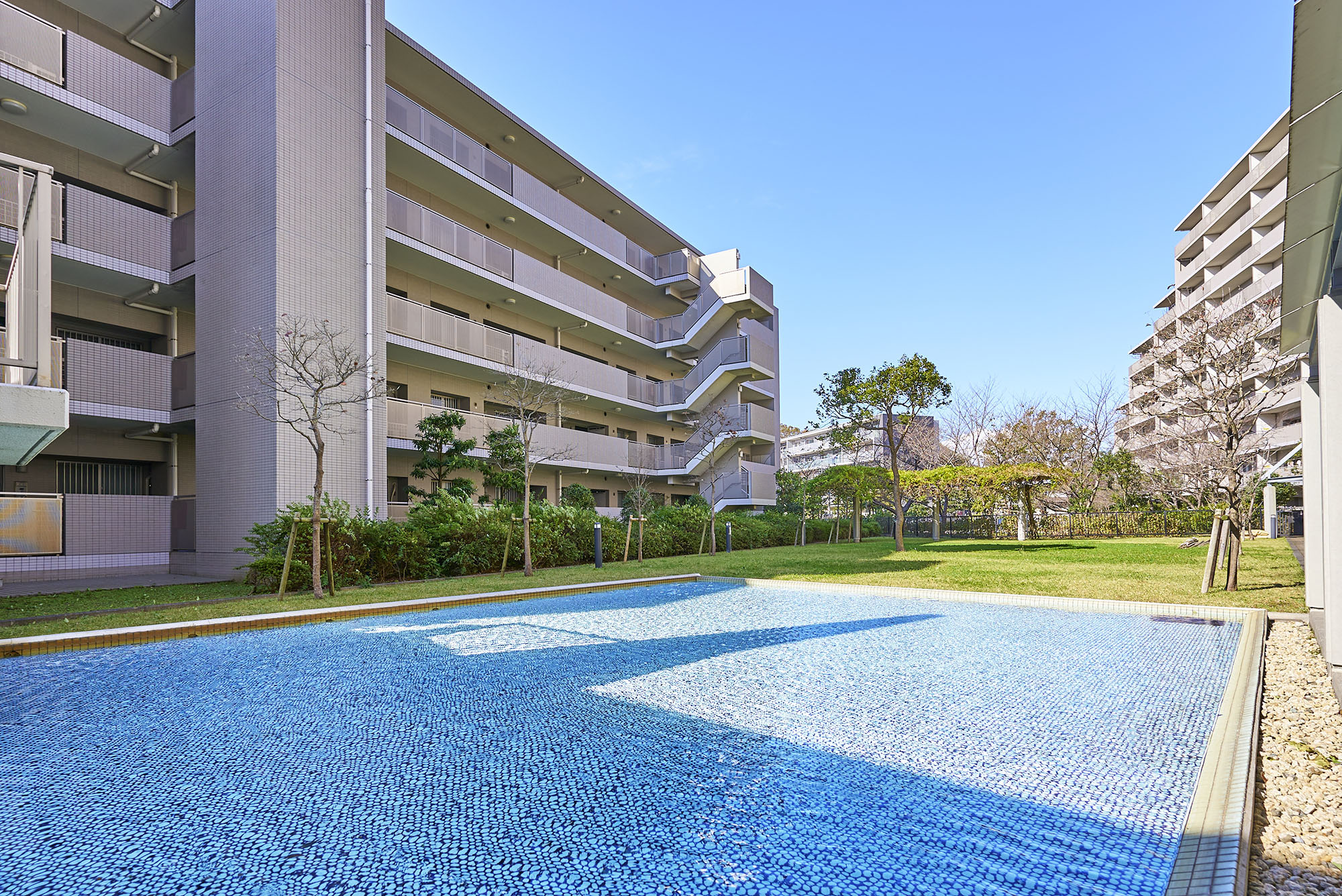 メインエントランスに入ると、正面のビューウィンドウ越しにガーデンコートとクリスタル(水辺)の美しい景色が広がります。アクアガーデンの1階には「ガーデンラウンジ」があり、ドーム型屋根のコリドールや芝生の広場が創り出す詩情豊かな景観を眺めることができます。メインエントランスの2階には、チャイルドルーム(兼集会室)や多目的和室といったコミュニティ施設を完備。チャイルドルームは約73㎡というゆったりとした大空間で、各種サークル活動やイベント、子どもたちのための遊び場として便利に利用できます。