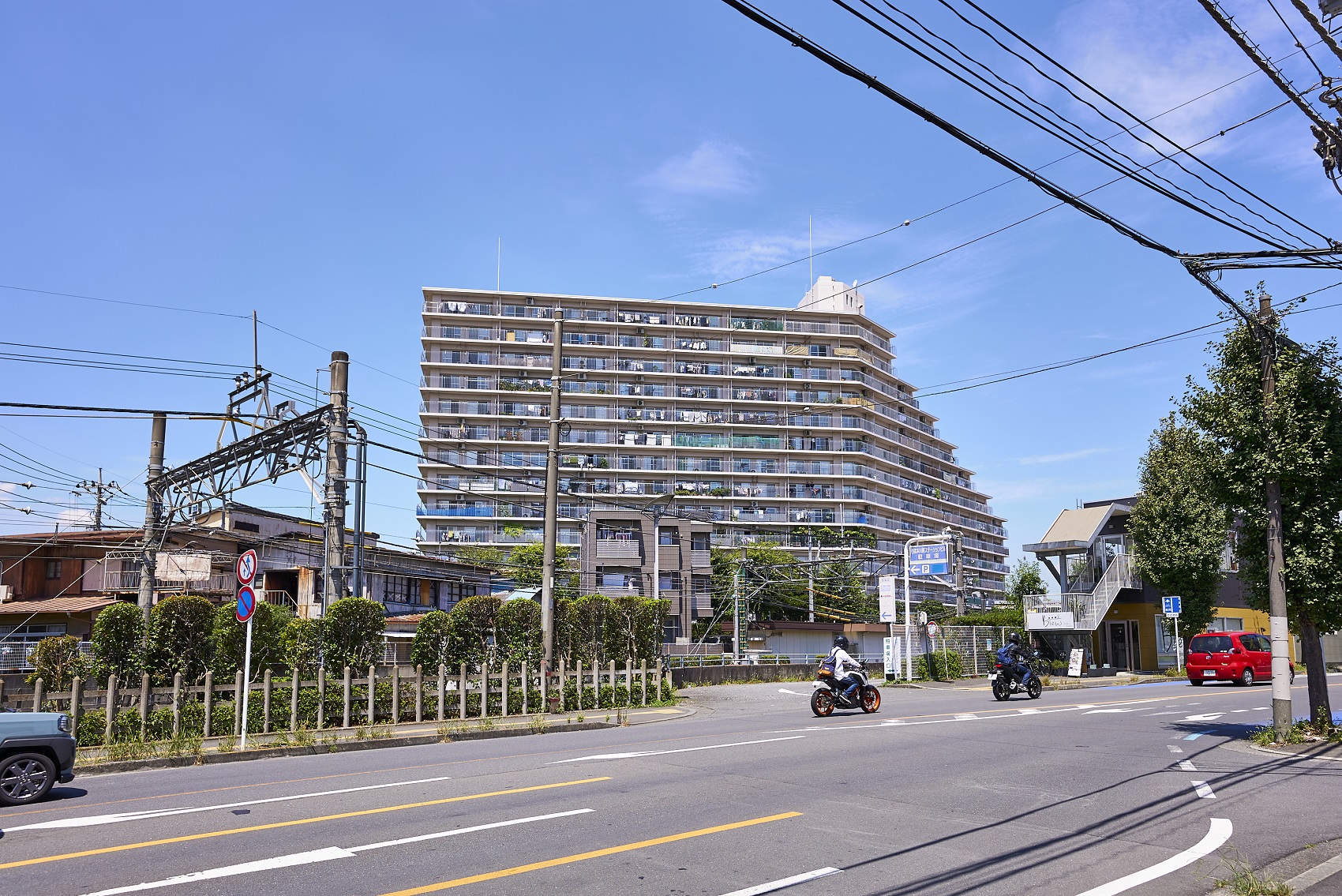 デザイン 明るく開放感溢れる住まい 周囲の建物との距離が保たれ遮るものがなく、全戸南向きの設計で豊富な陽光と爽やかな風を採り入れることができます。存在感のある規模ながらも圧迫感を感じさせない、ホワイトカラーでシンプルな外観です。情緒あふれる街並みの中で、明るく開放感に満ちた穏やかな暮らしが実現できます。