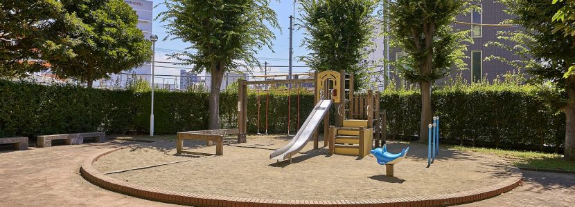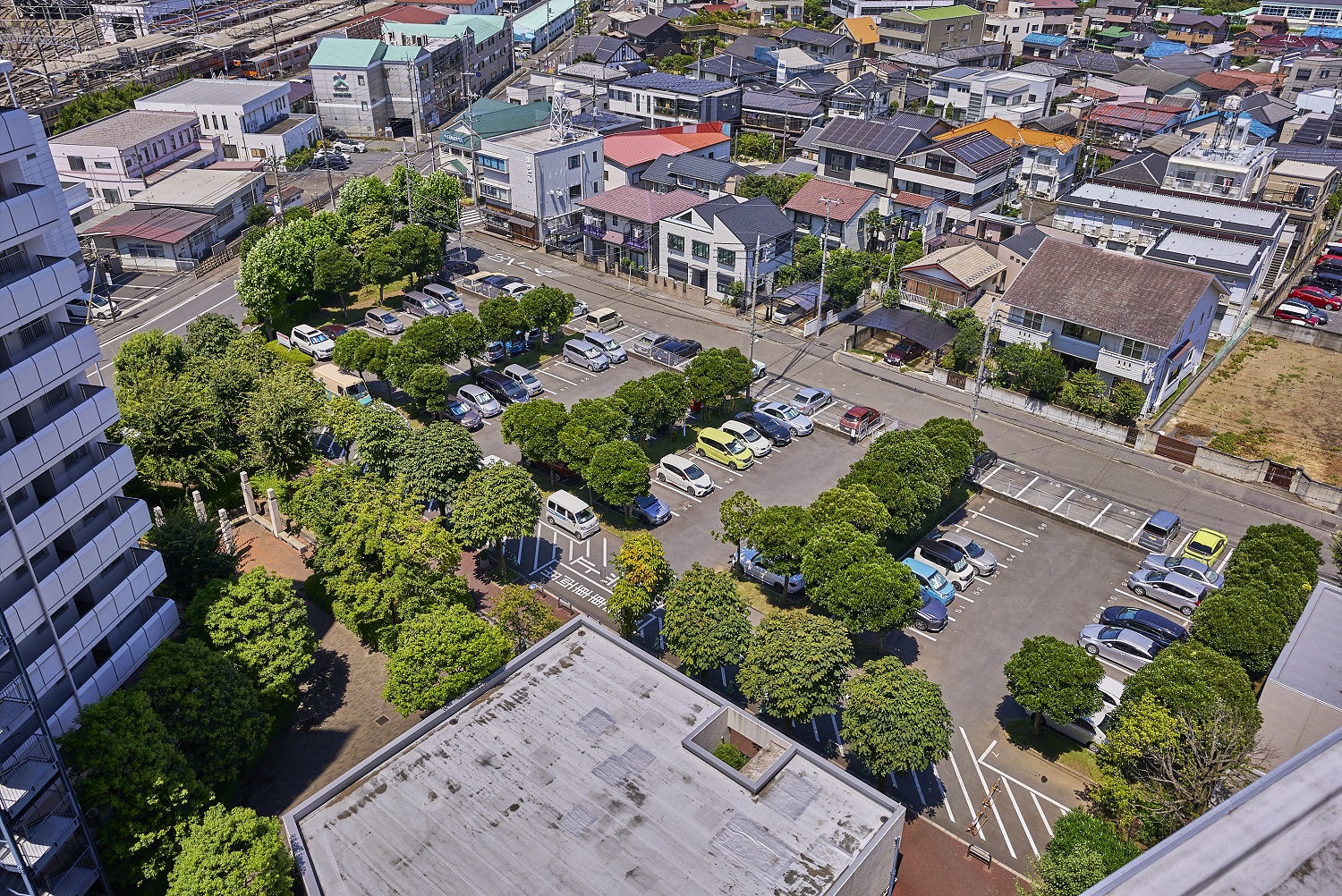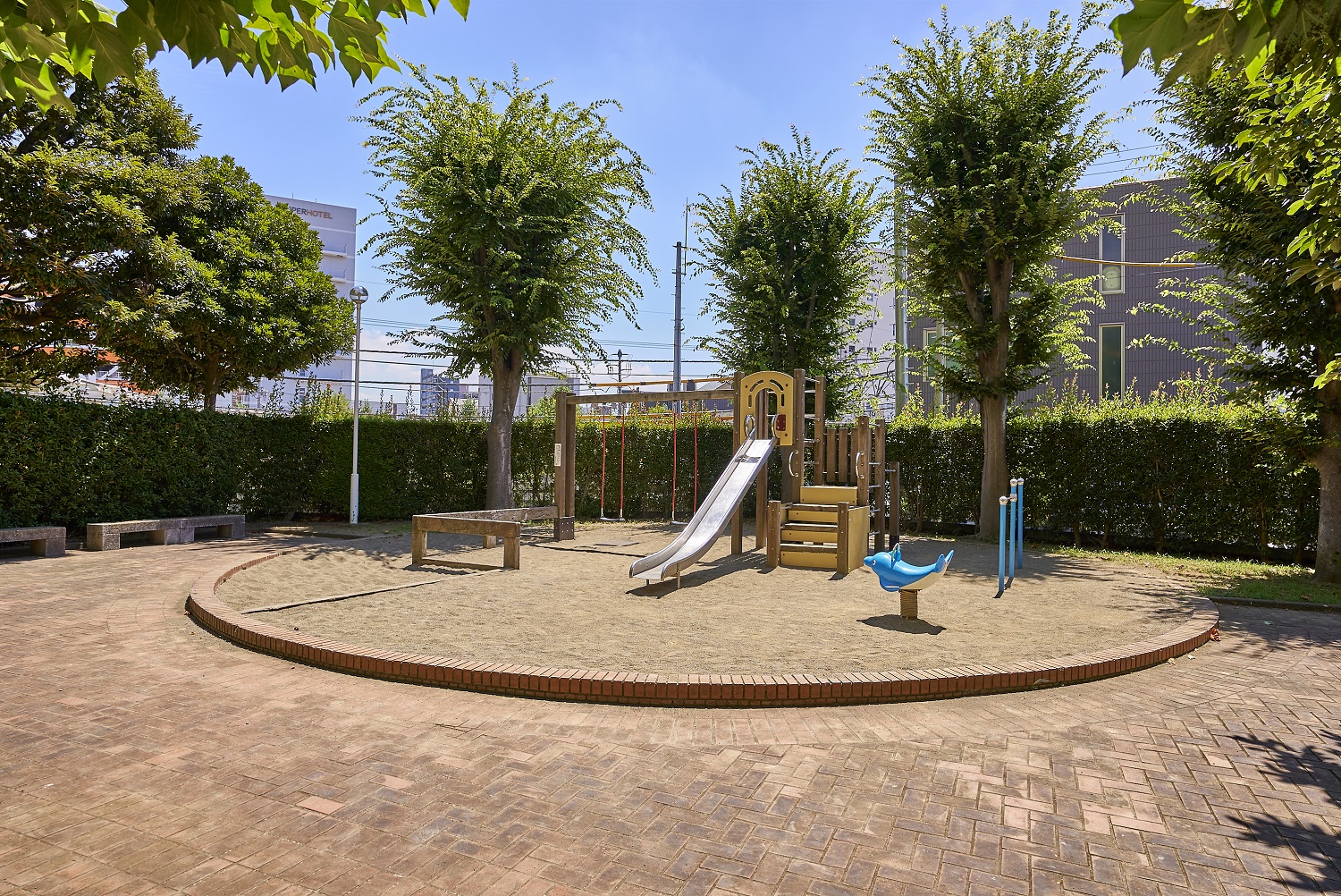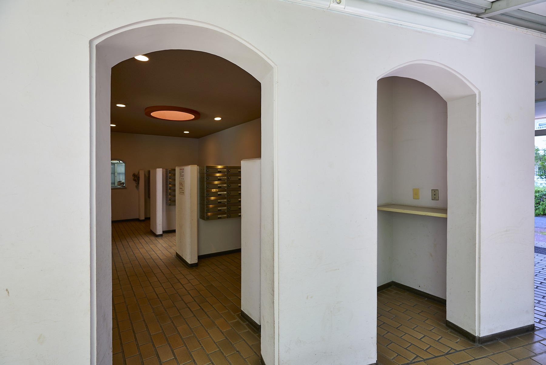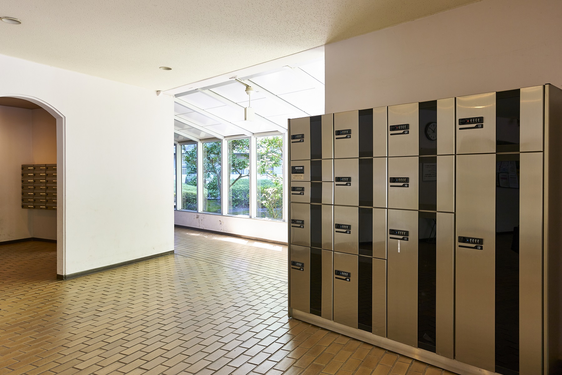 鉢植えの花々が温かく出迎えてくれるエントランスアプローチや、朝顔のカーテンや木々が爽やかな木陰を作るオープンスペース、子供たちを目の届くところで遊ばせられるプレイロットなど、広々とした敷地を活かして、豊かな植栽を配した共用スペースが設けられています。来客用の駐車場や駐輪場のスペースも広く、エントランスには宅配ボックスを完備。共用廊下や集会室なども丁寧に清掃・管理されています。