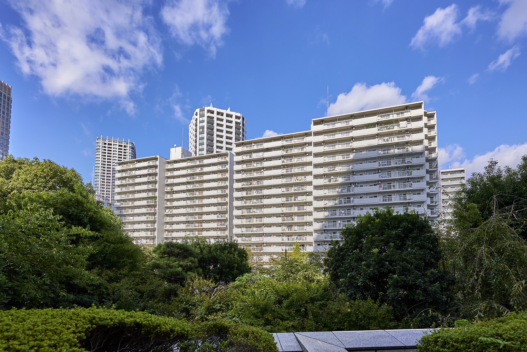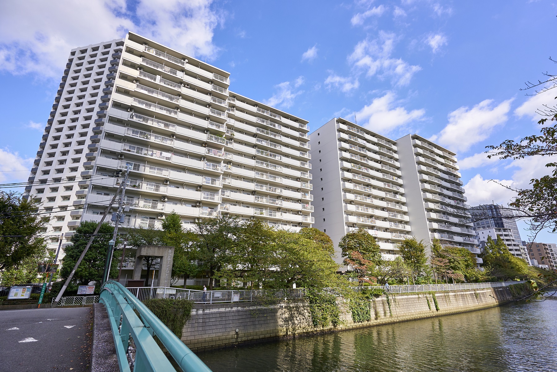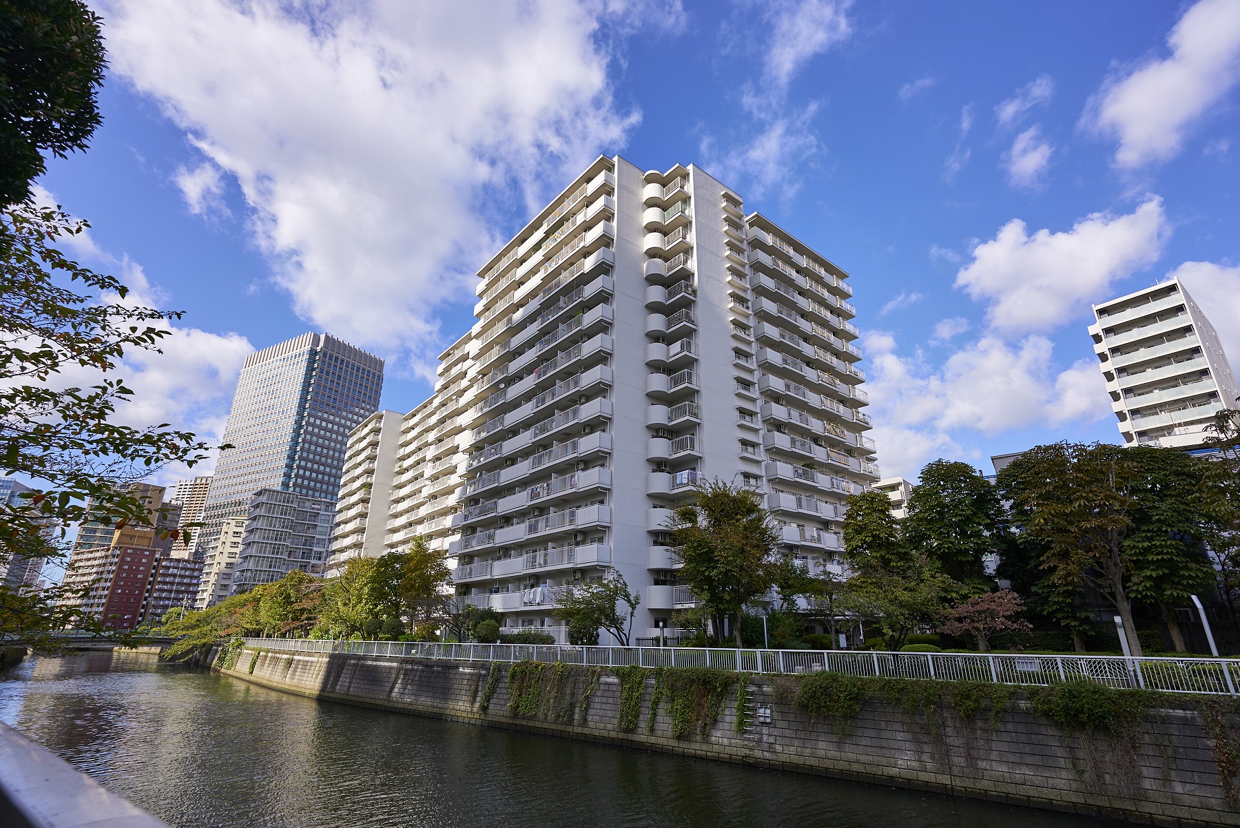 デザイン 目黒川に佇む爽やかな佇まい。 大崎駅からゲートシティ大崎を抜けると、目黒川沿いに堂々と佇むビッグコミュニティ。ホワイトの爽やかな外観と、川沿いに並ぶ鮮やかな樹々とのコントラストが美しく、存在感を放っています。