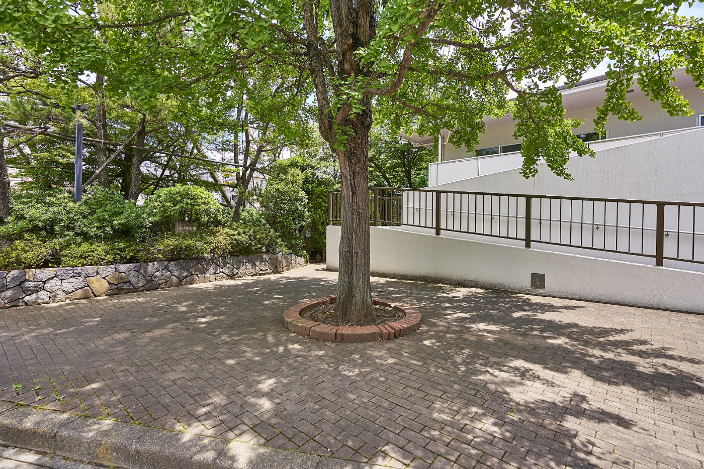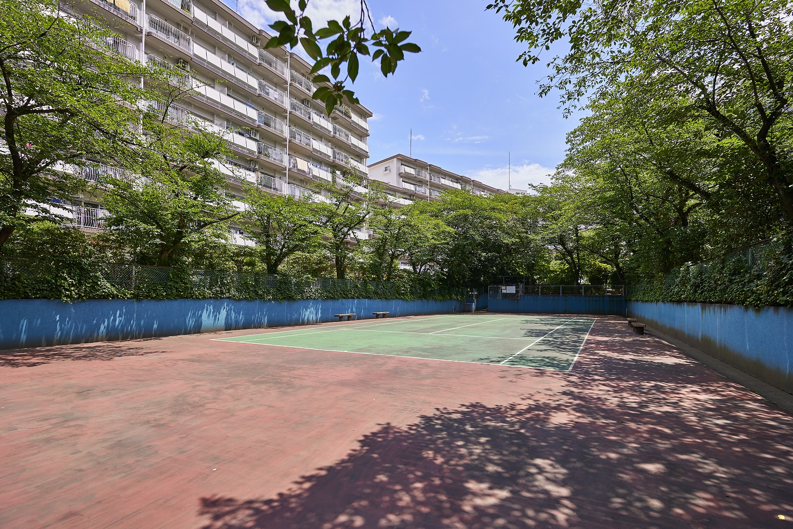 敷地内は自然にあふれ、高々とした木々が涼しげな木陰をつくり、低木の植え込みは建物の足元を包み込みます。春にはサクラ、秋にはモミジ、冬にはツバキなど、季節によって色とりどりの花々が咲き、一年を通して楽しる、魅力的な自然環境です。その自然の中に、テニスコートやプレイロット、各種広場が配され、住民の憩いの場となっています。マンション内のサークル活動なども盛んです。