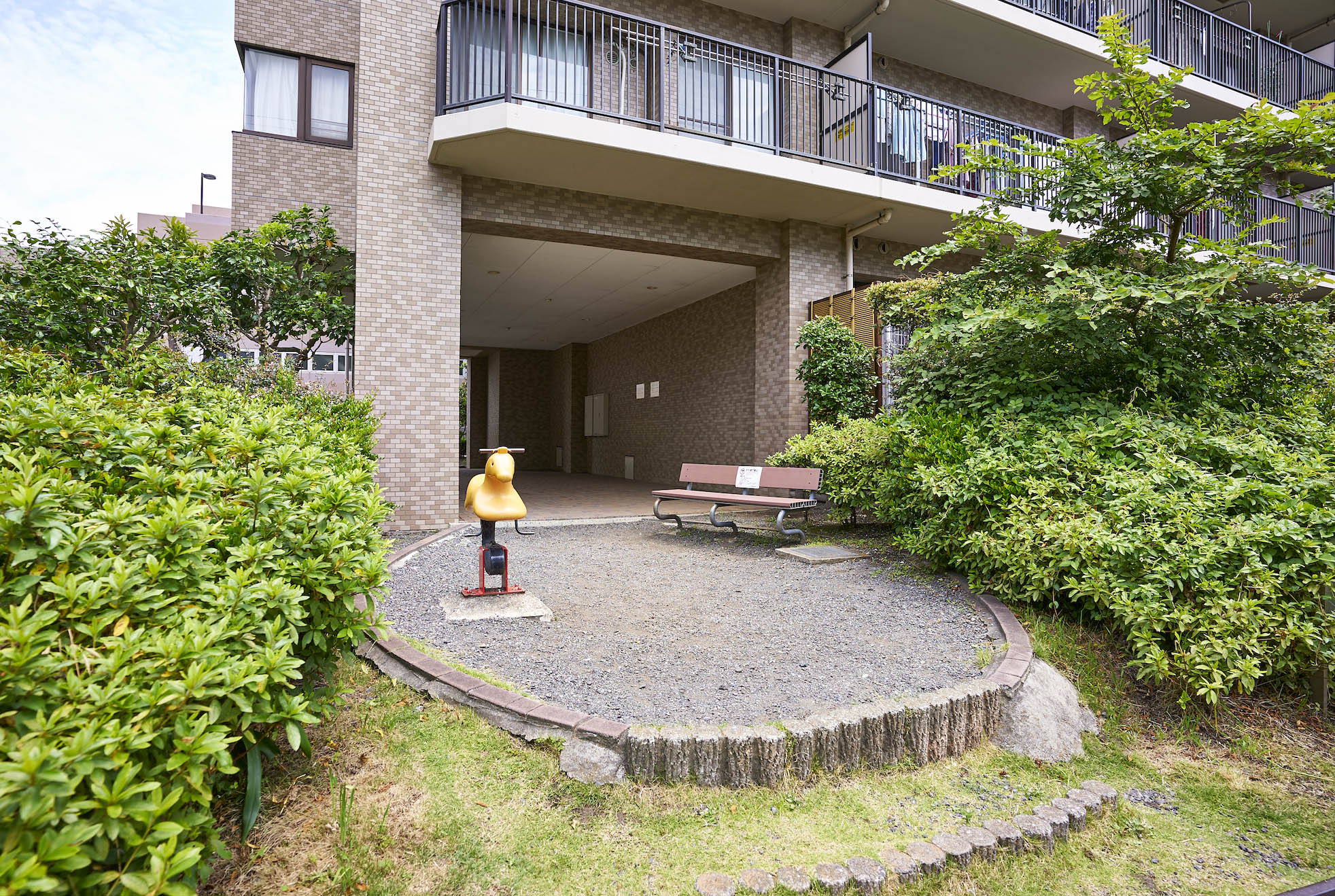 エントランスは機能性を考慮して、3カ所に設置。床には清潔感あふれる磁器タイルをあしらい、扉は瀟洒なデザインで、訪れる方を優雅に迎え入れます。1階には、住民同士がコミュニケーションを育む場として集会室が配され、趣味の集まりやサークル活動などに利用可能です。敷地内にはベンチを用意したプレイロットが設置され、保護者の方も安心な子どもの遊び場となっています。3階建の自走式駐車場棟「カーポート221」は、全221戸分の駐車スペースを完備。快適なカーライフをバックアップしてくれます。