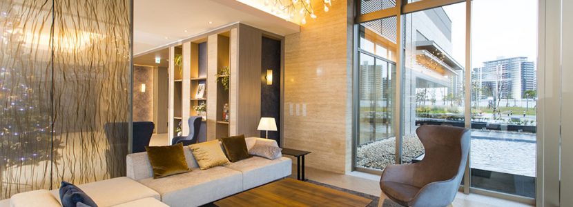 そよぐ緑ときらめく水の風景を、一面の窓に映すロビーラウンジ。「セカンドリビング」をコンセプトとしたその空聞が、穏やかなひと時を演出します