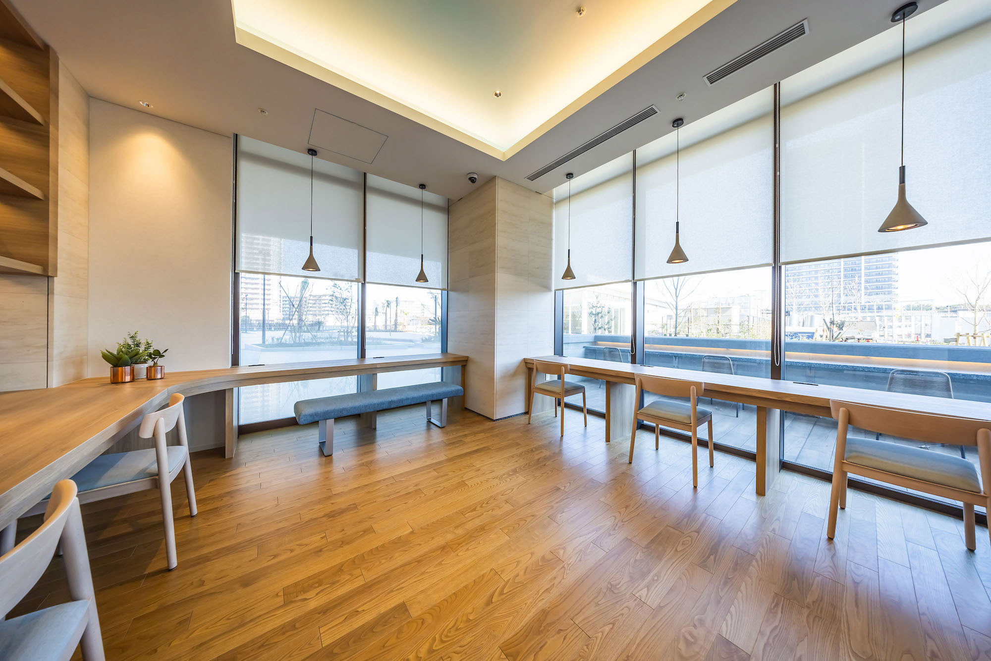 サークル活動やミーティング、パーティーなどに利用可能。コミュニティルームは白い砂浜にインスパイアされた清々しいインテリアが特徴です。開放感あふれる雰囲気が、集まった人々の心を開き、会話は弾み、有意義な時間をかなえます。