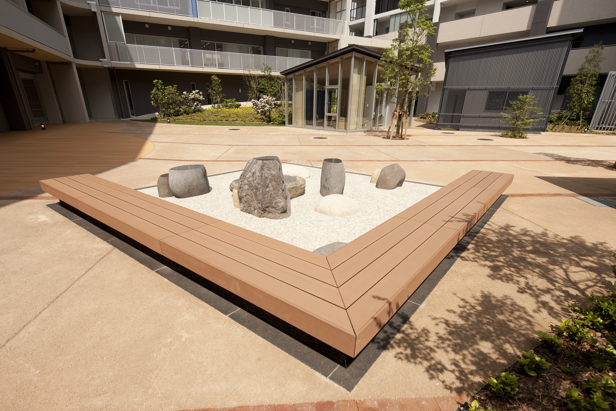 中庭の一画にある「コムベンチ」。降り注ぐ陽光の中で風の歌を聴きながら、憩いのひとときをゆったりとお過ごしいただけます。