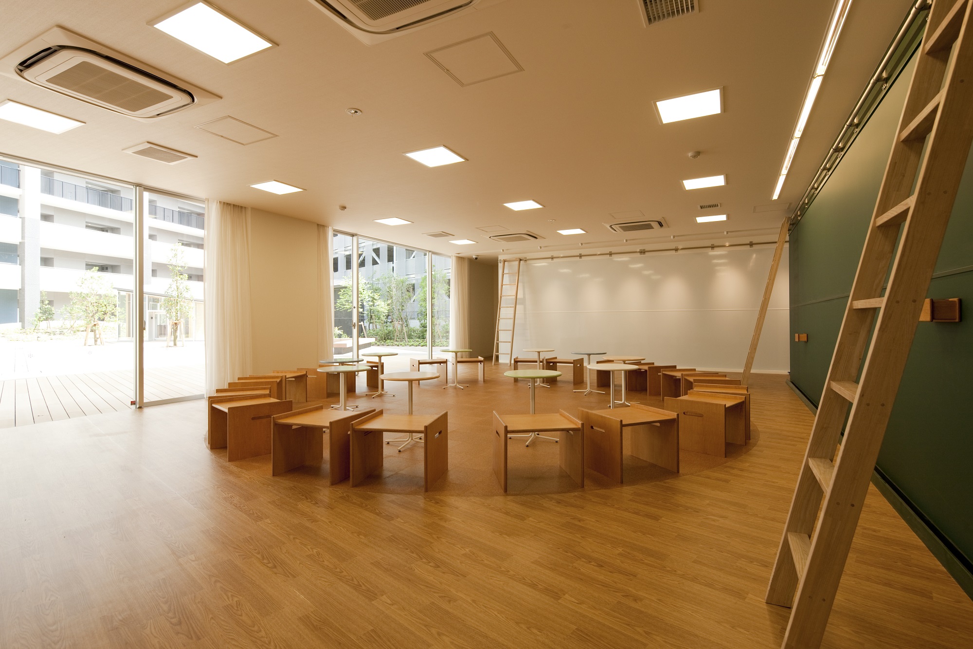 ディアレジデンスの2階にある「コムライブラリー」は、居住者の方々が自由に閲覧できるライブラリーや自習スペースとして開放されています。この広々とした空間はカーテンで自在に仕切ることができ、ワークショップの場などとしても利用できます。