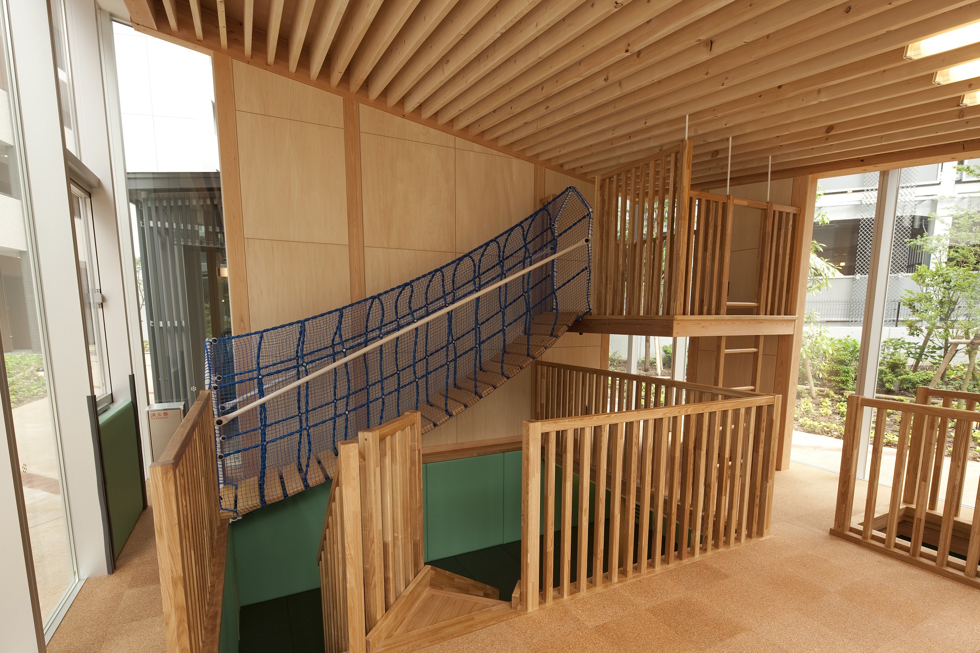 外から見れば他と同じキューブでも、中に入ると一変。ハシゴで登る見晴台やすべり台で滑り降りる地下室など、そこはまさに子どもたちだけの秘密基地。やさしい木の感触とコルク仕上げの床が、はしゃぎまわる子どもたちを穏やかに癒してくれそうです。