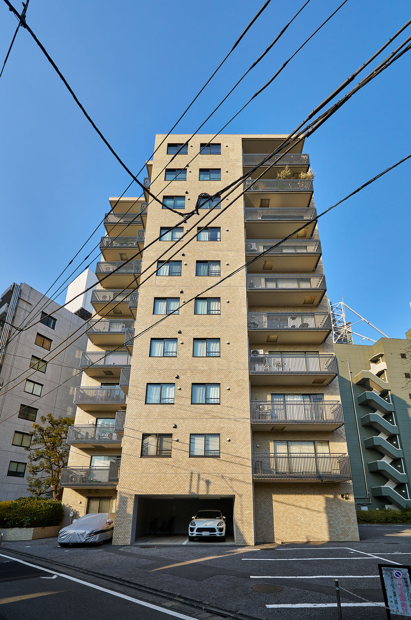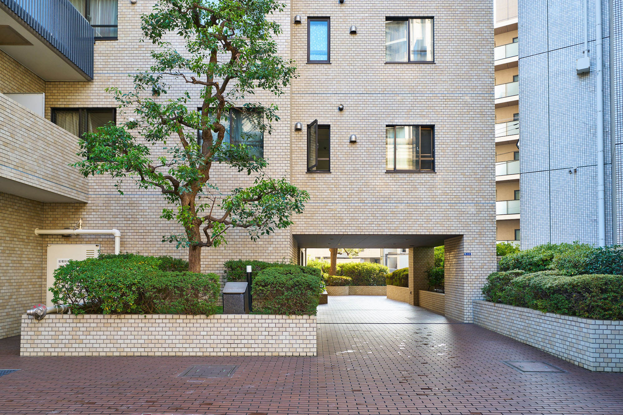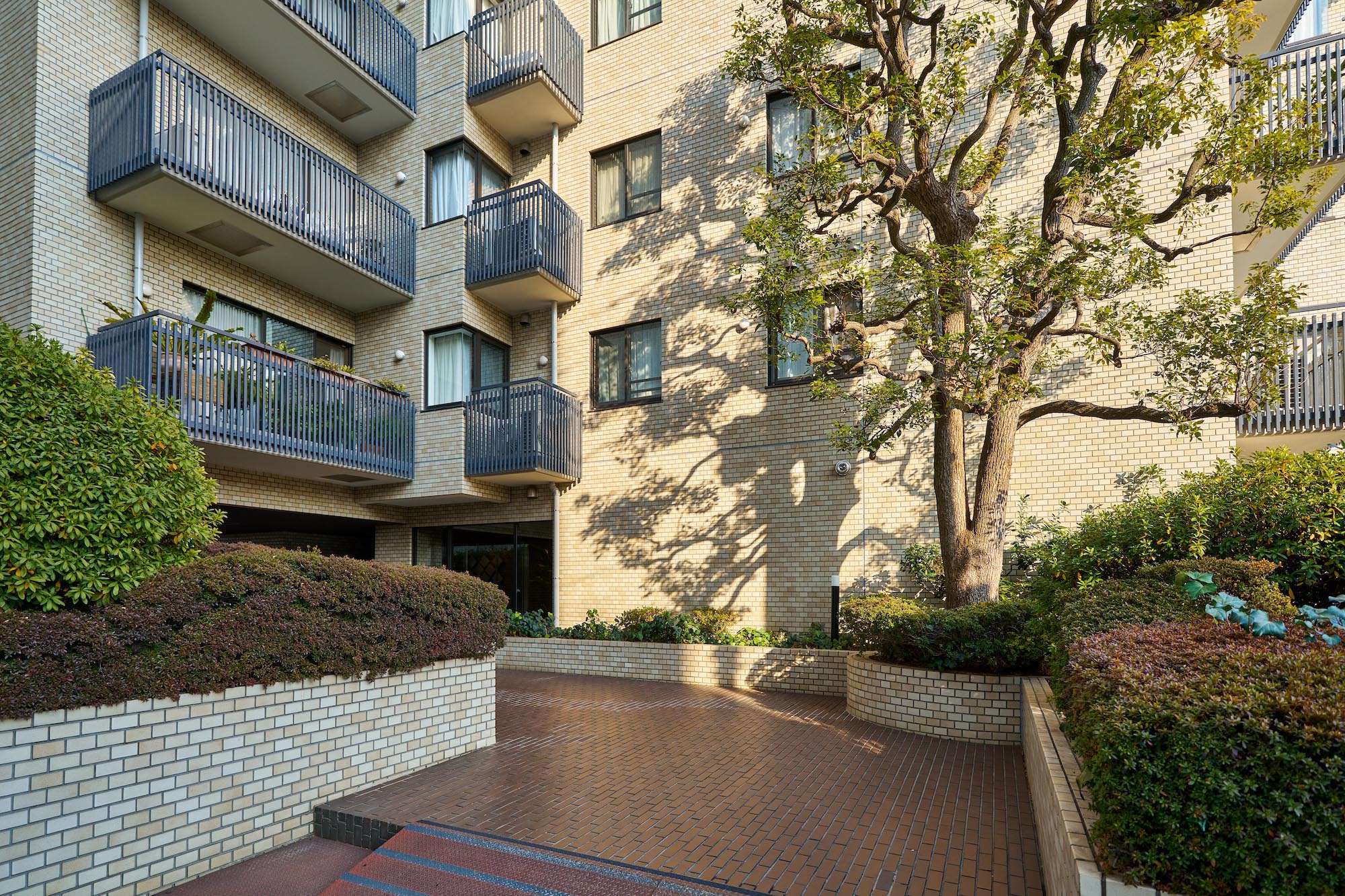 明るいべージュ色の総タイル貼り、10階建の変化に富んだ外観は、重厚さと洗練された趣きを感じさせます。エントランスアプローチには、タイルを敷き込み、豊かな植栽が施され、なごやかな表情を創出。優しい気品につつまれた、南青山にふさわしい佇まいです。