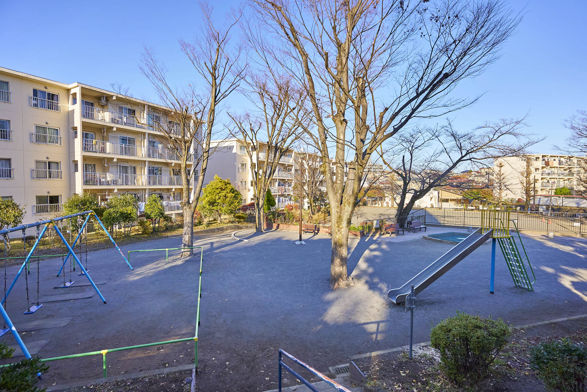 管理棟には大小2つの集会室があり、卓球やヨガ、コーラスや婦人会など、サークル活動が活発に行われています。隣接するカフェは自治会が運営しており、住民だけでなく、地域の方にも開放された憩いの場です。敷地内には公園も複数あり、子どもたちが安心して遊べる空間も用意されています。