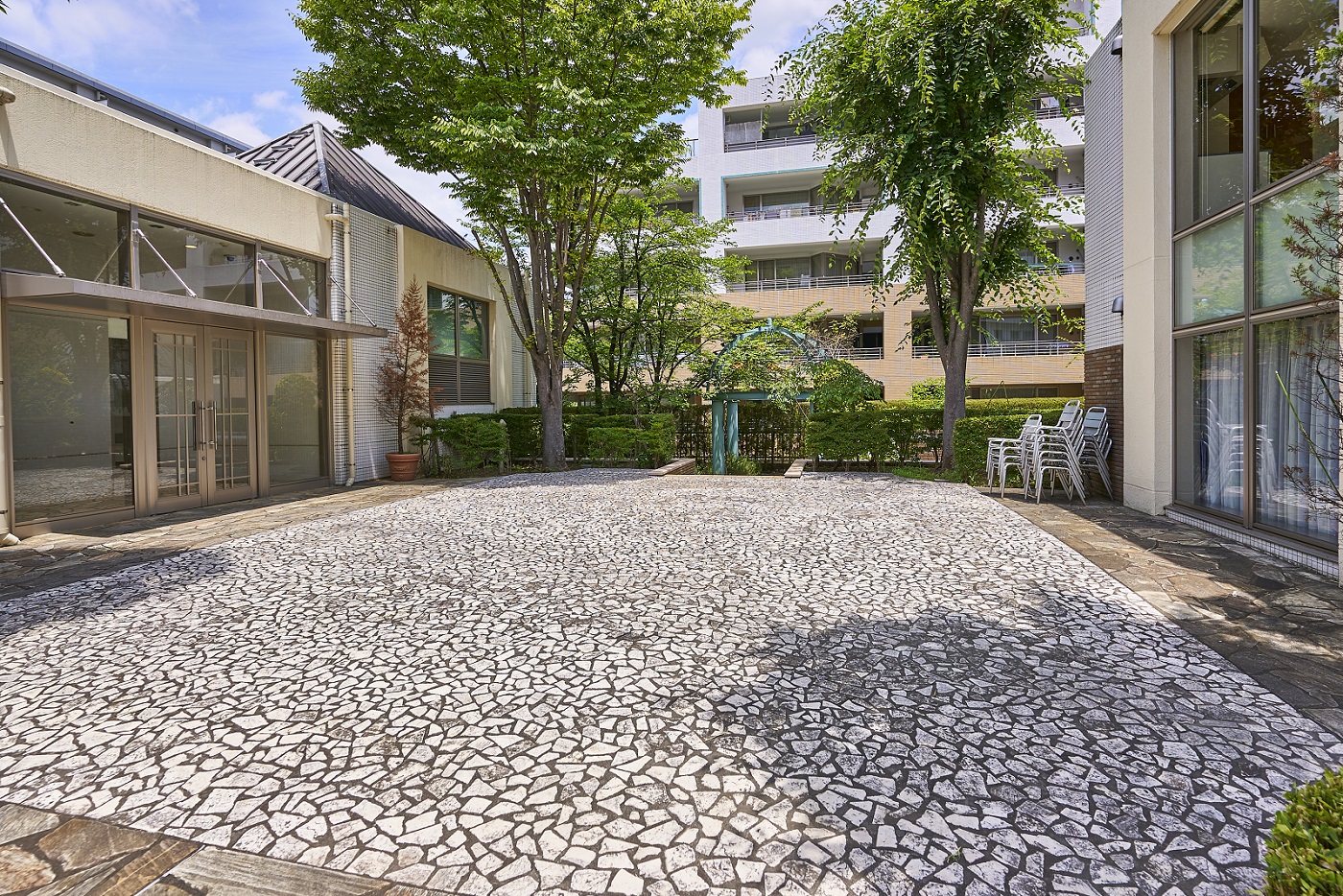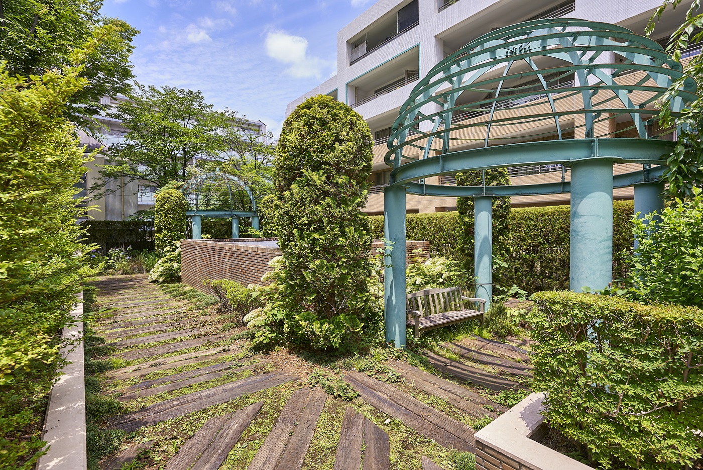 建物の迎賓空間には、リゾートホテルのように開放的なエントランスホールや豪華なラウンジが設けられ、広々とした敷地内には、南欧の街並みのようにモダンであたたかみのある小径や、楽園のように自然あふれる庭園が広がっています。その中庭の真ん中に佇むのは、共用棟の「コミュニティハウス」。大勢でパーティーが楽しめる「キッチンスタジアム」や「アウトドアテラス」、子供たちが伸び伸びと遊べる「キッズパーク」、映像や音楽を楽しめる「アリーナシアター」など、豊かな交流のための多彩な共用施設が備えられています。