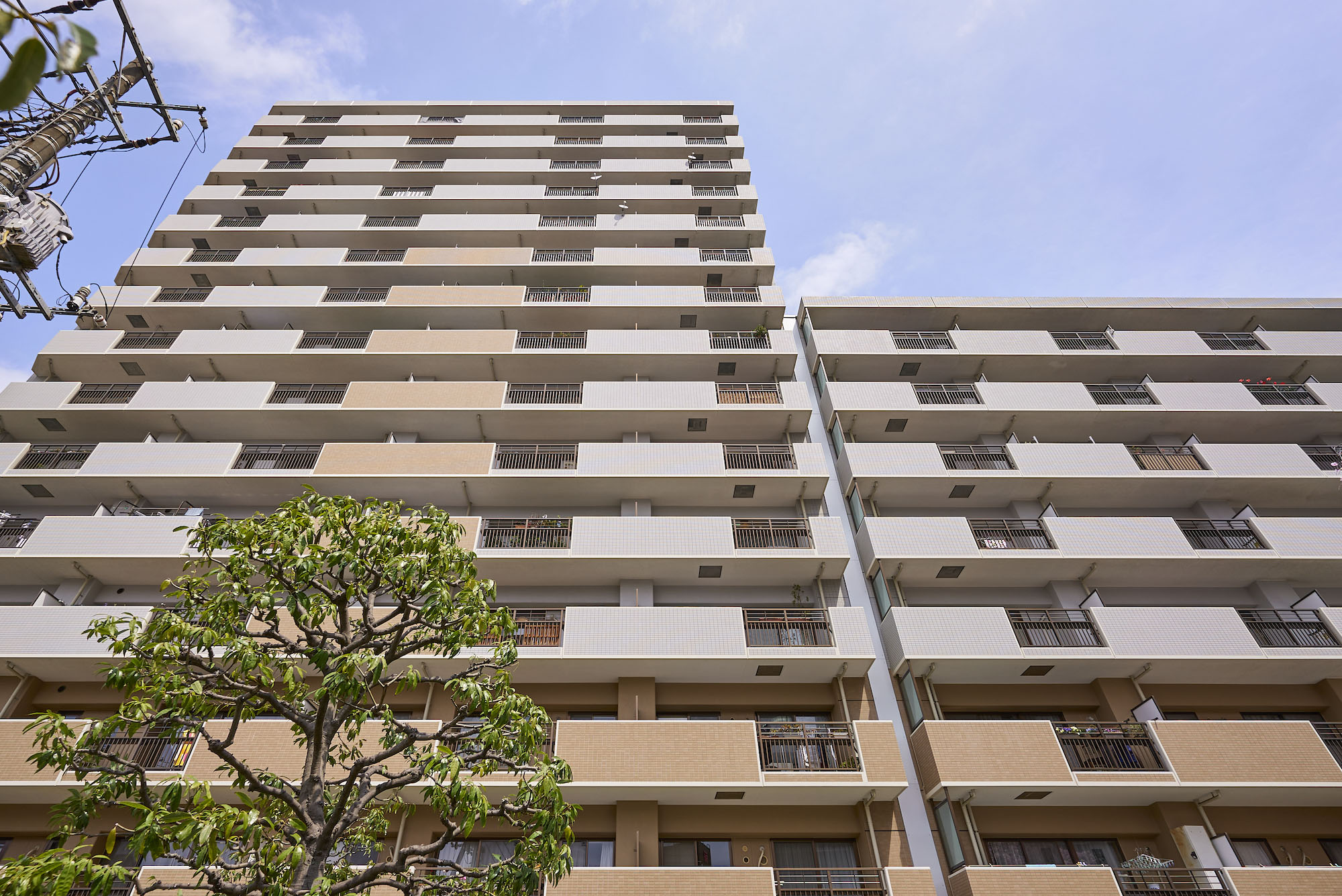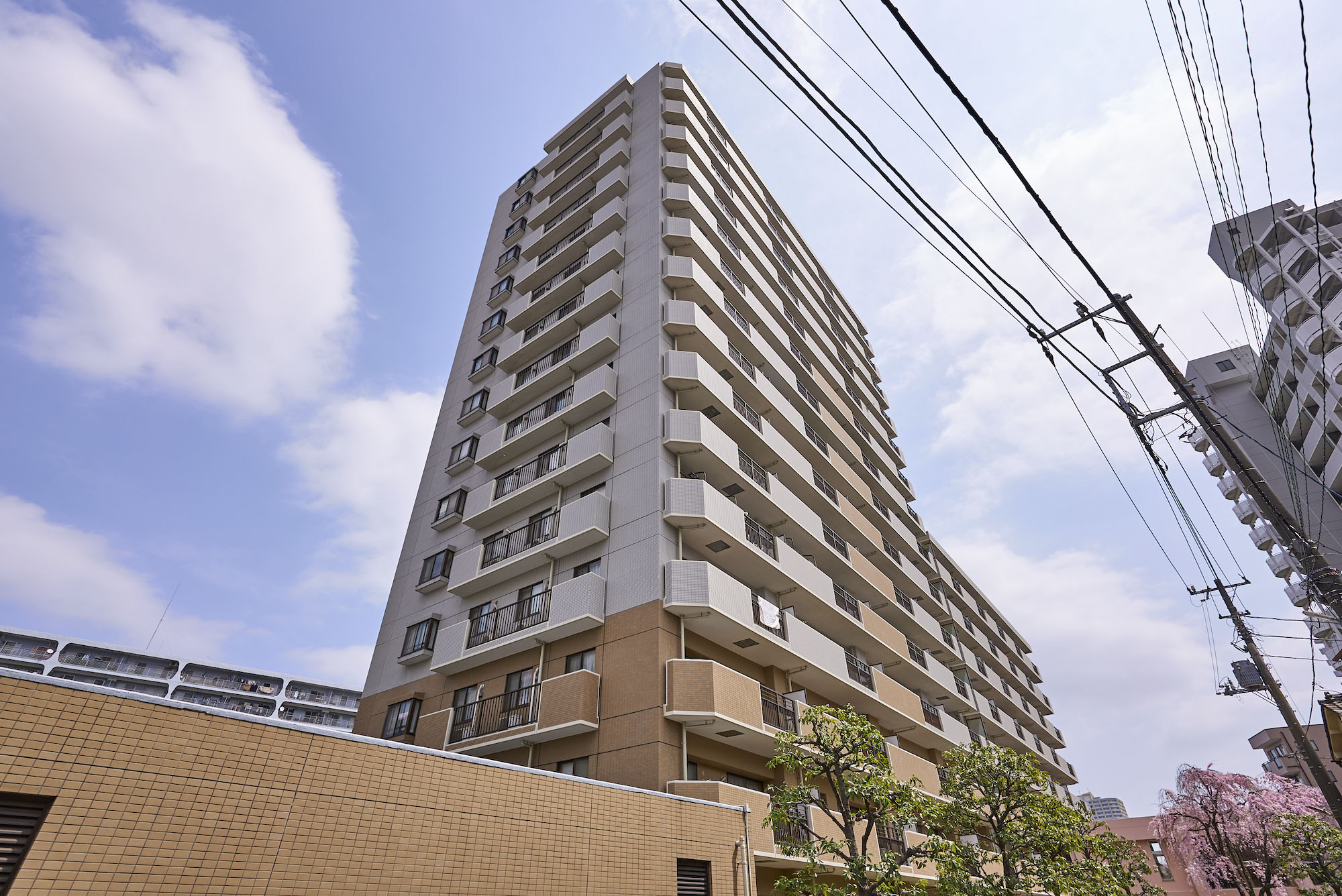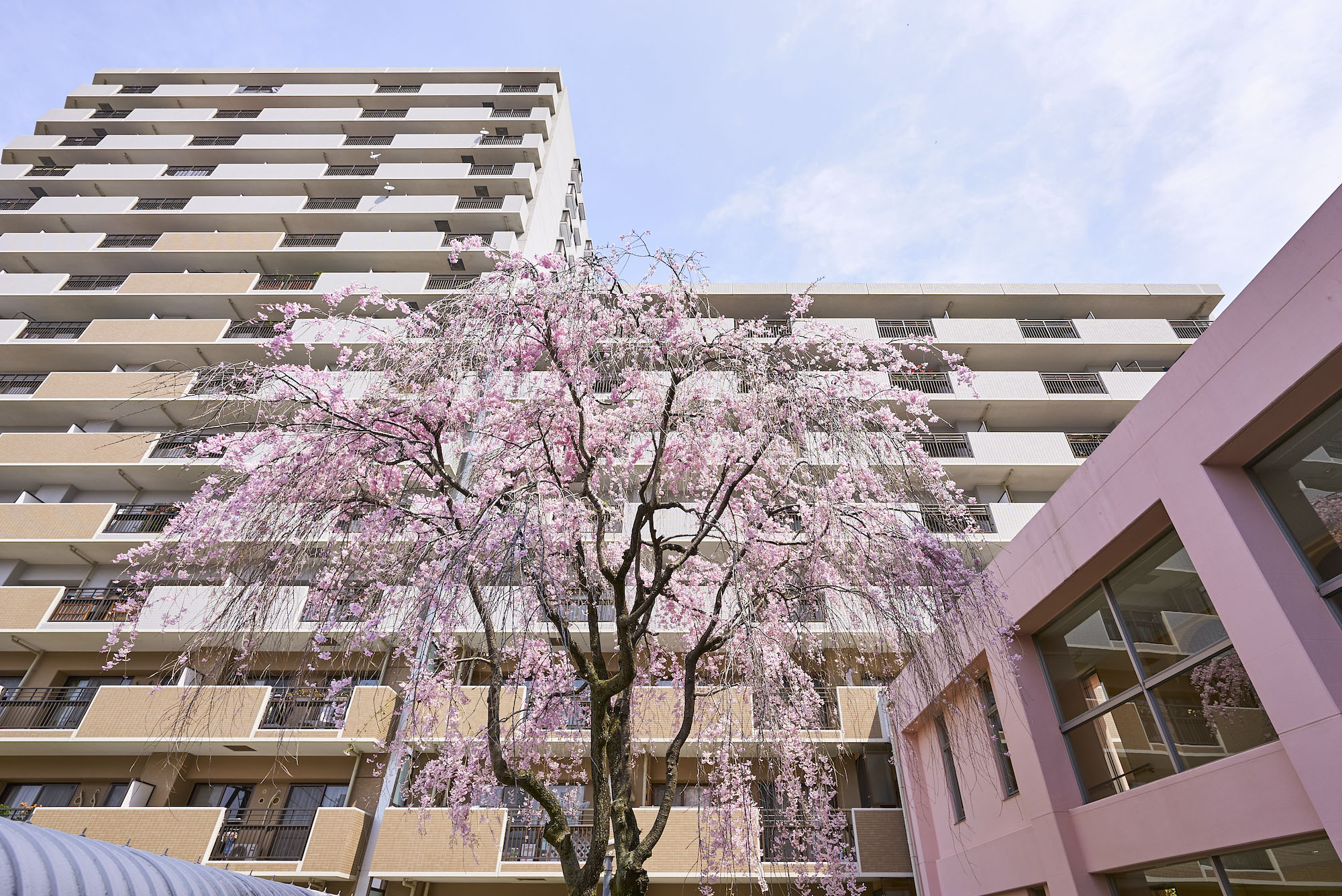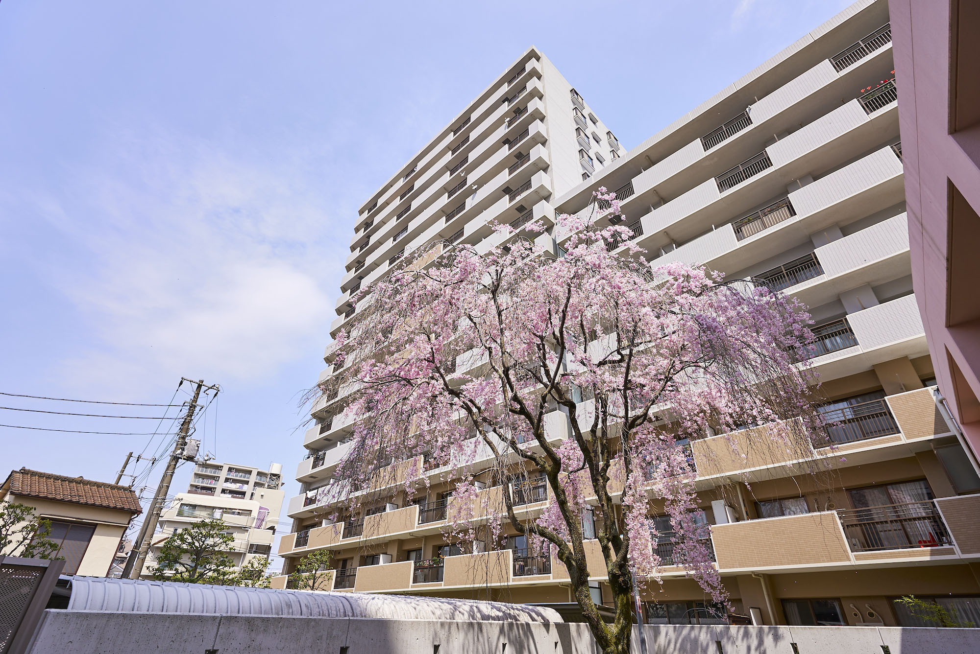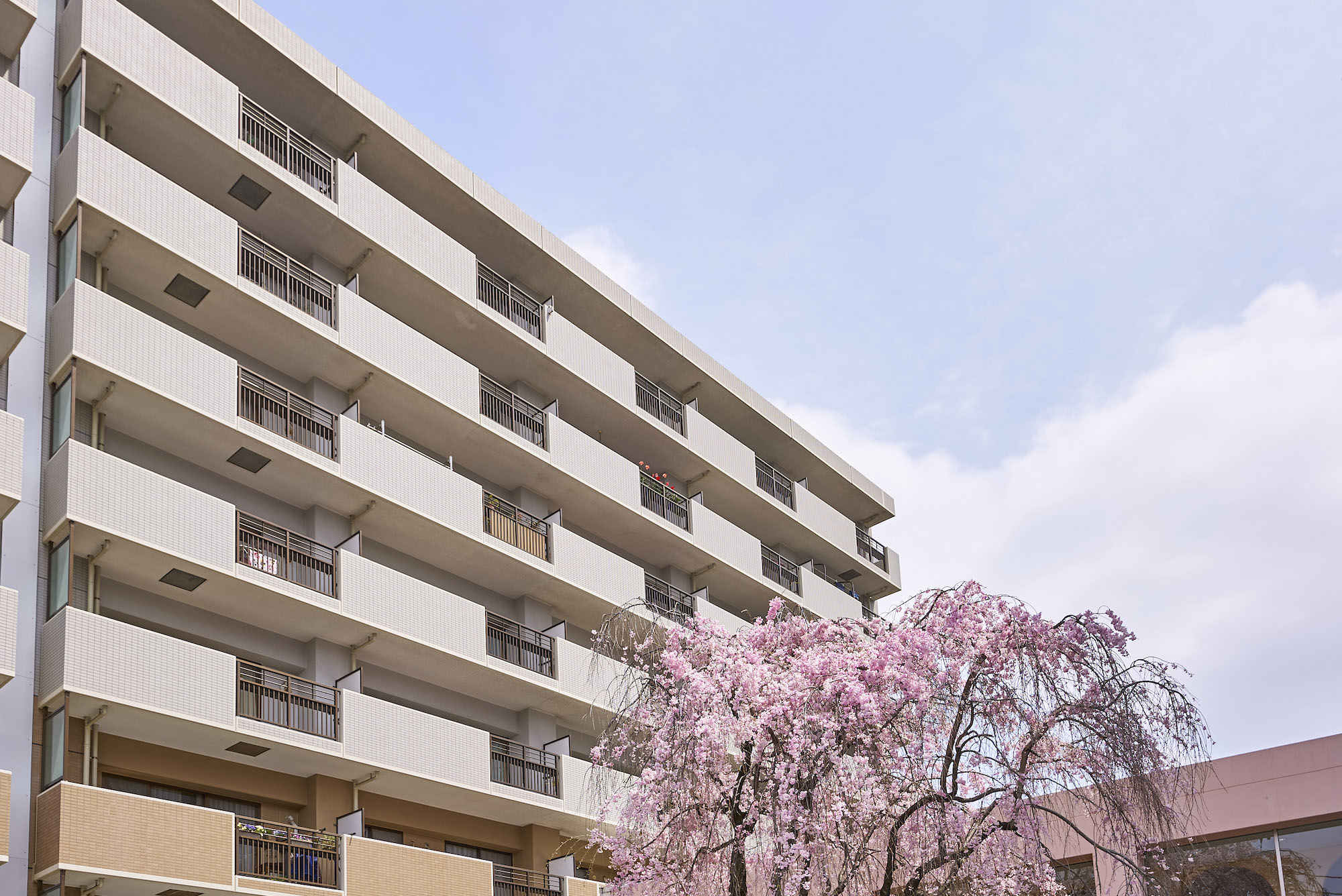 「パークアベニュー川口」は、駅前から続く川口西公園に隣接した、全戸南向き、総戸数177戸のビッグコミュニティです。約5,500㎡の広い敷地には、アベニューサイド棟とパークサイド棟の2つの住棟を配し、各住戸への採光性と通風性にすぐれた心地よいレイアウトを実現。公園の豊かな自然に加え、オープンスペースには季節を感じさせる植栽が豊富に施されています。住まいの顔として、エントランスは洗練された趣を感じさせるデザインに。屋根にスペイン瓦を用いるなど、南欧風の明るく心地よい意匠が施されています。