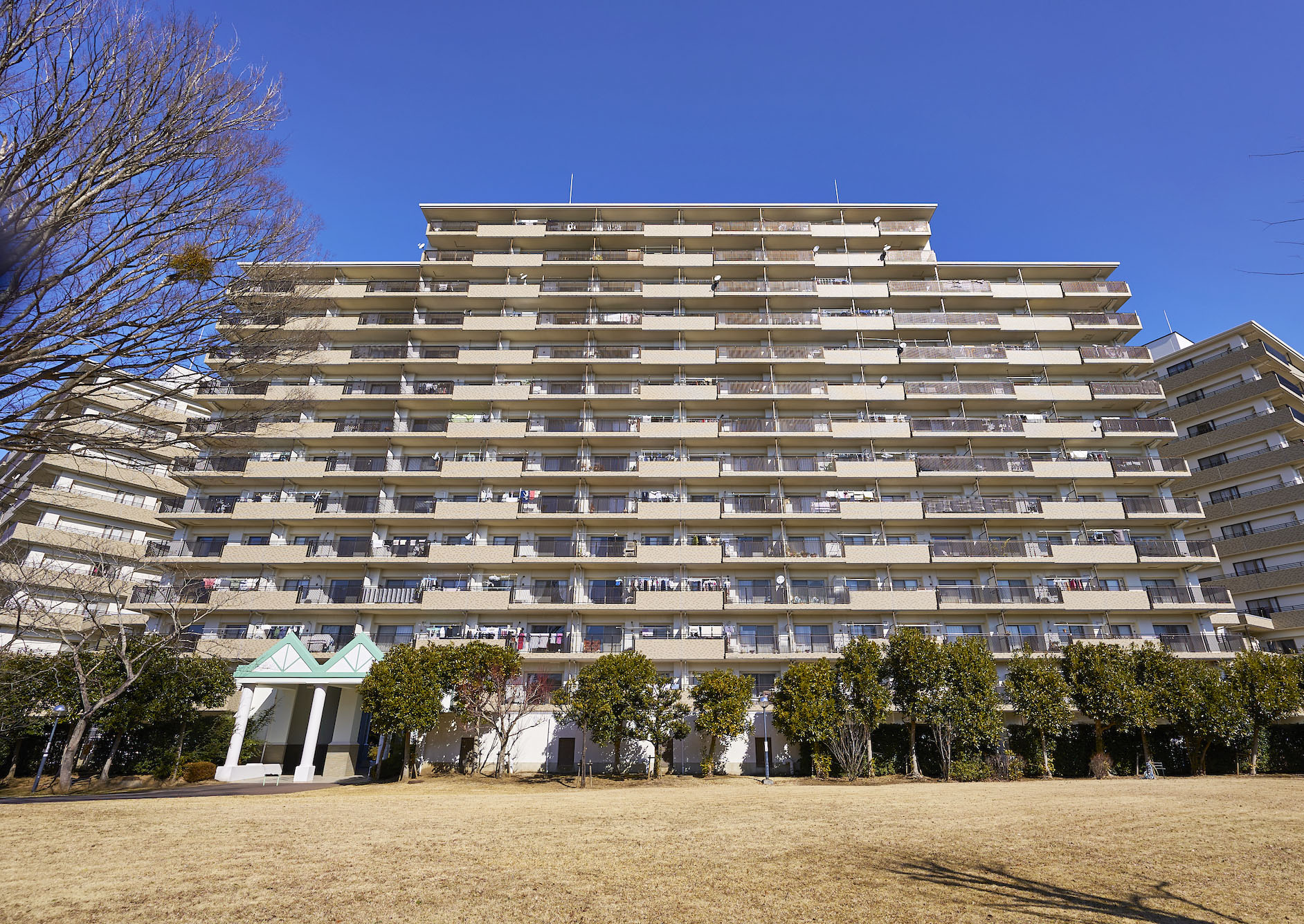 「パークシティちはら台」は、総開発面積約27,600㎡という広大な敷地に、都市の快適と自然の恵みをとり入れた街づくりが行われています。東西に伸びた住棟は、広げた翼で人々を優しく迎え入れるような大らかな佇まい。ダイナミックなフォルムと美しいスカイラインは、「ちはら台」住宅地のシンボルともなっています。