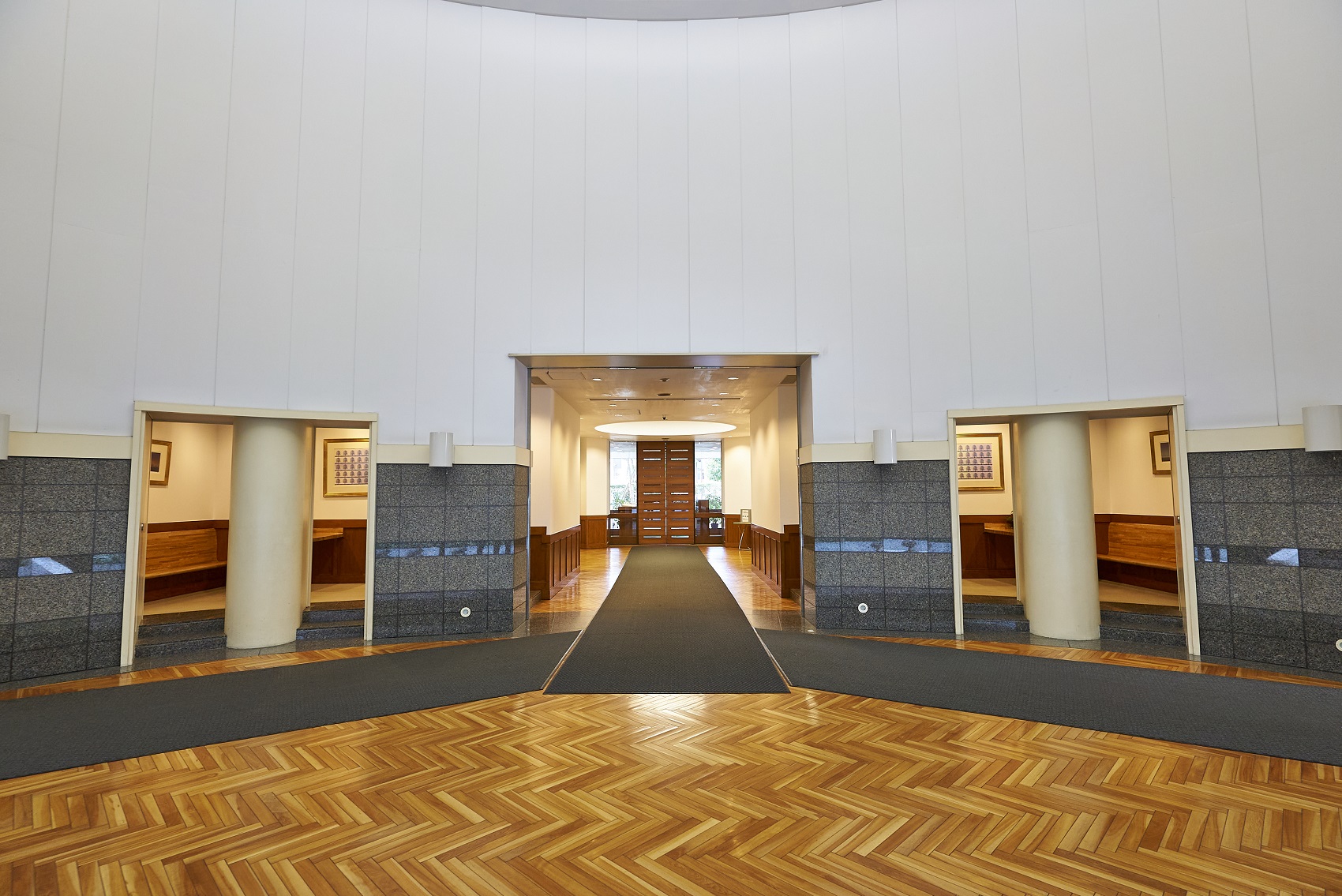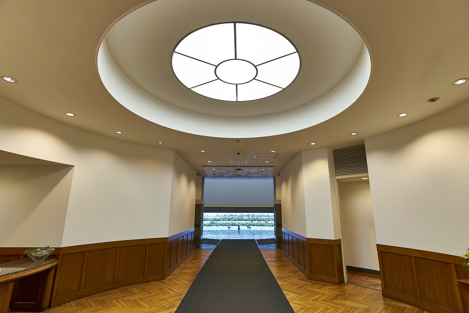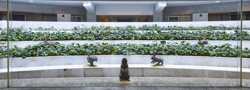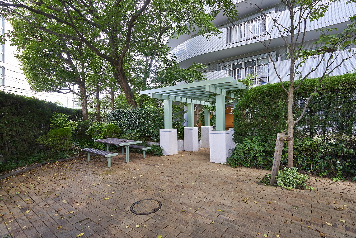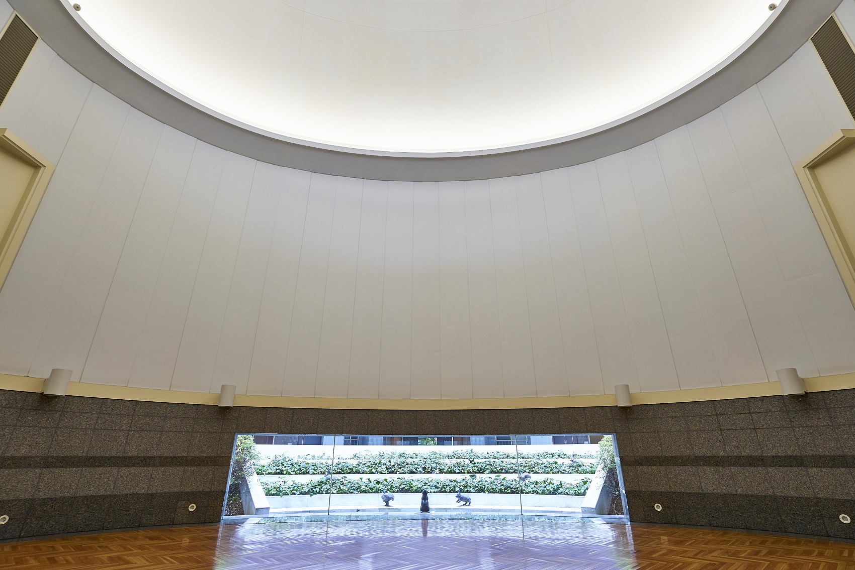 ゆるいカーブの大きな庇に、横スリットの入った二枚扉のエントランスを抜けると、円形のエントランスホール、さらにその奥には高い丸天井の楕円の広間「オーバル・ラウンジ」が広がります。正面には白い石と緑のアイビーを階段状にしつらえた中庭「ライトコート」、両脇の奥まった位置には一段高くなった「ゲスト・アルコープ」が配されています。ただ通り過ぎるだけでなく中庭を眺めながらゆったりとくつろげる空間です。他にも、集会室としても利用されるキッズルームや、緑溢れるトット・ロット、ローズ・パビリオンなどの共用スペースが設けられています。