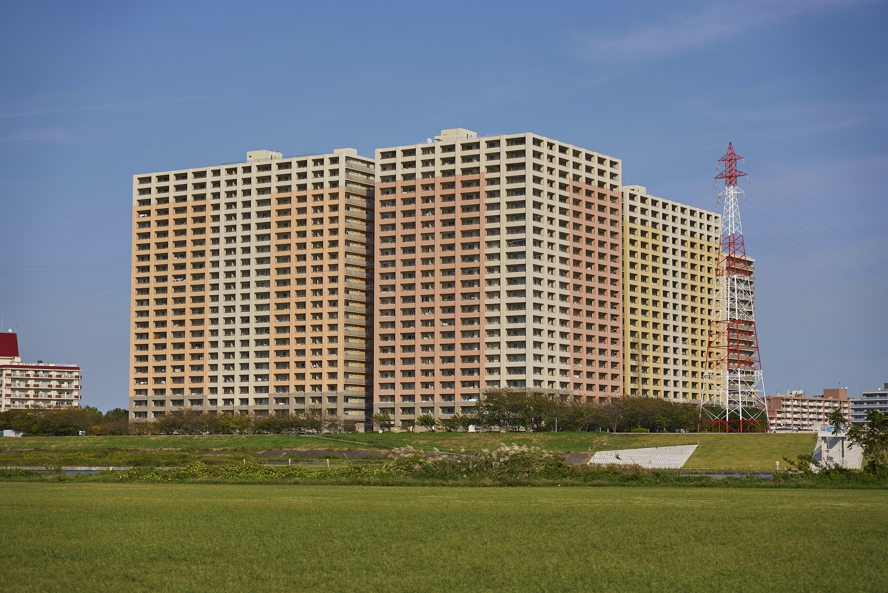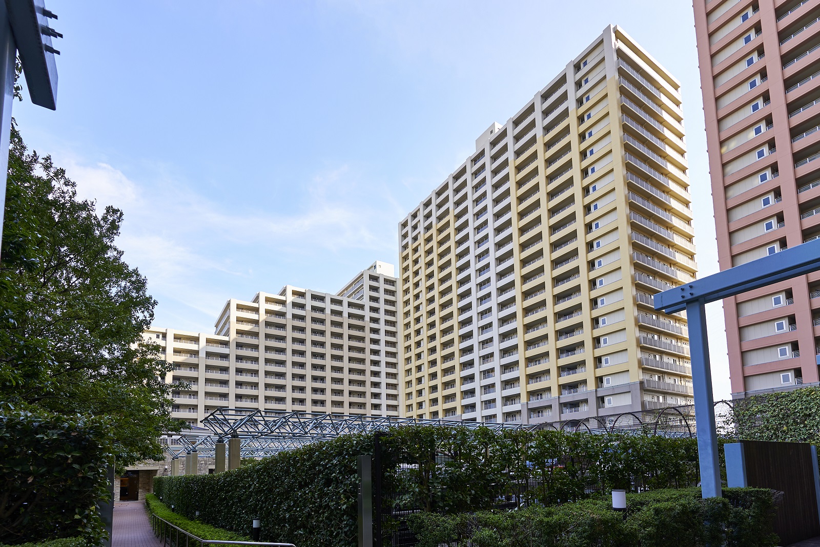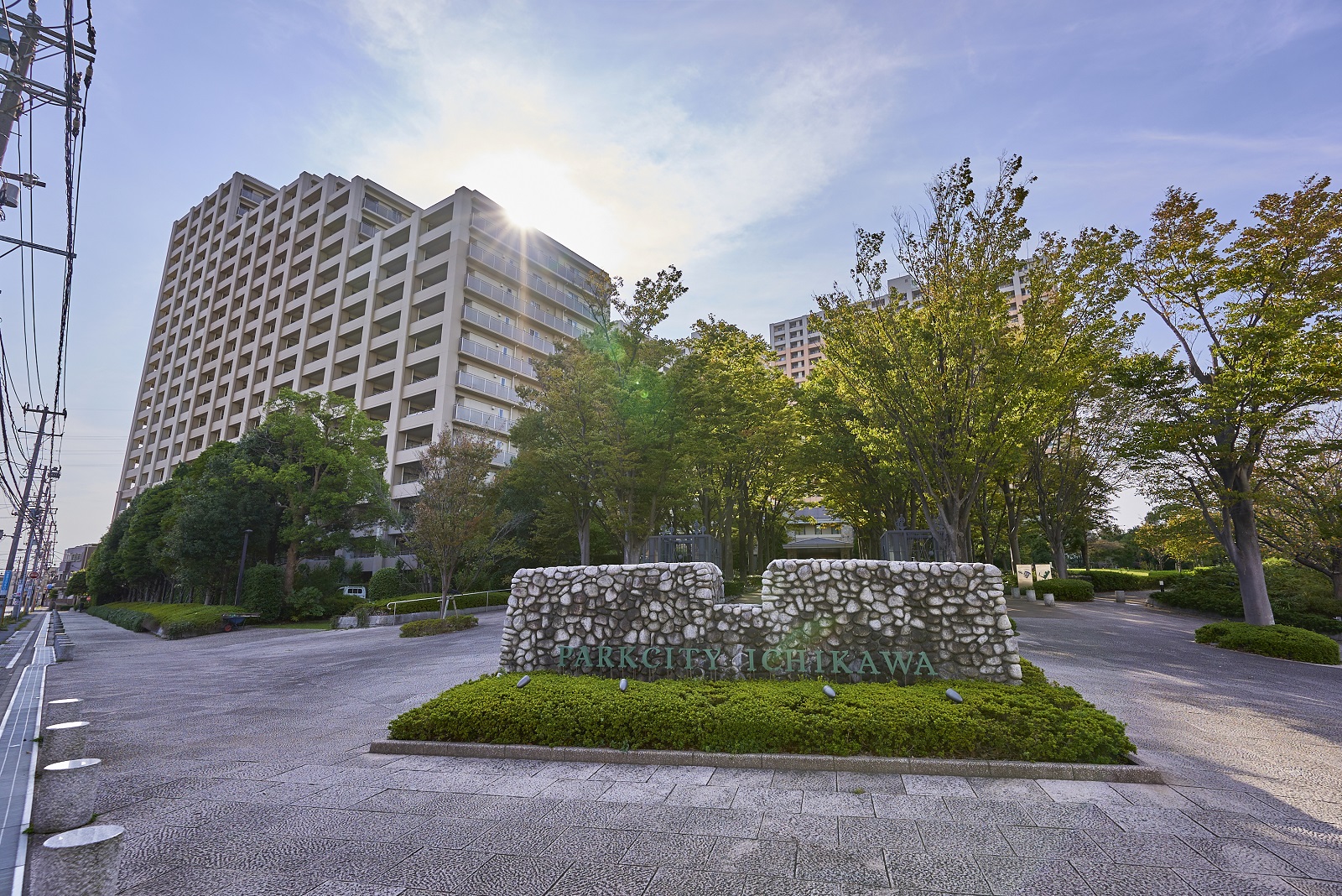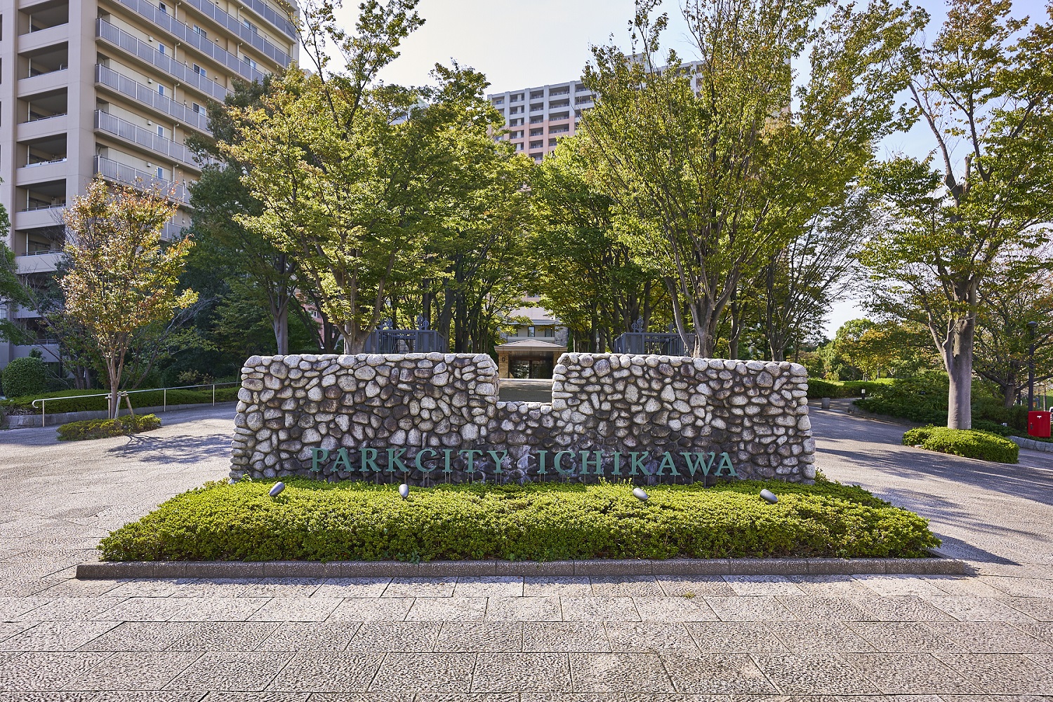 外観は、歩行者の視線が届く4階部分までは落ち着いたレンガ風タイル貼りに、5階以上は遠くからの視線を意識して明るい色合いとし、さらに一部をホワイト・グレーのツートンにすることで、空に溶け込む明るく軽やかな印象をつくり上げています。川沿いのランドマークとして堂々たる佇まいでありながら、大きく伸びやかな江戸川に映えるやさしいデザインです。メインエントランス前には、住む人には誇りを、訪れる人には驚きを与える、圧巻の大欅並木が続いており、石積みのサインウォールや鍛鉄製の門柱など、こだわりの意匠が満ち足りた暮らしを予感させます。欅並木の梢越しに姿をのぞかせる「クラブハウス」は、自然石を使った外装、訪問者を出迎えるように伸びた車寄せ風の庇、クラシックなチムニー(煙突)が並木の緑に映えて、英国のカントリー・ハウスを思わせるシックで重厚なデザインです。
