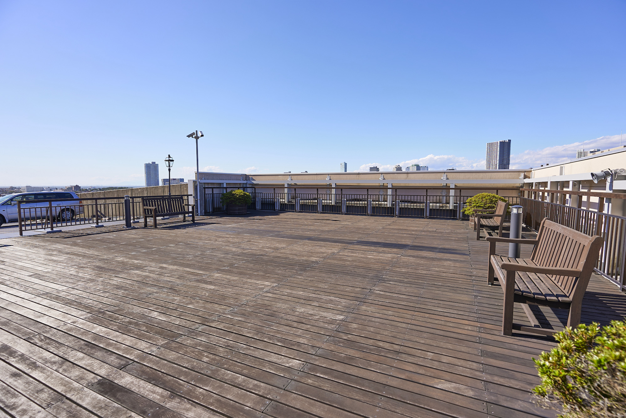 敷地中央に広がるのは、四季折々の花が施されたイングリッシュガーデン「ガーデンスクエア」。その美しい景色を望む位置に、ゆったりと気品あふれるラウンジが設けられています。アンティーク家具が配された空間は、英国のクラブハウスのような印象。わが家のもう一つの居間や応接間、時にはパーティールームとしても使えるスペースです。コミュニティルームも2部屋用意されており、仕切りを開けると広いひと部屋として、集会や趣味の講座など多目的に使用できます。また、駐車場棟の屋上には、緑の植え込みとベンチが配されたスカイデッキを完備。星を眺めたり、夏の夕涼みや花火見物、幕張の夜景などを楽しめる、住民の憩いの場所となっています。