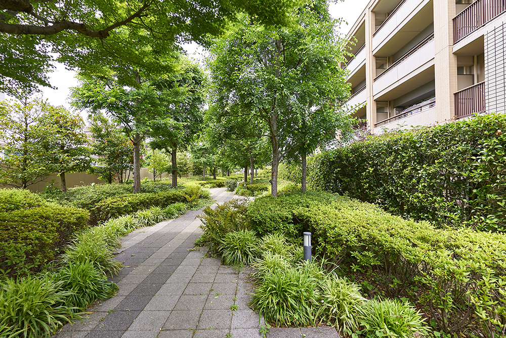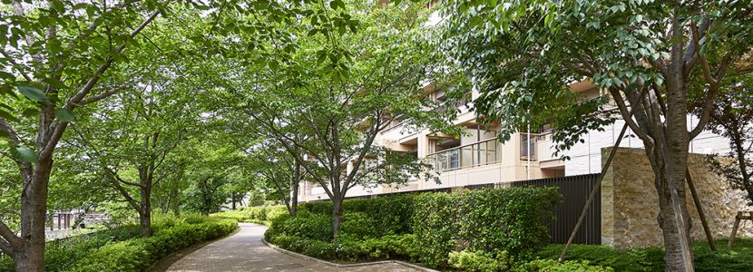 まるで森の中から生まれたような、自然と調和する街をイメージし、森の趣と暮らしの洗練を兼ね備えたデザインが施されています。自然の表情を表現するために、街全体を、さらに3つの個性を持つ森に分けてデザイン。街路に面しゲート感のある「人を迎える森」、人々が集う中庭から望むことができる「暮らしの森」、街の奥座敷として落ち着いた雰囲気漂う「森の奥座敷」。そしてその3つの領域に呼応するように、各棟のエントランスは個性的なデザインが採用されています。