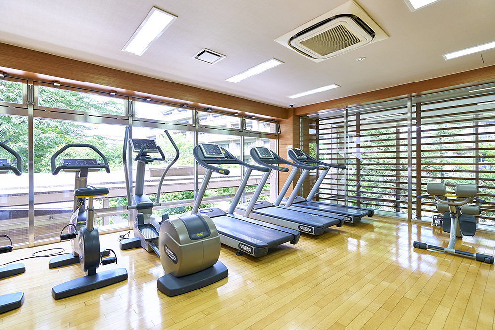 ランニングマシーンや筋力トレーニングマシーンなどを備え、庭の景色を望みながら、健康づくりを楽しめます。