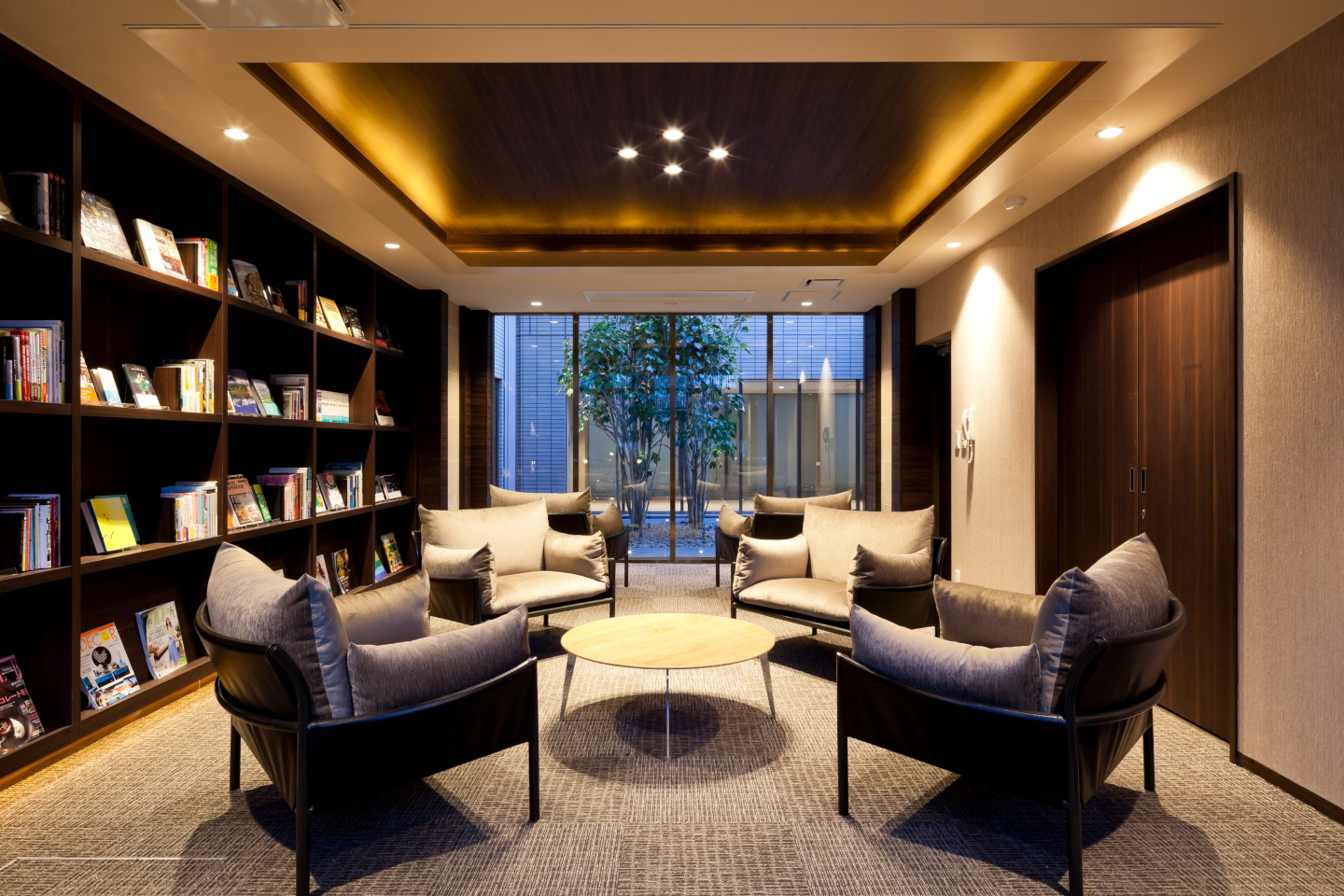 屋内のコミュニティスペースとして、プライベートラウンジとウェイティングラウンジがあり、ゆったりと寛げるスペースになっています。
