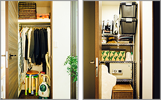 クロゼットは何がどこにあるか一目でわかる工夫。