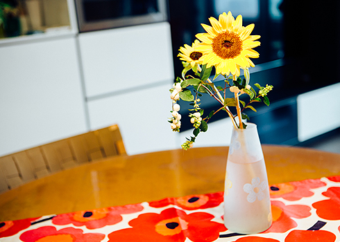 生活に彩りを与えるアイテムとして、花や緑を積極的に採り入れる。鮮やかな生花や自分で育てた草花からパワーをもらえるという。