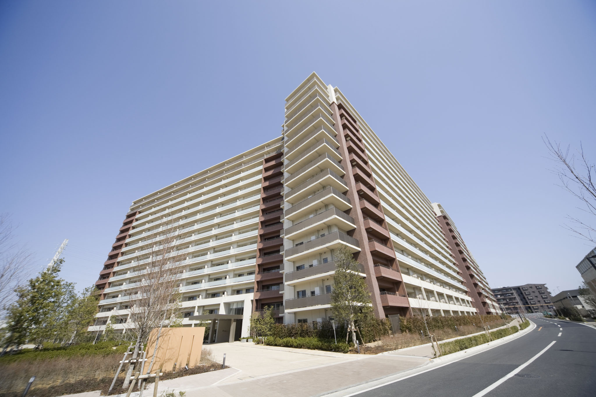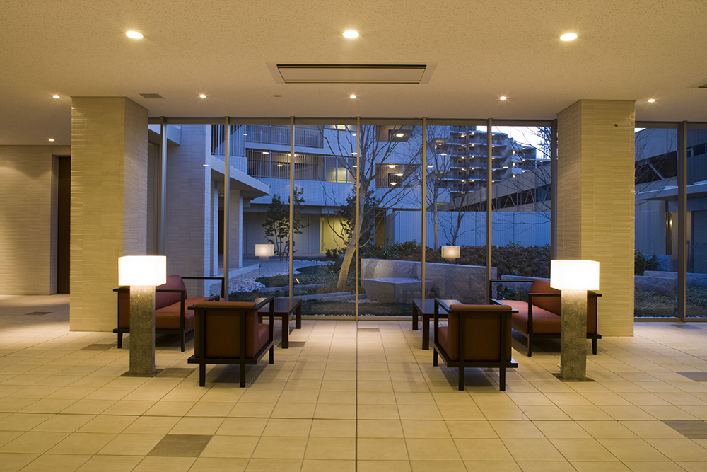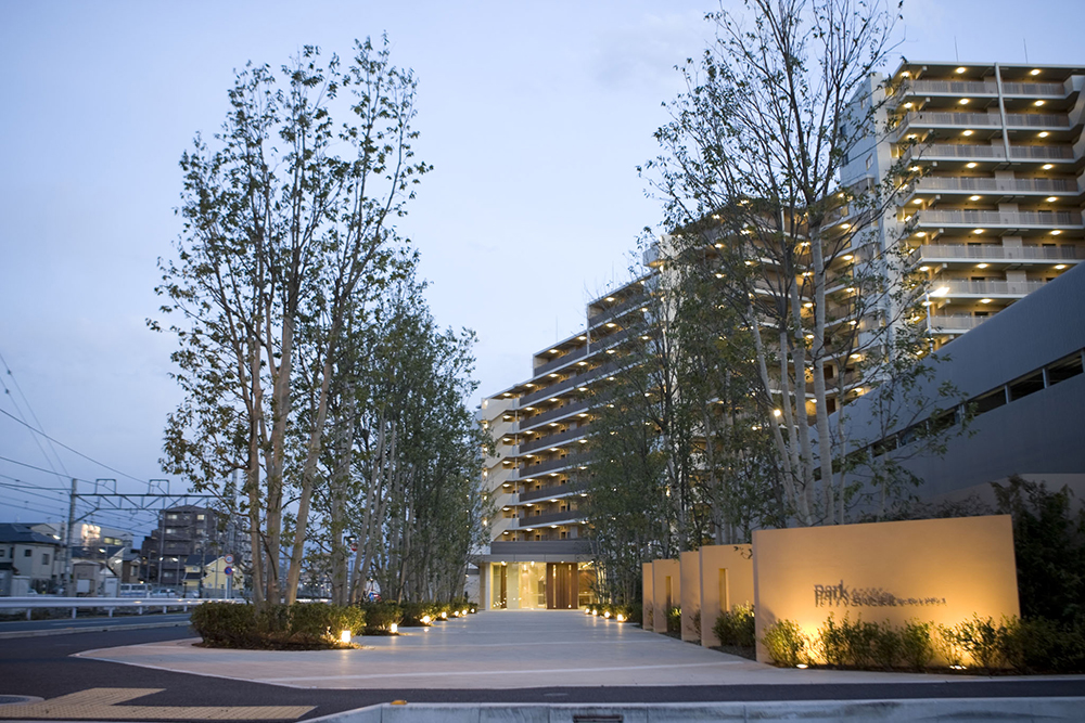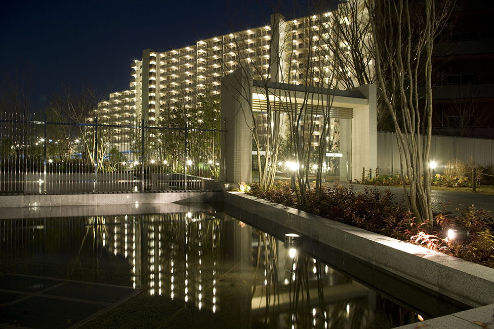 4ヶ所のエントランスには、水盤やシンボルツリー、車寄せなどを優雅にデザインし、美しい存在感を称える迎賓の空間を創造します。緑と調和する色彩、大地との一体感を求めたフォルム、空への開放感を生み出す街路空間など、様々なデザインコードを綿密に検証し、ヒューマンスケールで親しむことのできる環境共生型ライフステージを追求しています。