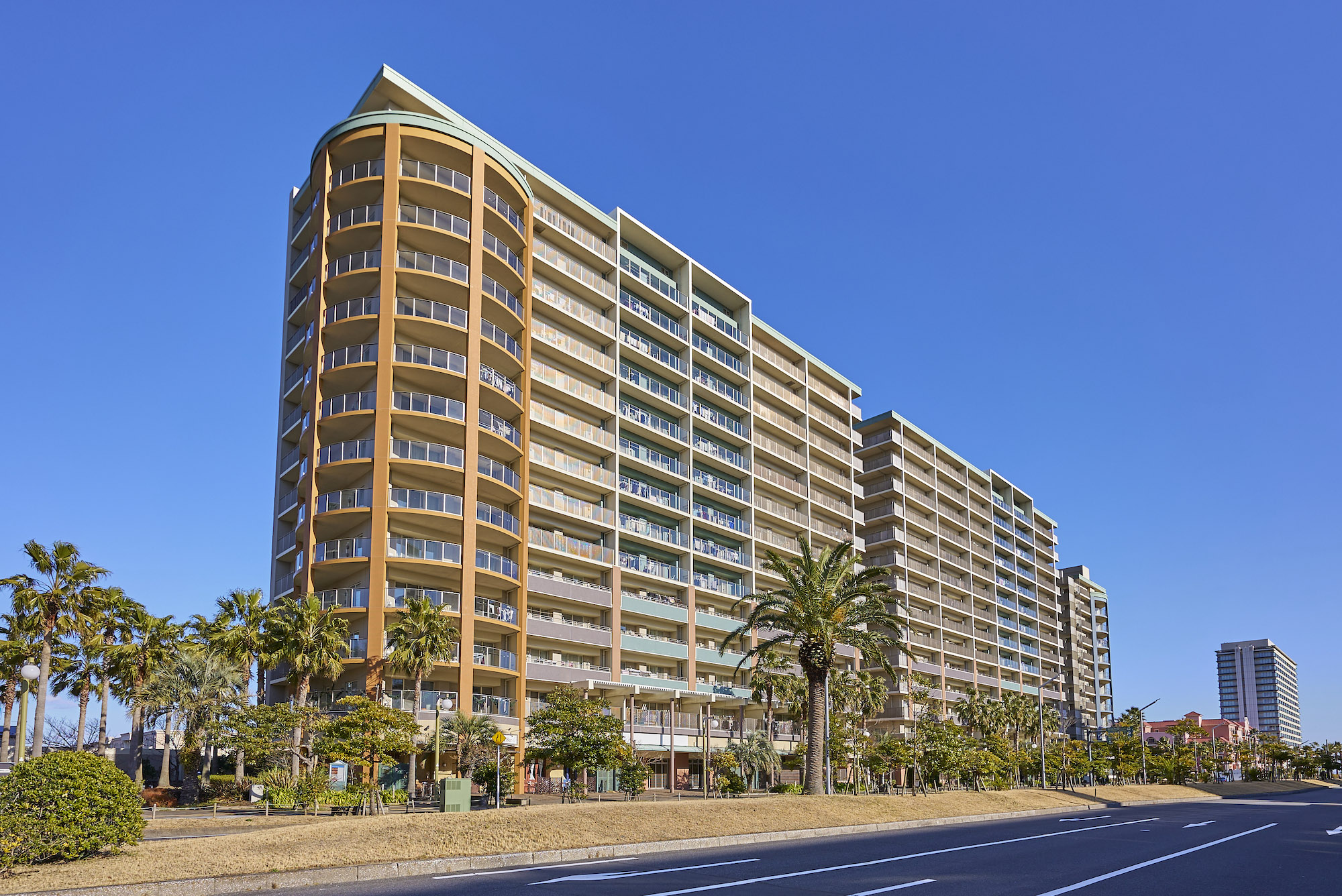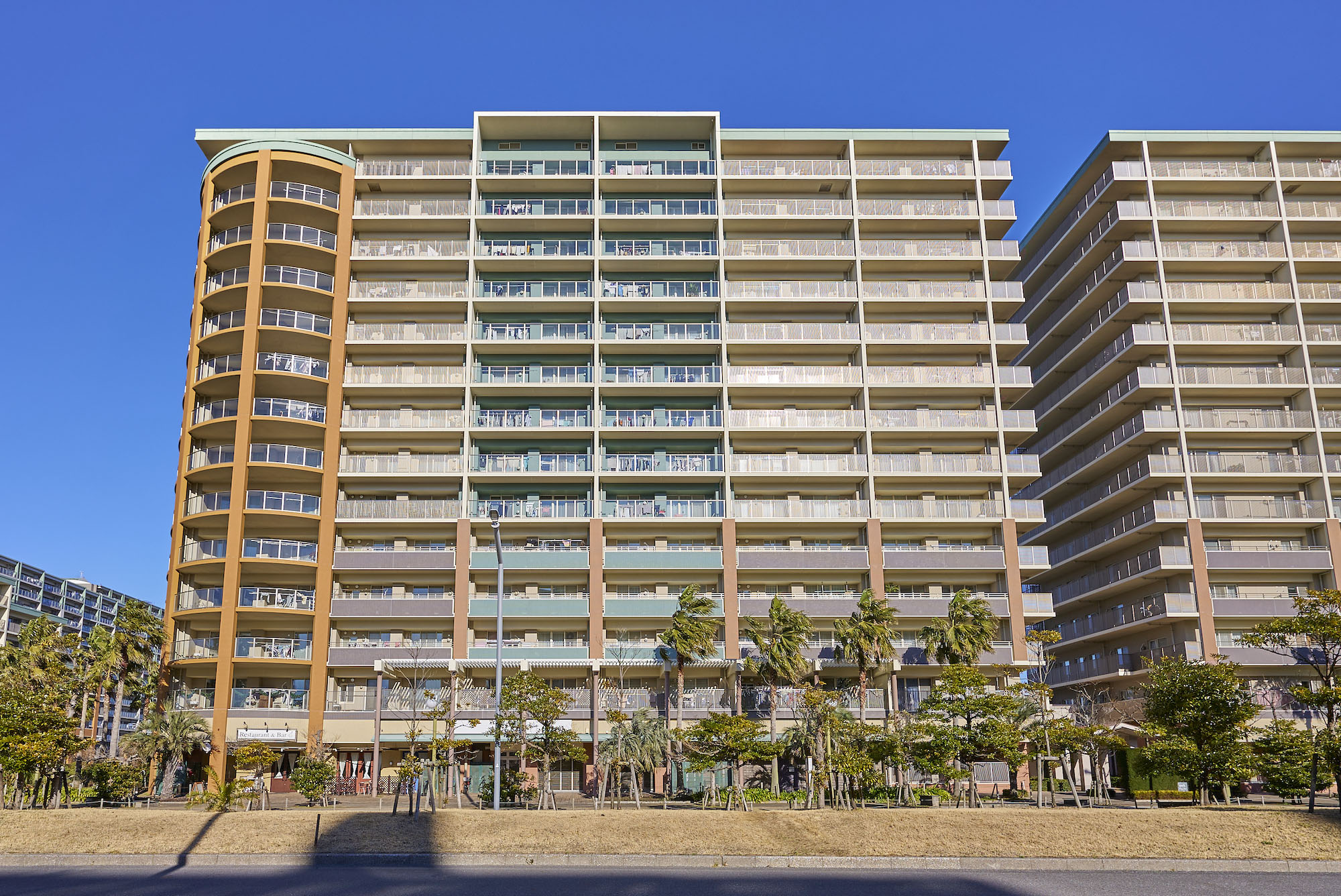 「パークシティ東京ベイ新浦安」の住棟外観デザインは、周辺建物との一体感をもたらすよう、形状とカラーにこだわっています。統一のテーマである海辺のアーバンリゾートに溶け合う、印象深いブルーの勾配屋根。妻部分のシリンダー(円形バルコニー)は、シンボルロードに沿って大地から海へ向かうように表現する「アプリコット、キャメル、グリーン、オーシャンブルー」の4つのテーマカラーを持たせ、周辺の街並と調和しつつ個性的な景観を創り上げています。シンボルロードはヤシの木をシンボルツリーに、3街区全体の統一されたトロピカルな景観を演出。さらにガーデンデザインではそれぞれの街区でテーマがあり、Sea街区では「AUREO COURT(黄金の庭)」をイメージして、黄金のイチョウの木を中心に多彩な植栽計画が施されています。
