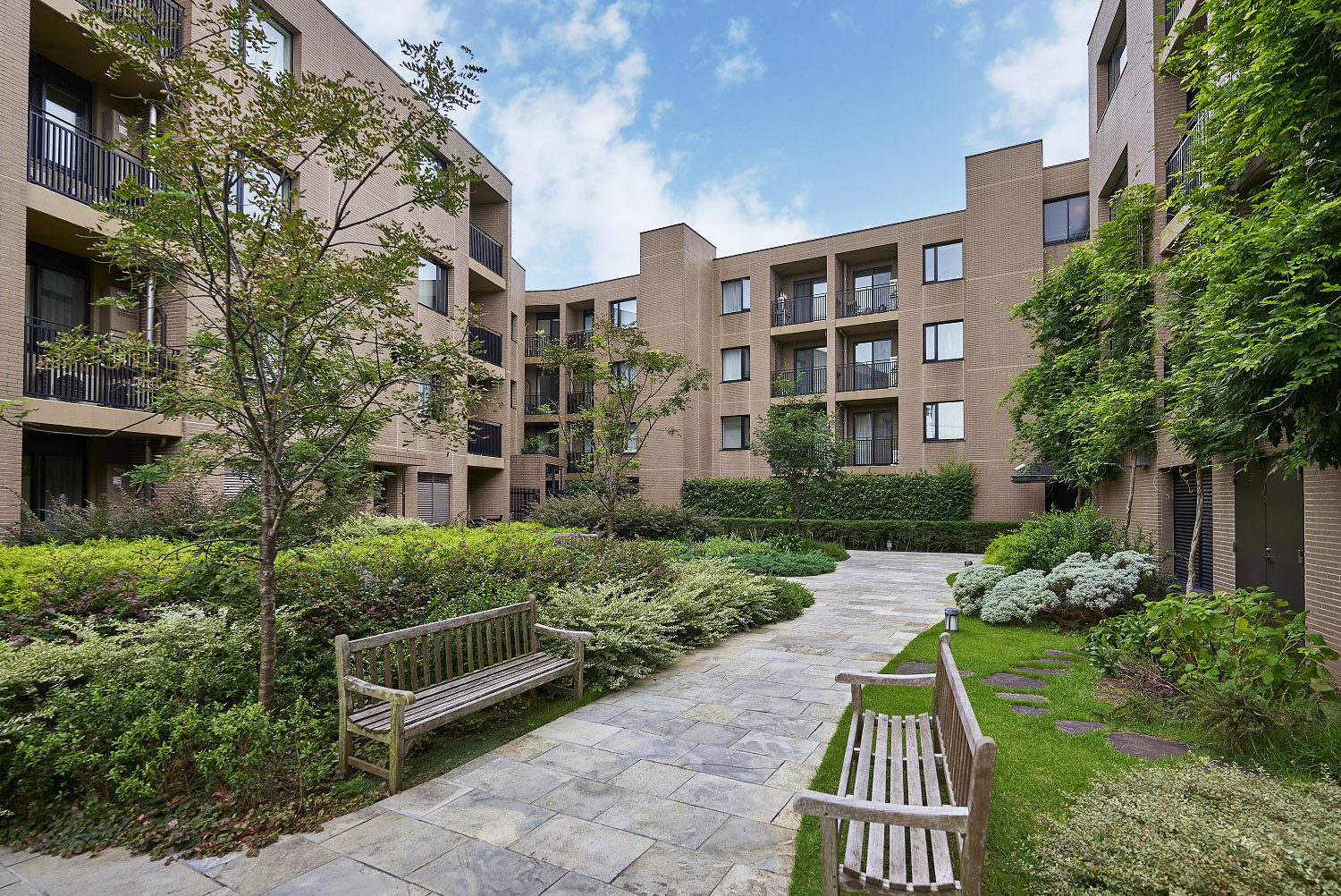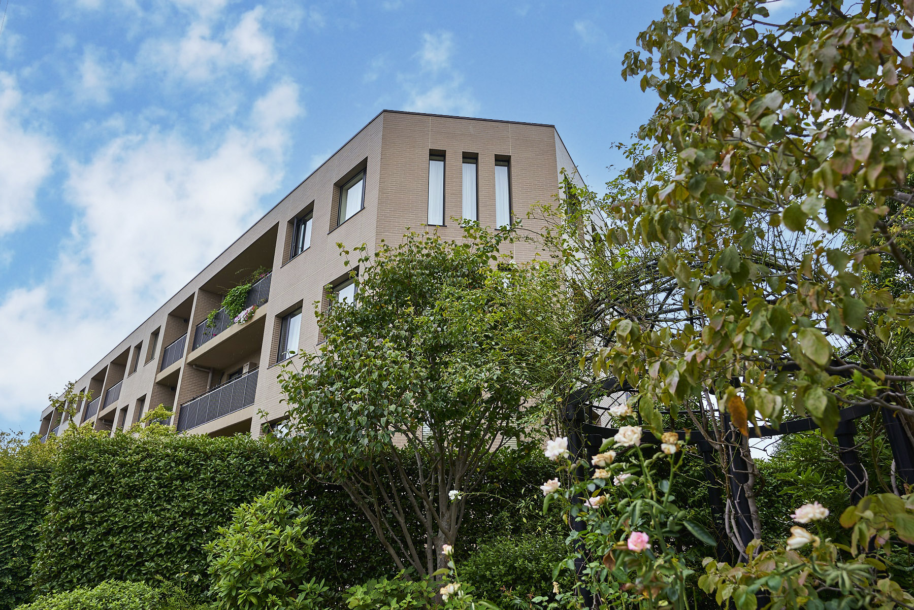 バラの冠をつくりだすガゼボ(パビリオン)をレイアウトしたローズ・ガーデンや、ストリートに面してローズフェンスを設えたロマンティックガーデンなど、街並み自体を華やかに彩る庭園を演出。アースカラーの上質な外観と調和し、道行く人の心を和ませる景観を創り出しています。