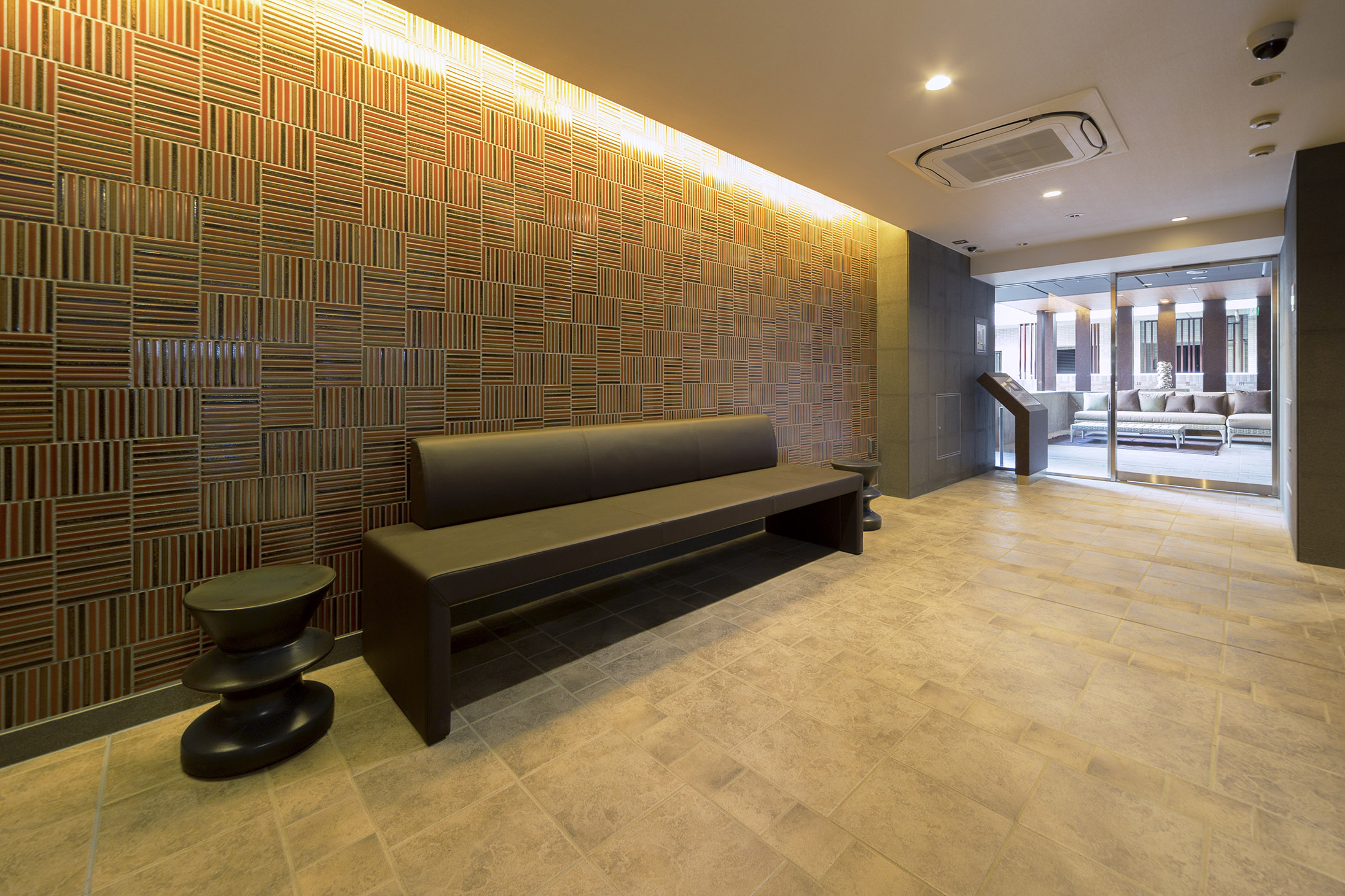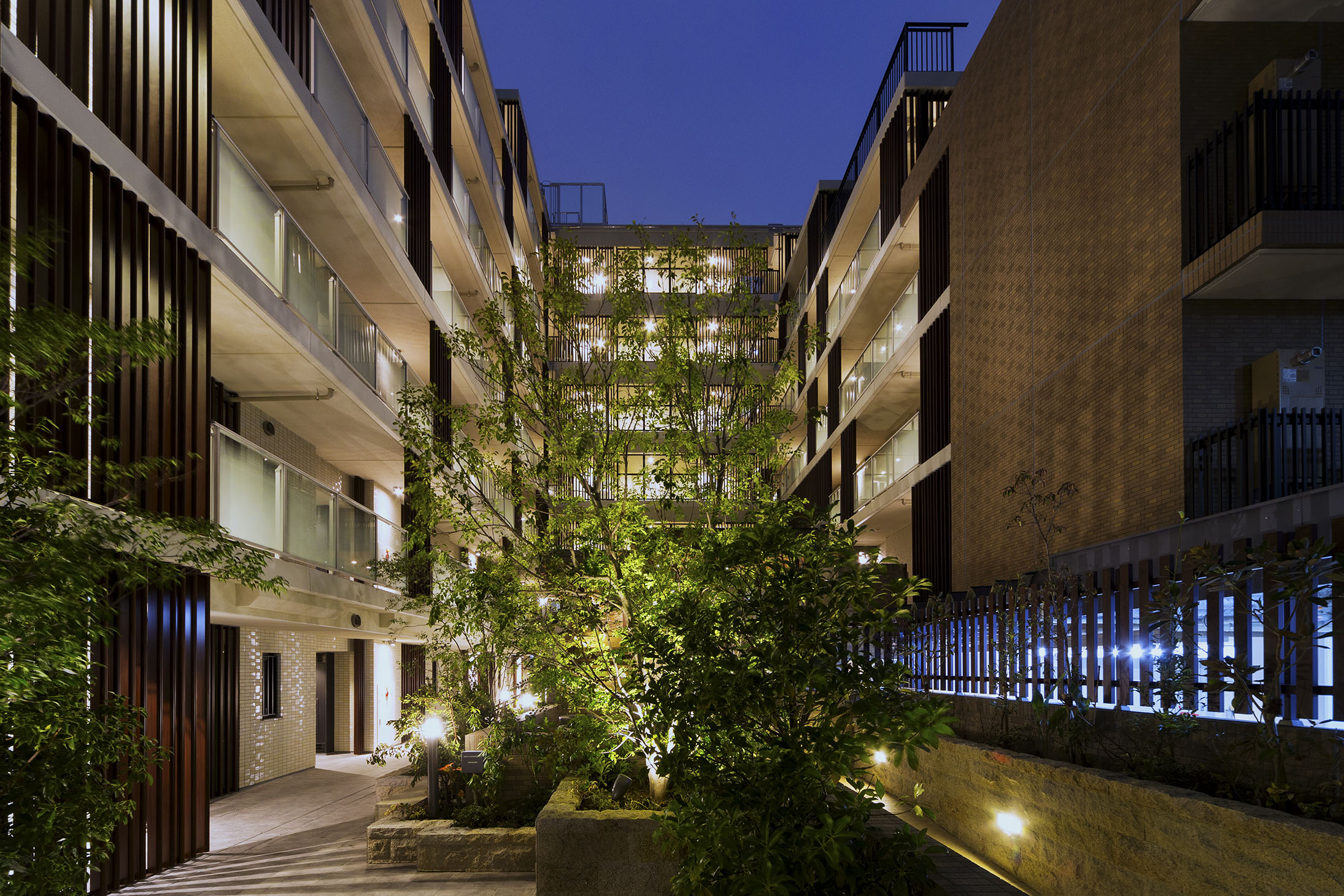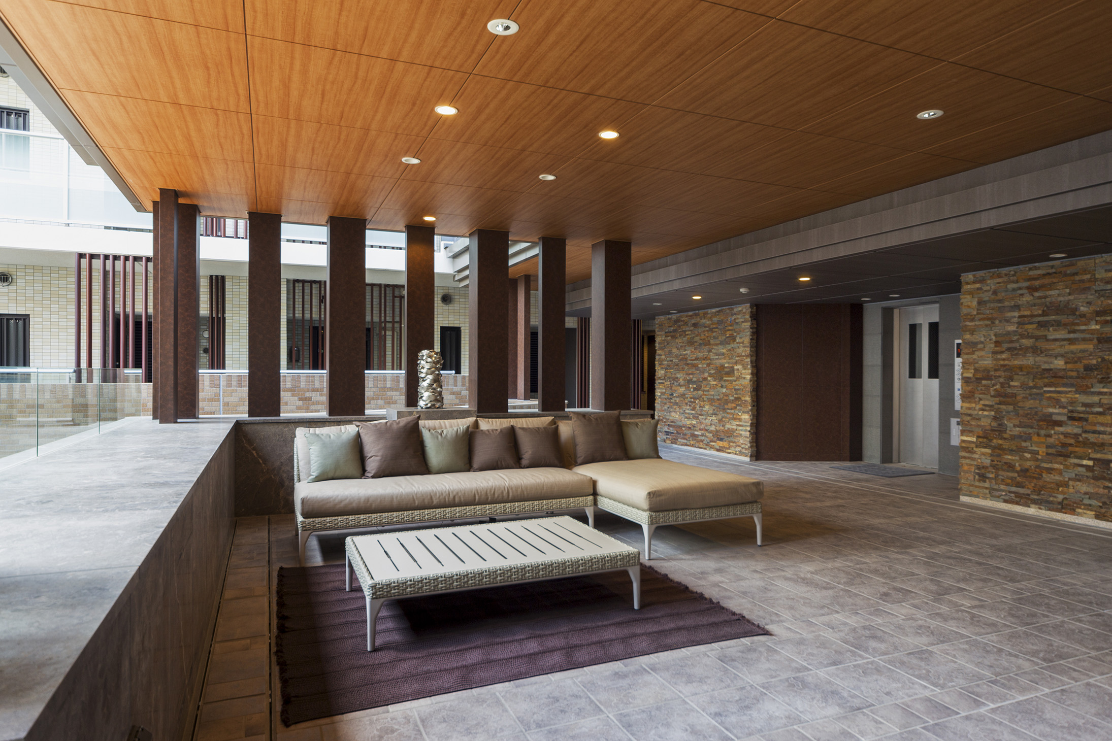 エントランスから一歩入れば、あたたかな木質感やタイルの風合いに包まれる落ち着いたウェルカムラウンジ。その先にある半屋外のガーデンラウンジでは、屋外からの風がそよぎ陽光が舞う中で、ゆったりとしたソファからプライベートな空が広がり、季節の花々で彩られたステップガーデンが視界を包み込みます。ここにある自然の風景は、住む人だけが享受できる美しい世界。リゾートのくつろぎが味わえる空間です。
