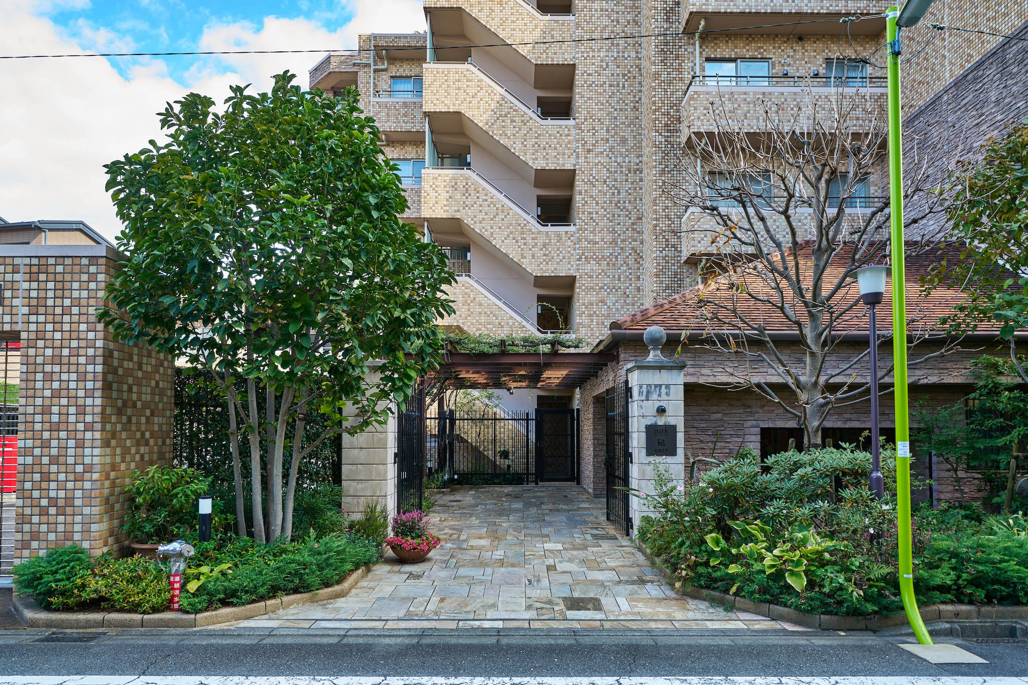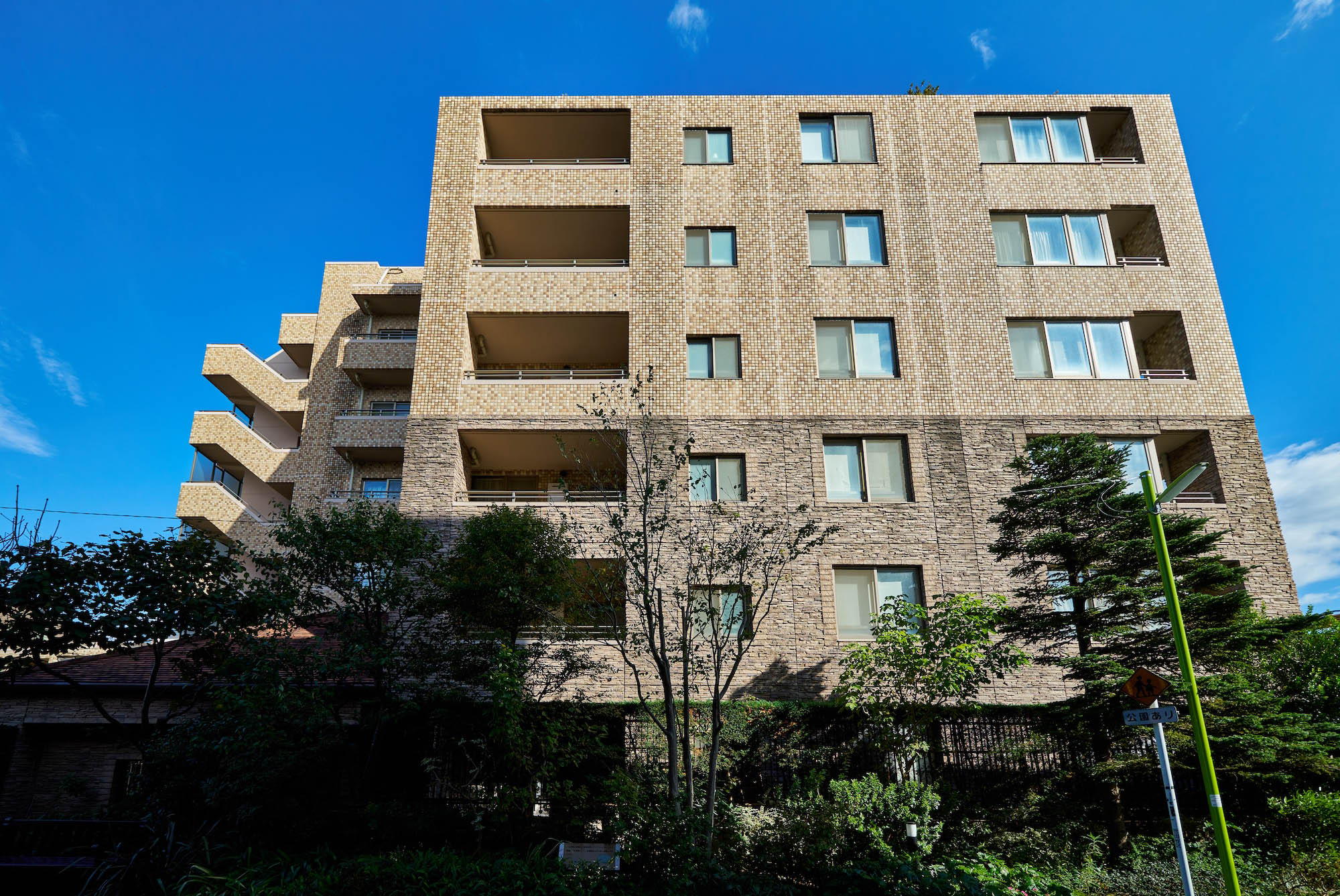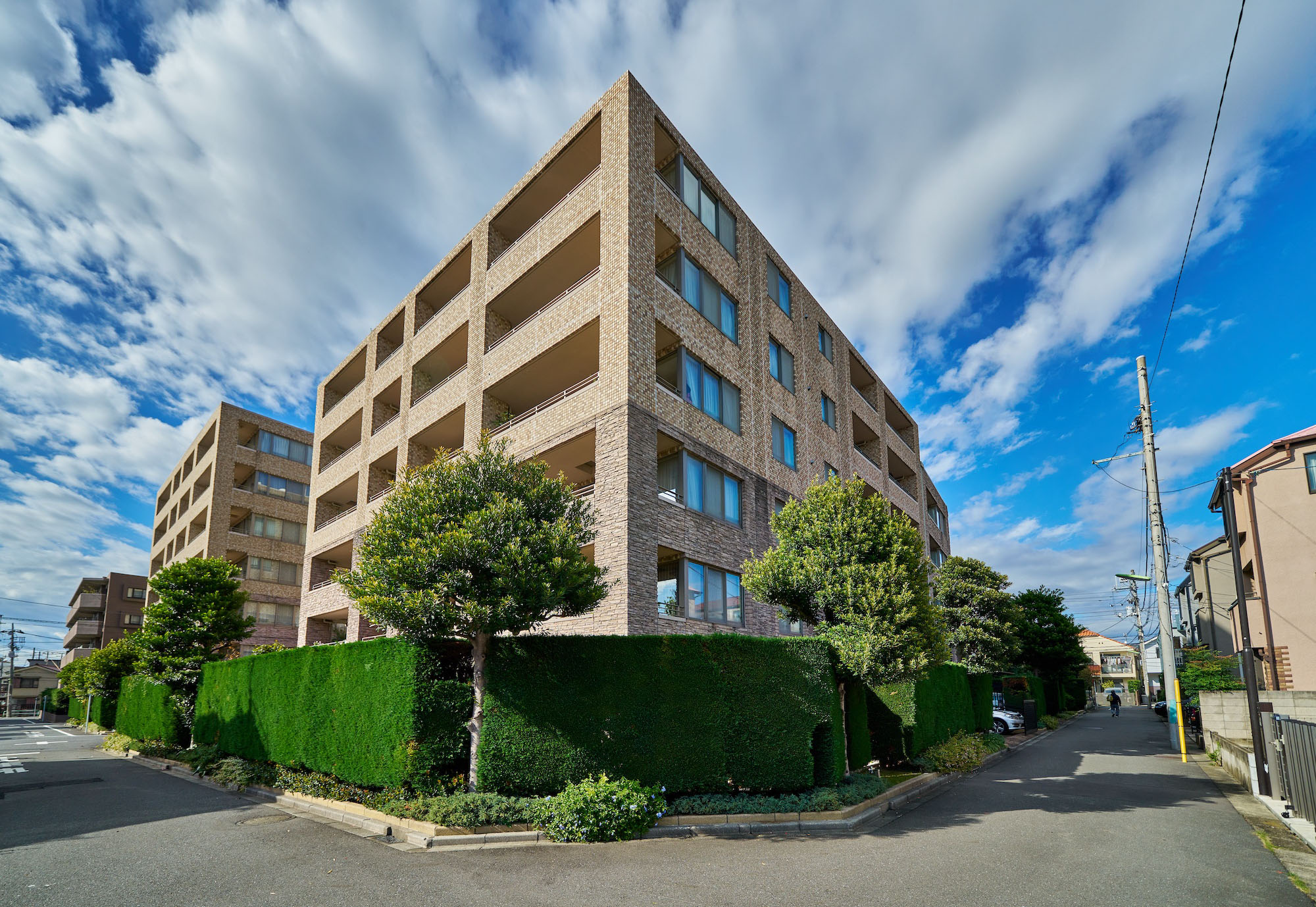 道路を挟んで、イースト棟とウエスト棟の2棟が寄り添うように配置されている「パークコート砧」。ブリティッシュ・トラッドをモチーフにした上質な邸宅は、美しいパブリックな庭を特徴とし、一戸建てとマンションならではの住み心地を併せ持っています。両棟が面する道路側にはそれぞれ、パーゴラのあるエントランスガーデンと、互屋根のエントランスポーチが設けられています。プライバシーを守りながら、外とつながったイメージをつくりだす剣先フェンスを隠すような生け垣は緑の道となり、設置されたベンチはこの道路のアクセントに。溢れる植栽が四季を通じて、街並みに柔らかな雰囲気を漂わせています。豊かな自然環境の中の邸宅地と調和しながら、確かな存在感を感じさせる、知的な佇まいです。