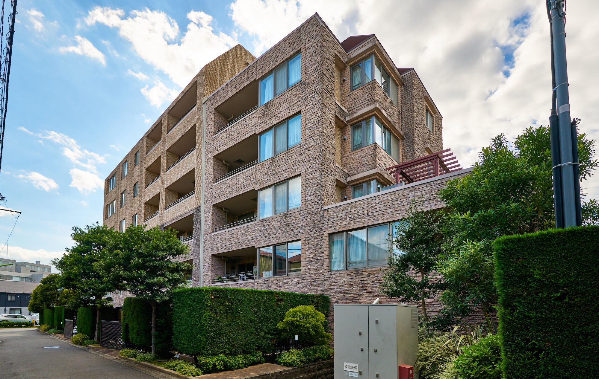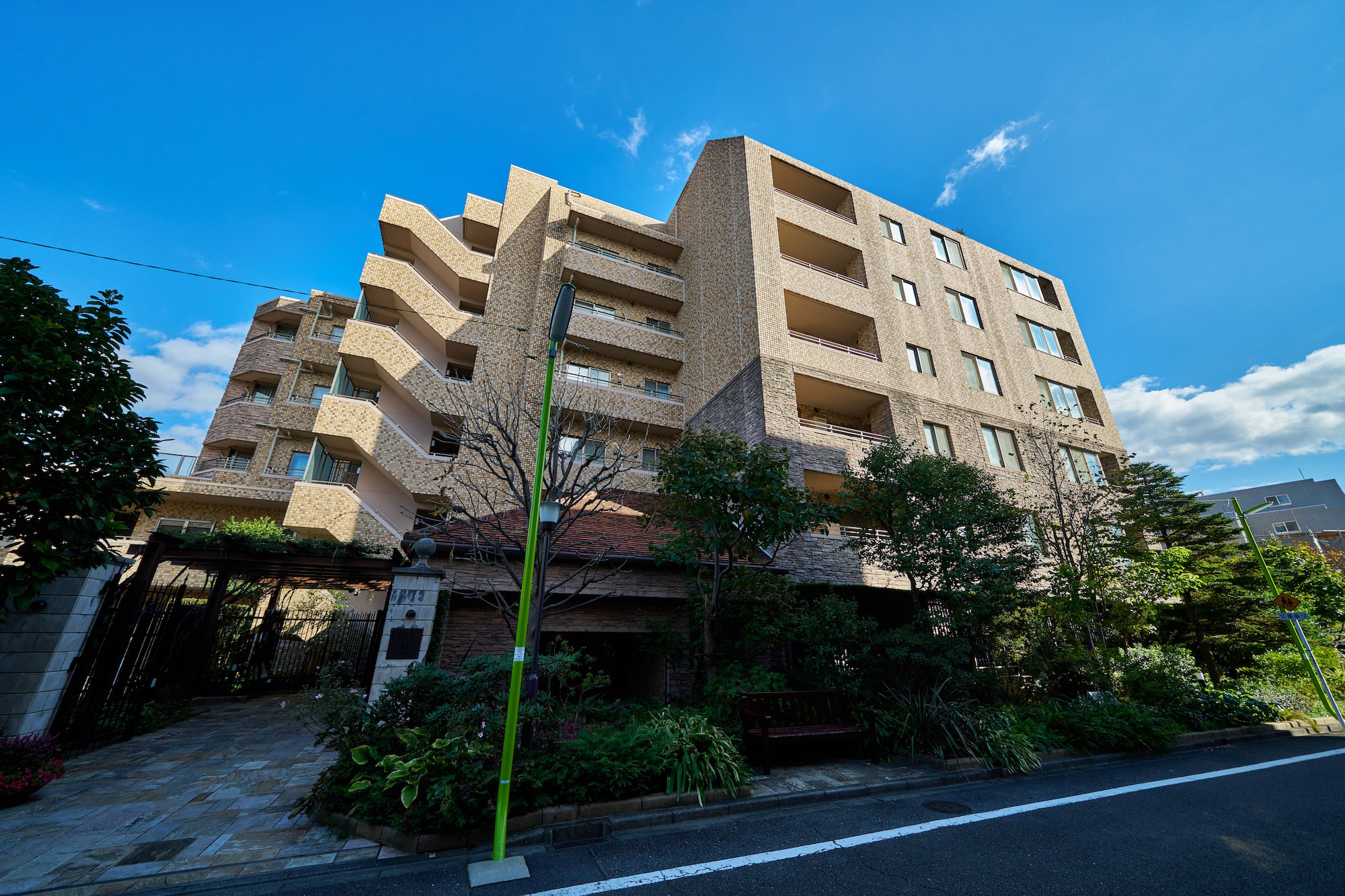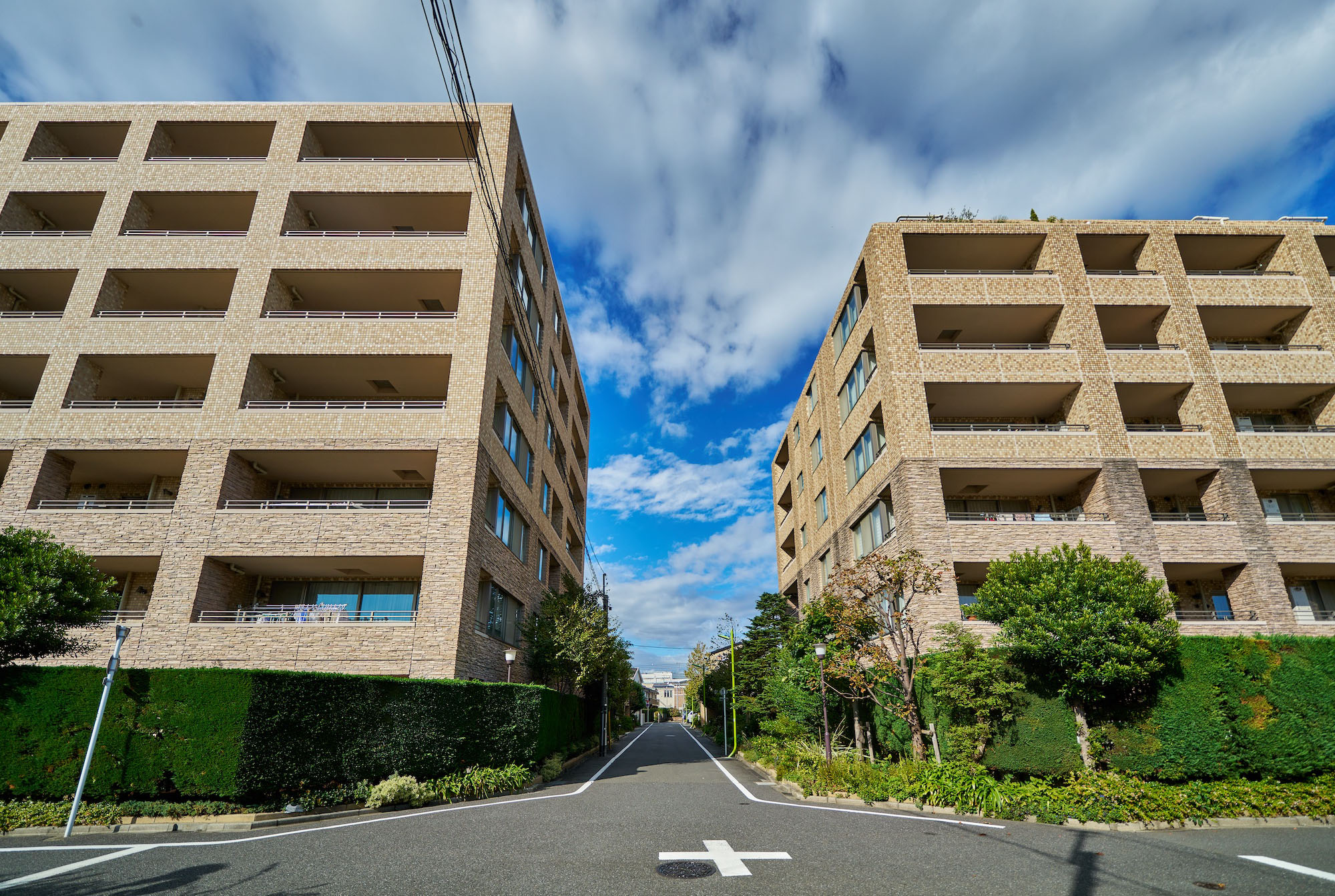 道路を挟んで、イースト棟とウエスト棟の2棟が寄り添うように配置されている「パークコート砧」。ブリティッシュ・トラッドをモチーフにした上質な邸宅は、美しいパブリックな庭を特徴とし、一戸建てとマンションならではの住み心地を併せ持っています。両棟が面する道路側にはそれぞれ、パーゴラのあるエントランスガーデンと、互屋根のエントランスポーチが設けられています。プライバシーを守りながら、外とつながったイメージをつくりだす剣先フェンスを隠すような生け垣は緑の道となり、設置されたベンチはこの道路のアクセントに。溢れる植栽が四季を通じて、街並みに柔らかな雰囲気を漂わせています。豊かな自然環境の中の邸宅地と調和しながら、確かな存在感を感じさせる、知的な佇まいです。