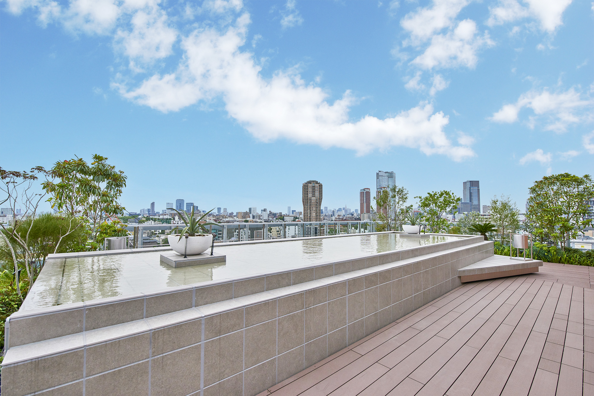 都心に暮らす歓び、開放感豊かな南麻布に住む歓びを存分に感じていただくためのルーフトップ空間「スカイヴィラ」。「六本木ヒルズ」や「東京ミッドタウン」などのランドマークと都心の空が織りなす美しい眺望を愉しむとともに、空を映す水盤やリゾートのような雰囲気を醸し出す多彩な樹々に心を潤す、天空庭園のようなラウンジです。都心の中で忘れがちな樹々のやすらぎや、風の心地よさ、水盤に流れる水の音などを感じながら、ゆっくりと寛ぎの時間・語らいの時間に浸ることができます。