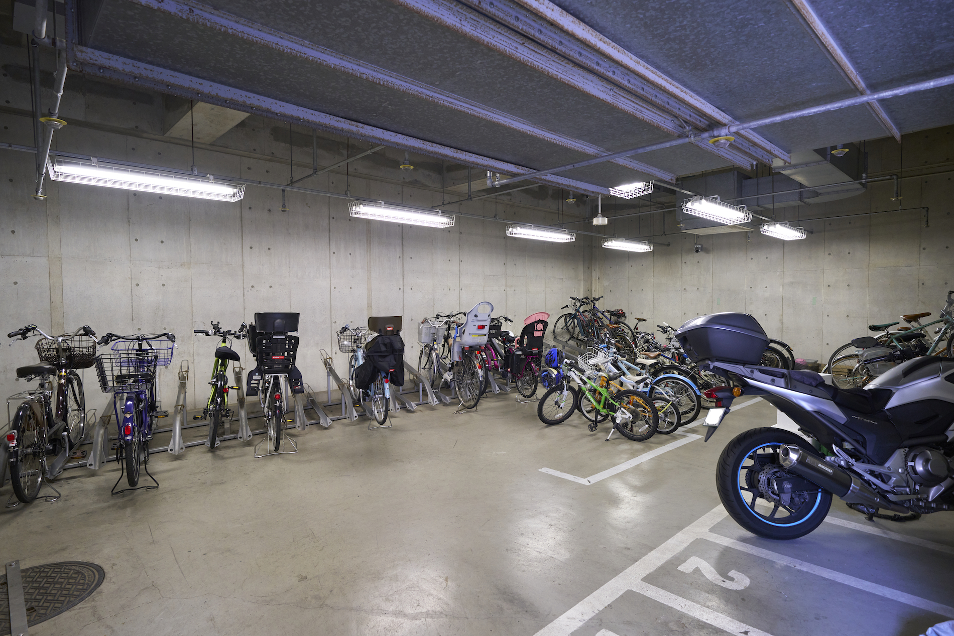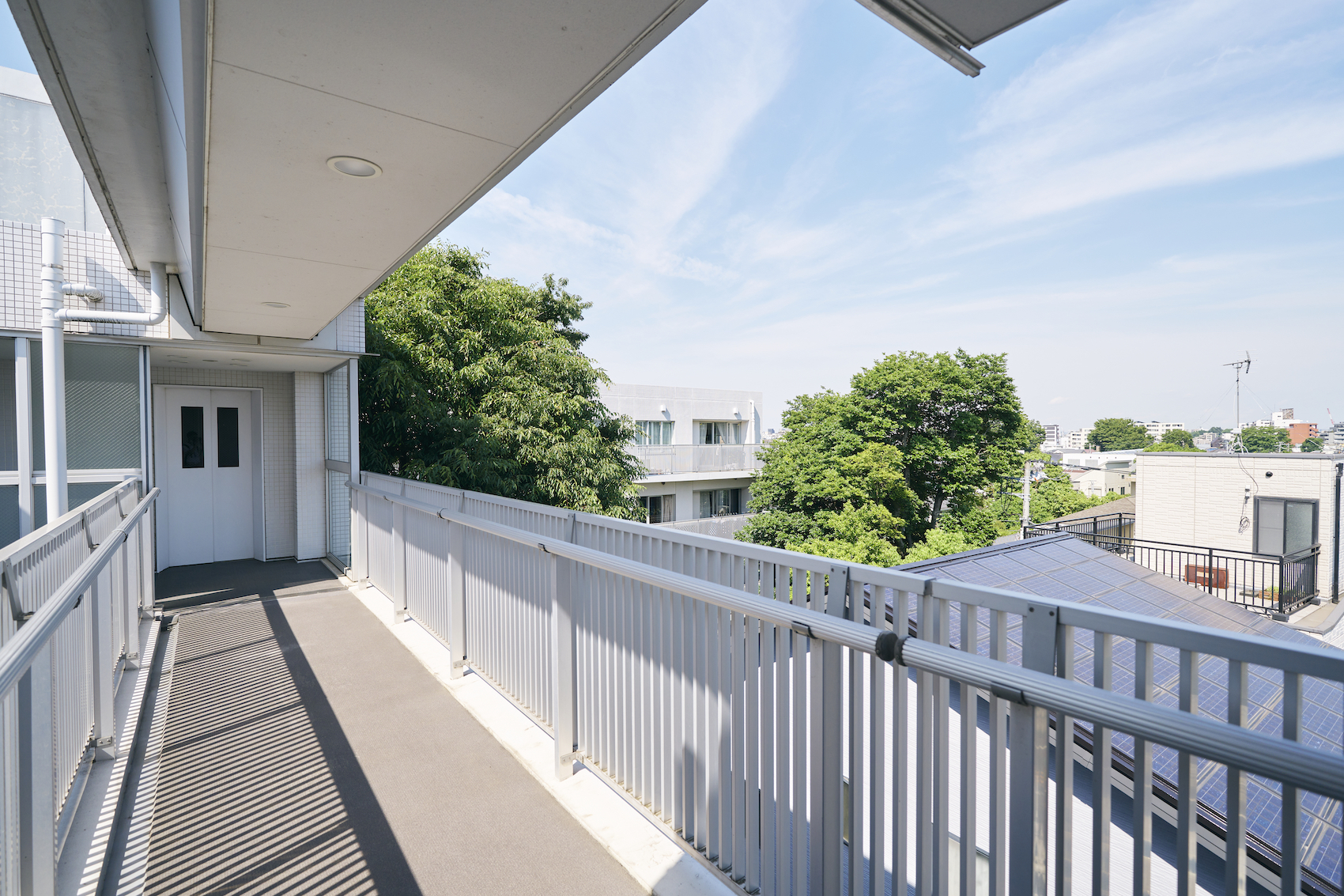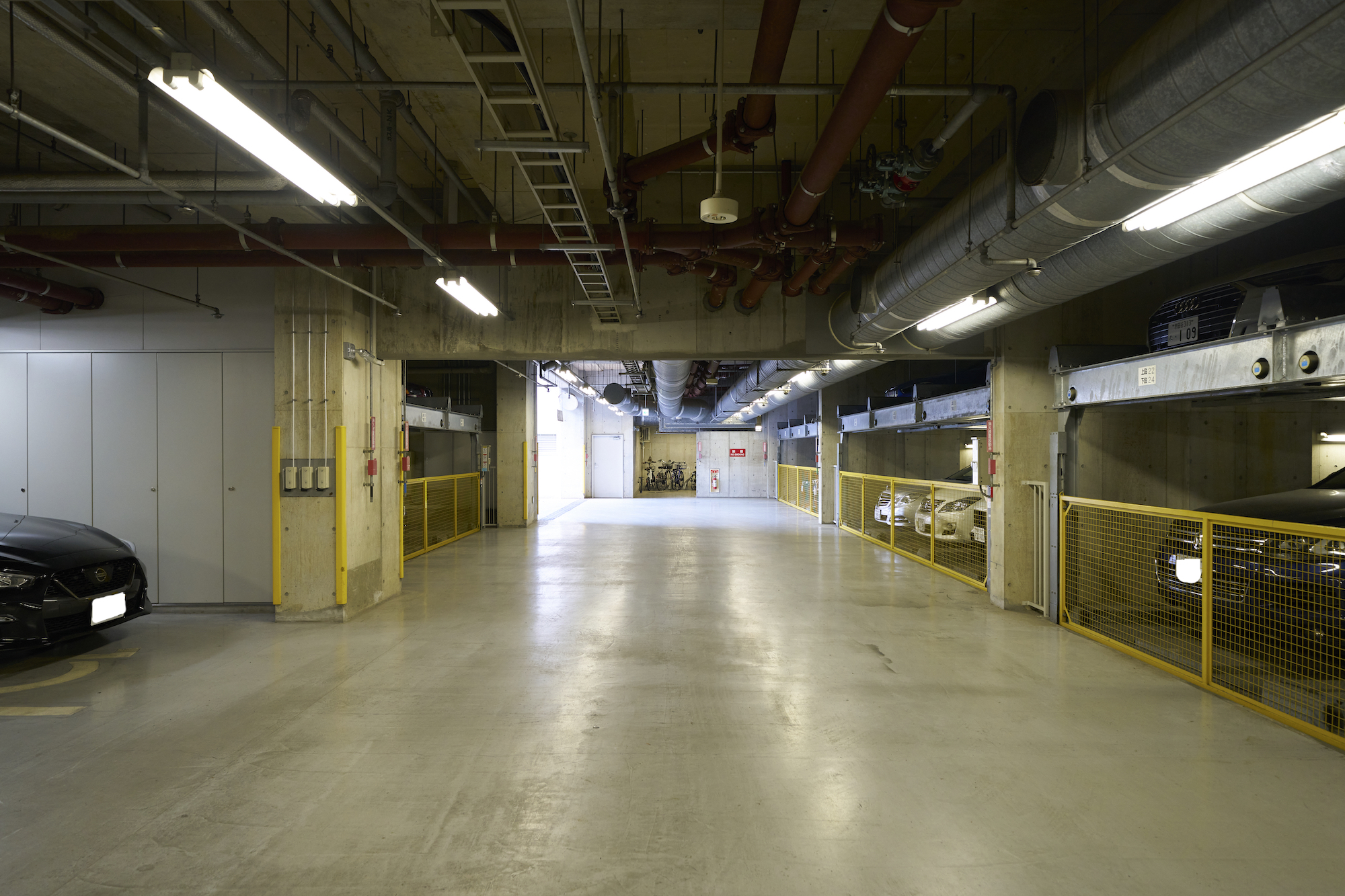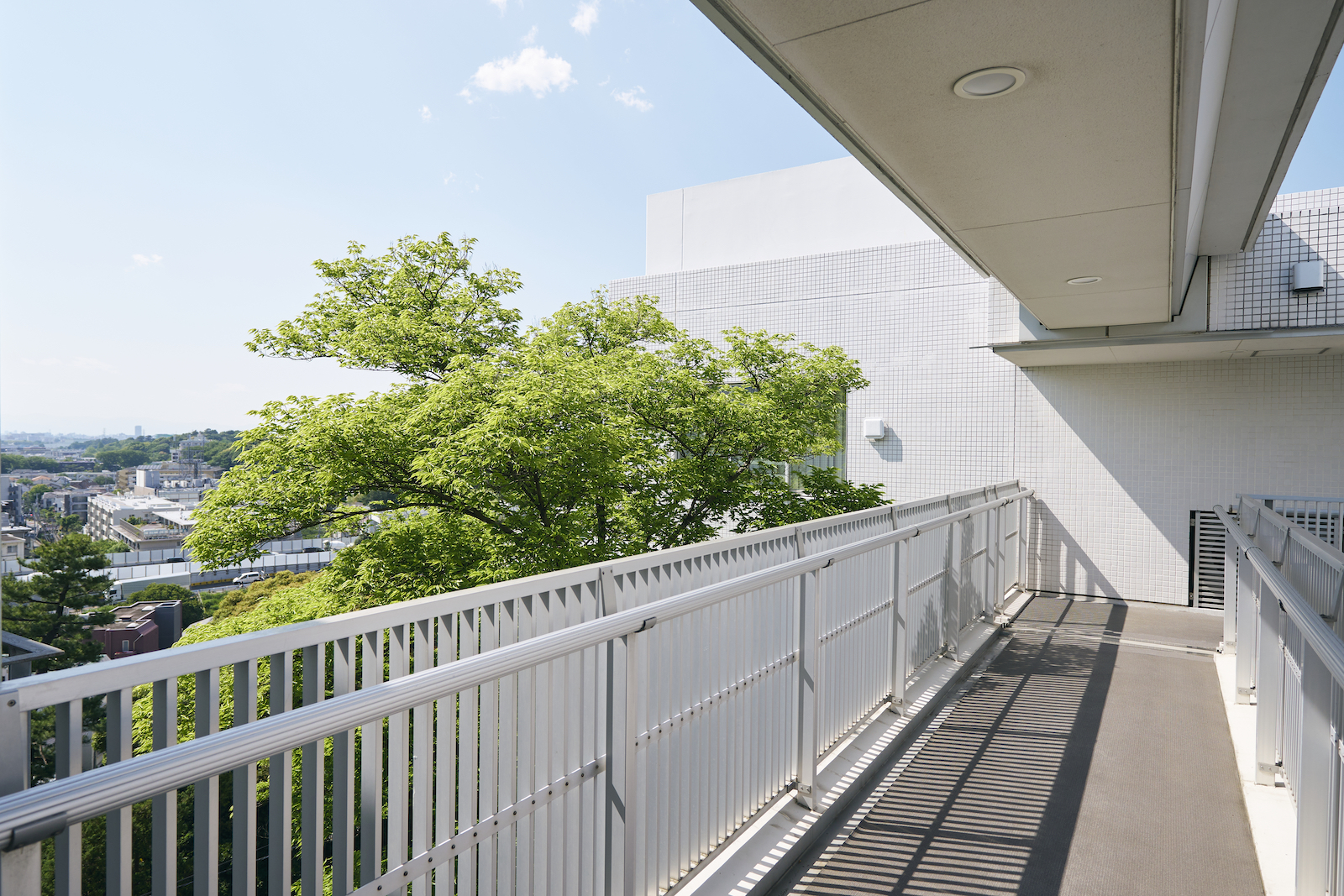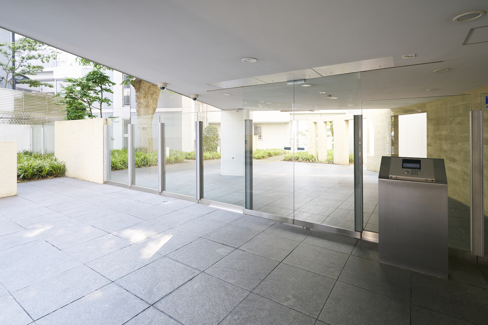 住街区と私邸の境界となるエントランス。「パーク・コート瀬田」のエントランスは、周辺の自然環境のなかに溶け込む“領域“であり、建物内に閉ざされたホール形式ではありません。視覚的・空間的に広がりを持たせるため、パブリックとプライベートの境界を示す壁面にガラススクリーンを採用。その大胆な発想は、セキュリティ機能を併せ持たせつつ、エントランス空間に開放性をもたらし、同時に敷地内の植栽を街並景観に参加させることを可能としています。住棟間に位置する中庭は、御影石製のインターロッキングを敷きつめ低木の植栽をあしらったプロムナードの趣き。日中は柔らかな自然光が降り注ぎ、陽が沈むとライトアップされた樹木が美しく照らされる、絵画的な情景を見せてくれます。その開放感あふれるパブリックゾーンからプライベートゾーンへ導くアプローチとして、中庭と遠景を見渡す空中廊下があります。エントランスと私邸を結ぶ役割だけでなく、視界の中に光や風や緑の息吹を感じながら歩く楽しみを大切にした共用空間です。