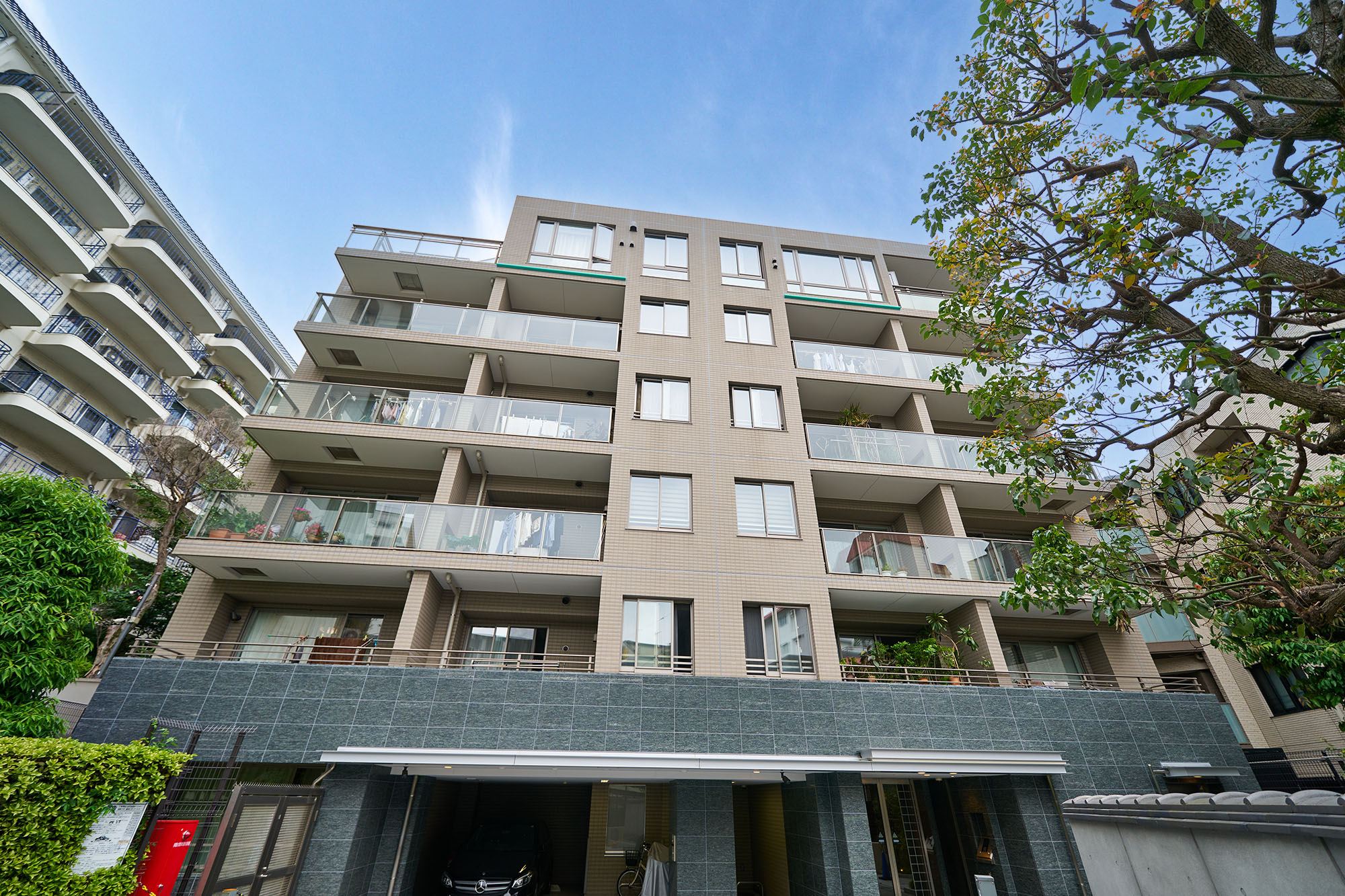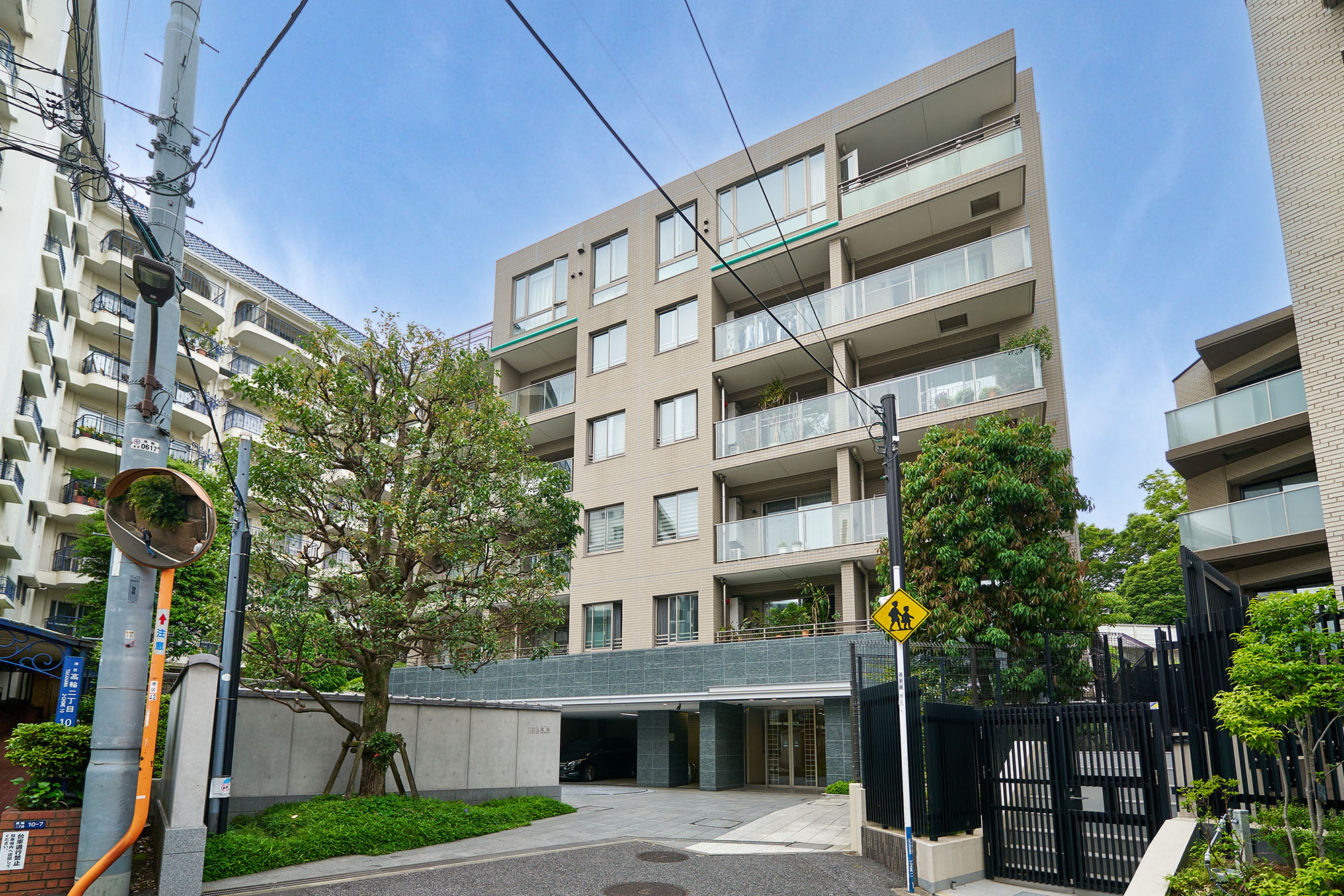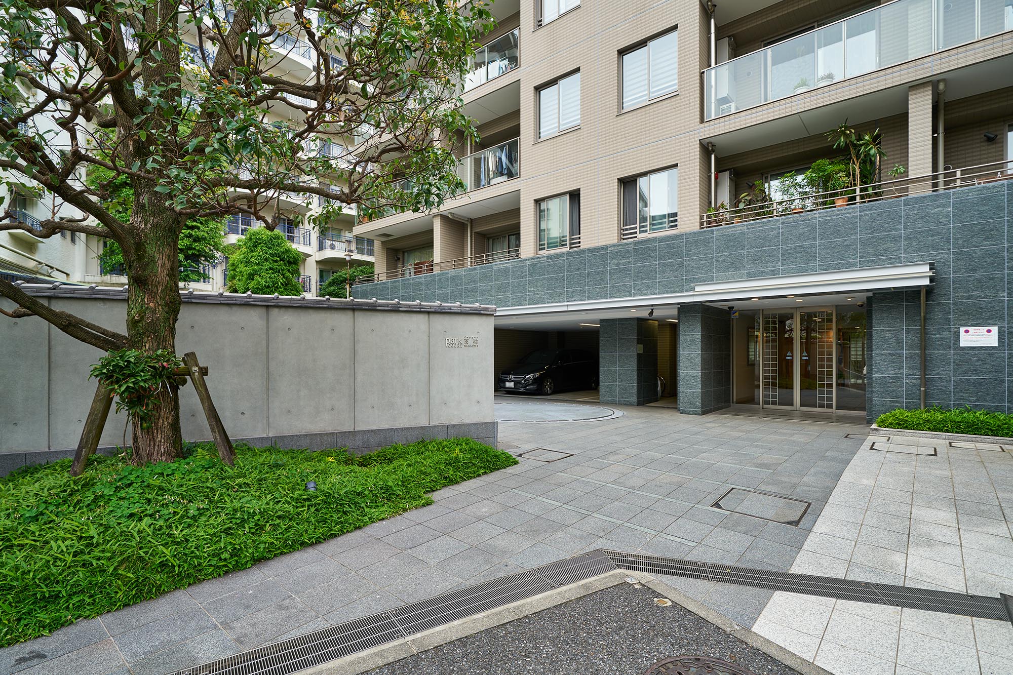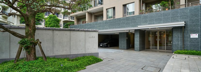 高輪の地に、静かに佇む「パークコート高輪フォレストレジデンス」。歩きながら近づいていくと、緑あふれる自然のなかへと入っていくような感覚を憶えます。静寂に包まれ、建物を囲む瓦塀がしっとりとした雰囲気を醸成。洗練と落ち着きを纏ったその姿は、風格を放ちながら豊かな緑に溶け込んでいます。奥ゆかしく、美しい佇まいは、ここでの暮らしの贅ある深まりを予感させます。