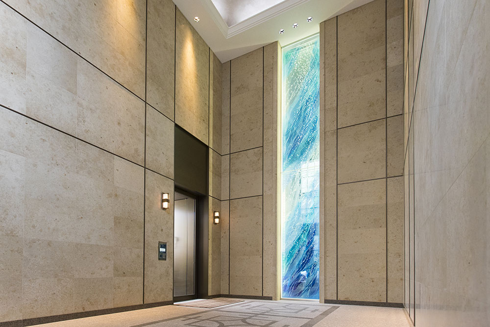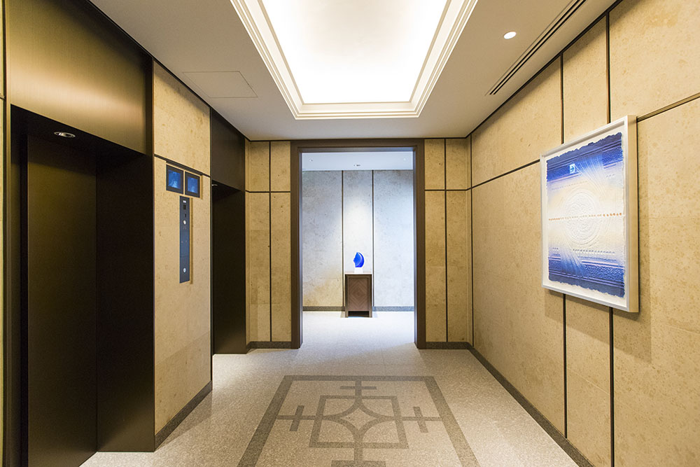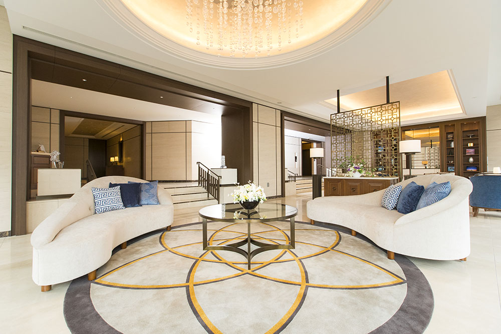 水が煌めく水盤を見ながら寛げるエントランスラウンジ。程よい華やかさとシックな雰囲気が魅力のパーティールーム。どこにいても、厳選された素材による本物を追求した空気感に包まれる。日々の空間に宿る上質が、この邸宅にはある。