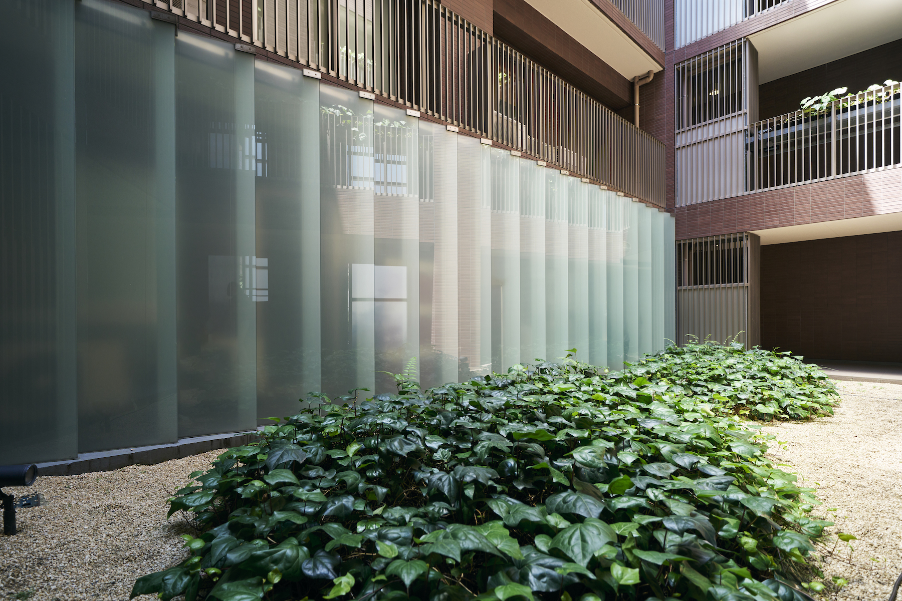 建築家・隈研吾氏とのコラボレーションによってうまれた「パーク・コート四谷」。最大限の努力をしたシンプルなテイスト、最大限の効果を生み出す最小限の装飾という「シンプル&ミニマム」の考え方をコンセプトに創り上げられました。レンガ色のタイルを用い、歴史を重ねる街並みにふさわしい風格ある重厚感を演出。ルーバーによって水平ラインを強調しつつ、表情豊かなファサードを形成。共用部には半透明のフロストガラスやライティングウォールが施され、心理的な落ち着きや空間の奥行を感じさせるデザインとなっています。