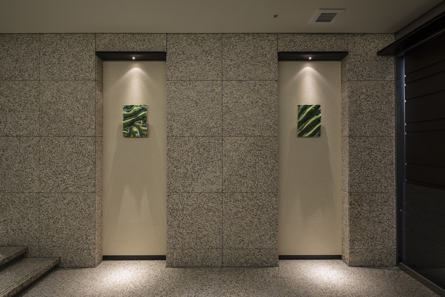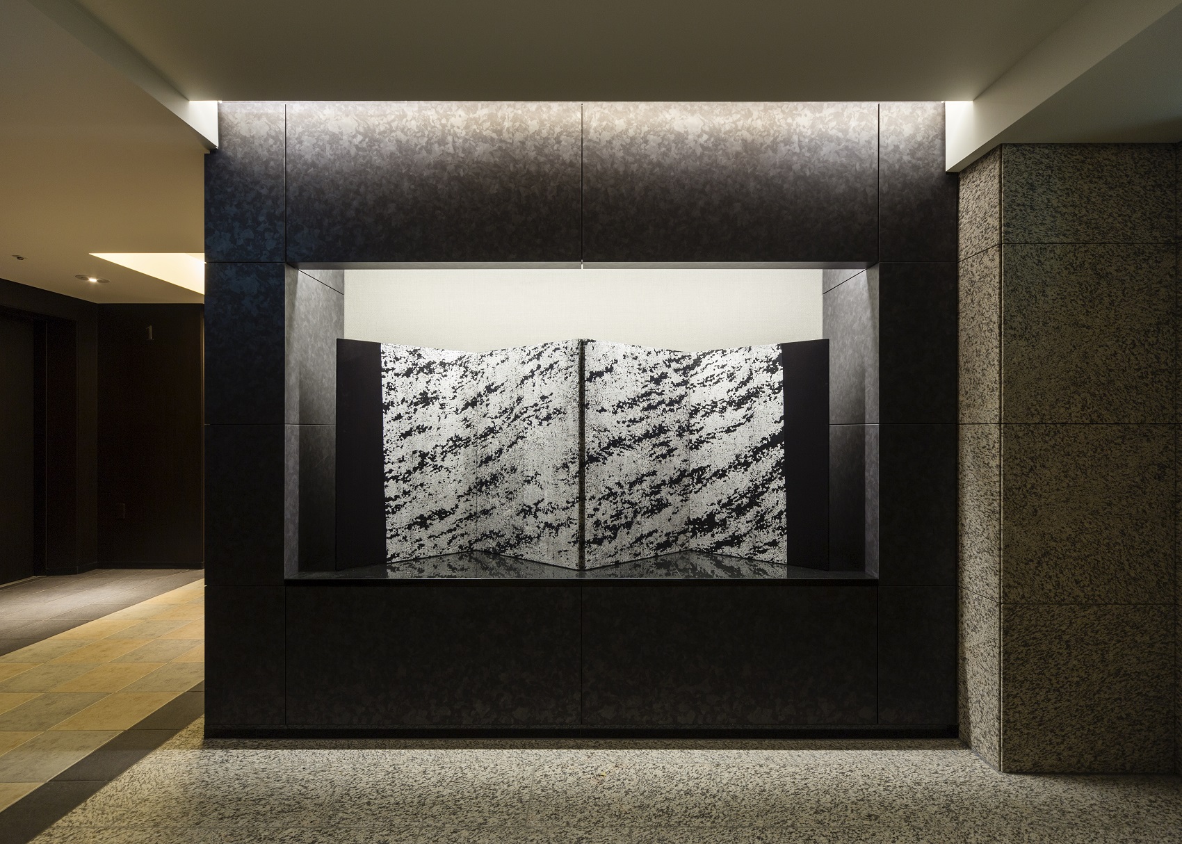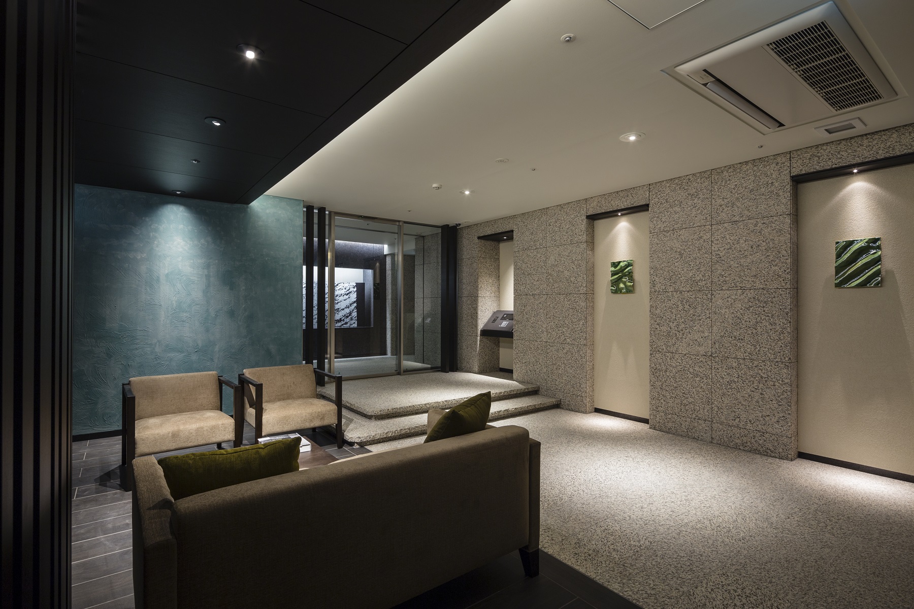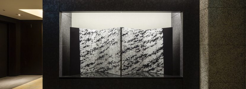 ゲートをくぐった先には、庭園をモチーフにした洗練されたエントランスホールが広がります。木や風、木もれ日、石畳を思い起こさせるしつらえが、現代的な風趣を演出。また、自然を象った数々のアート作品が飾られ、空間に深いやすらぎをもたらしています。